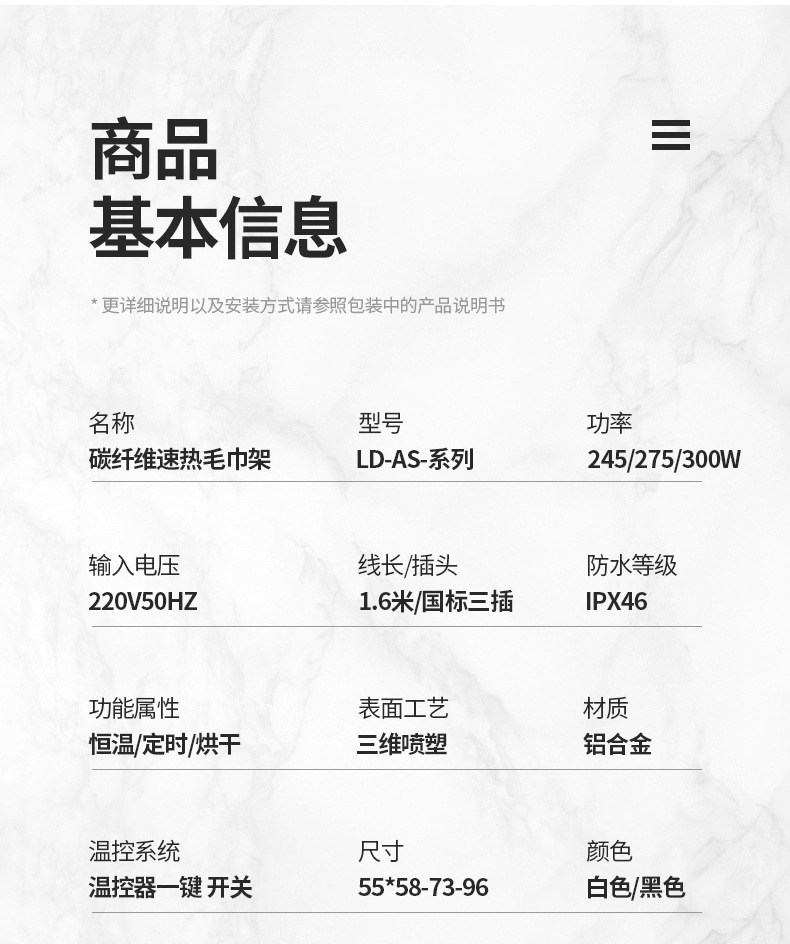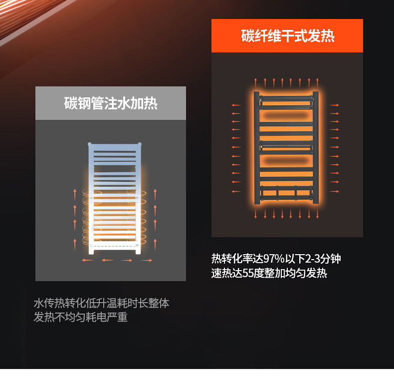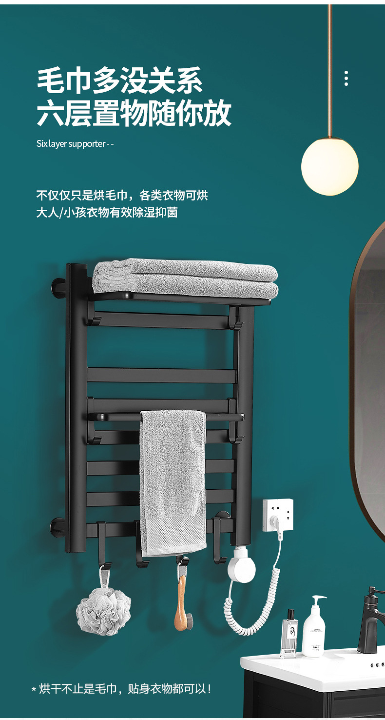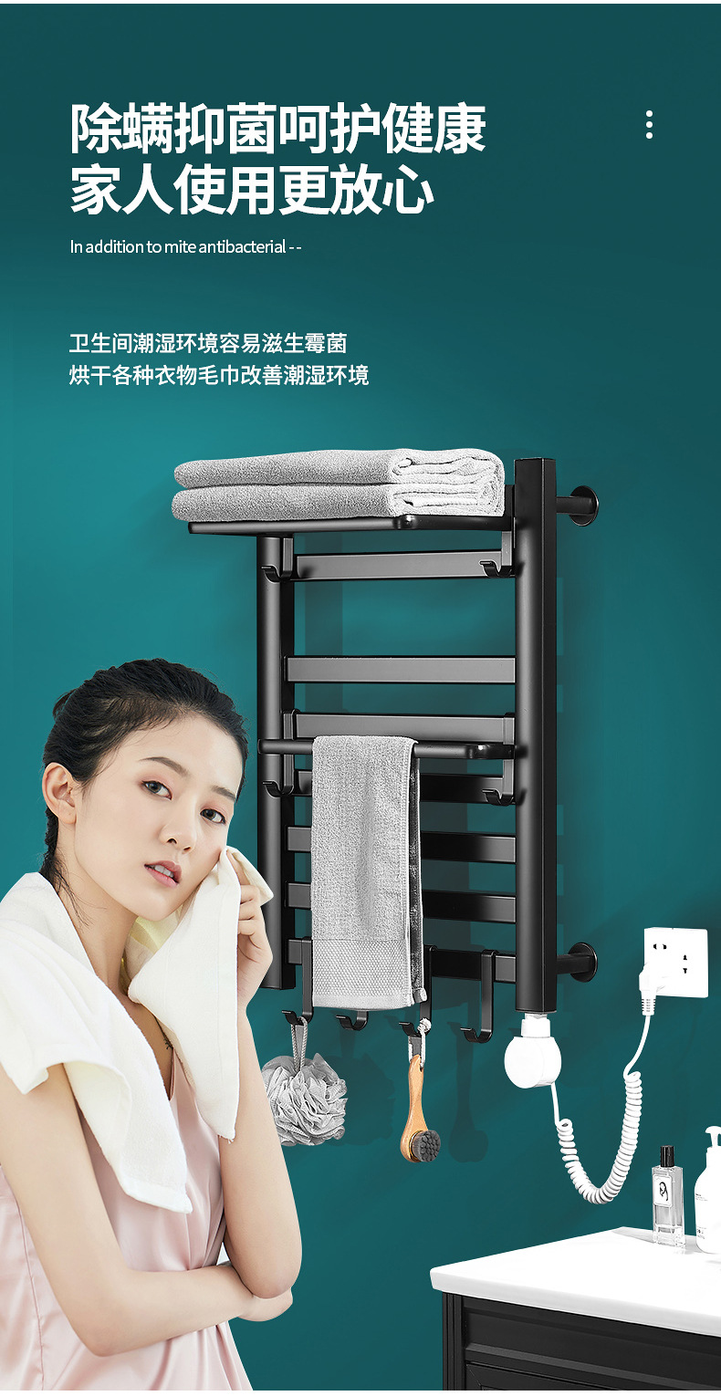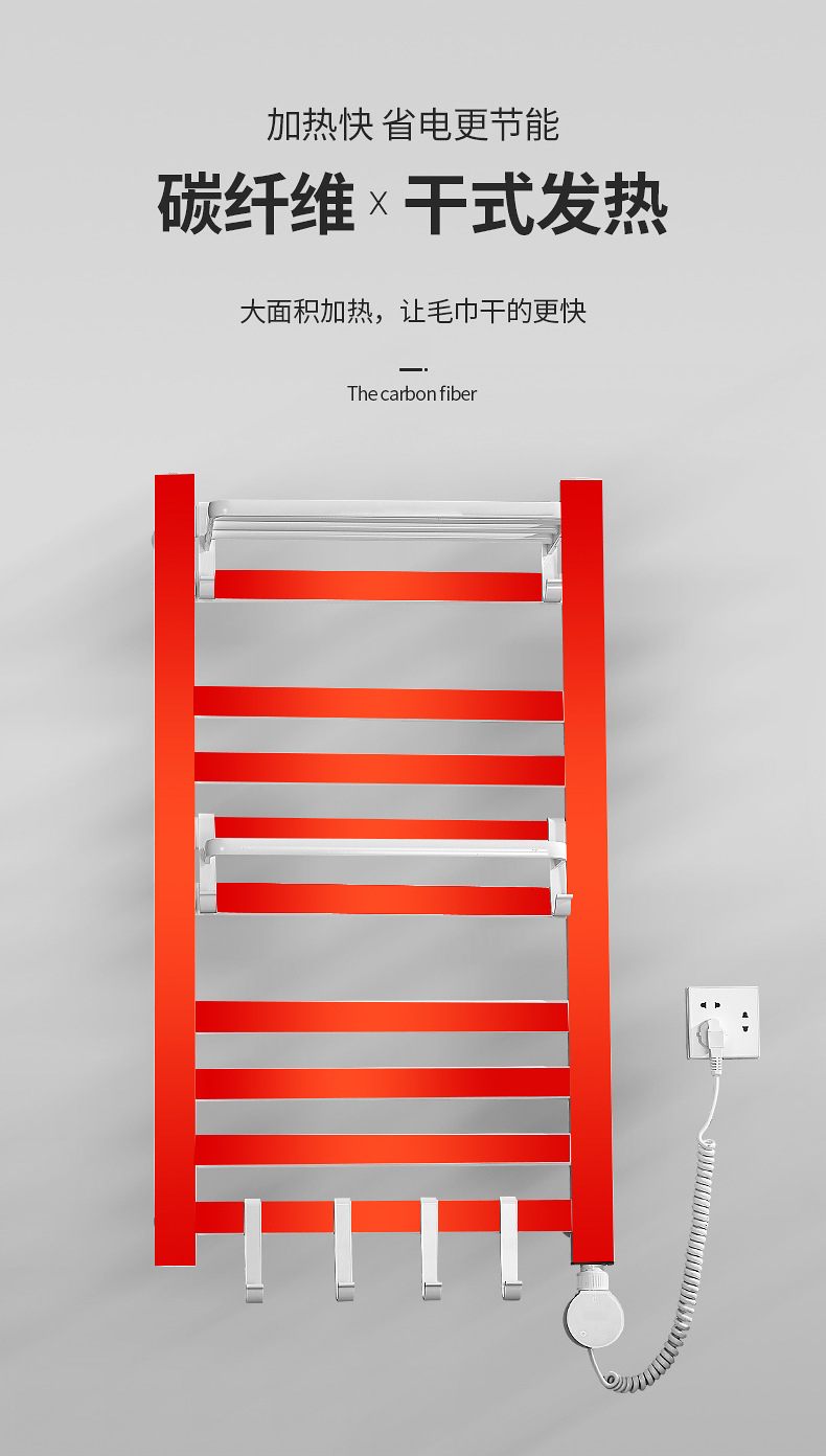 智能电热毛巾架卫生间浴室碳纤维速热浴巾架电加热恒温毛巾烘干架