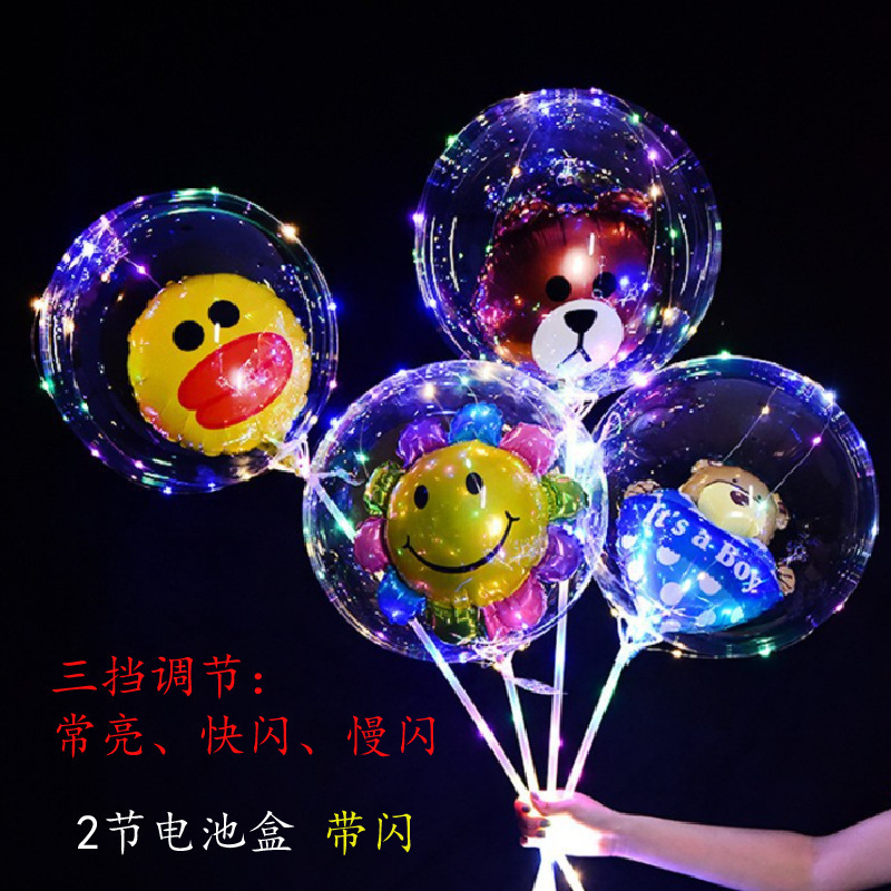 보보 풍선 도매 공급 20inch 반짝이는 조명 만화 캐릭터 야시장 판매 투명 풍선스토어 가기