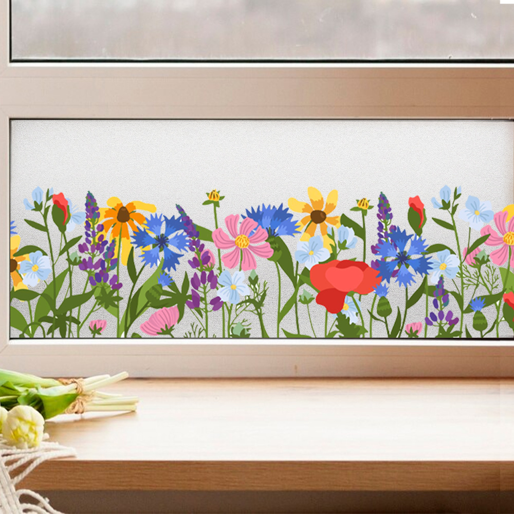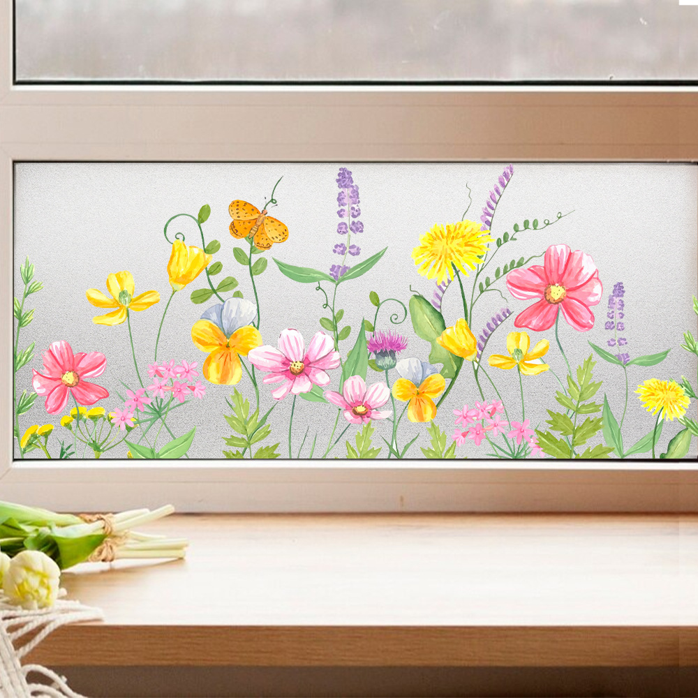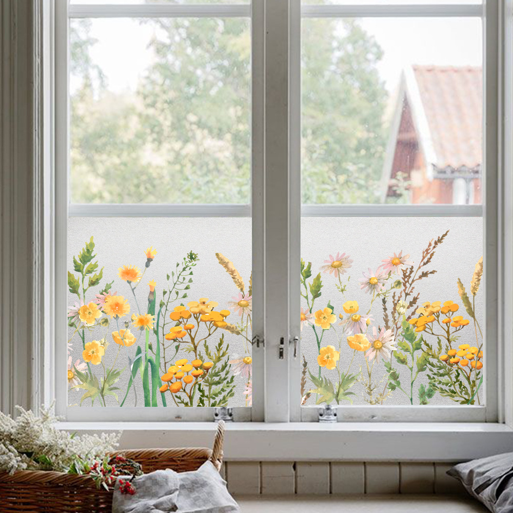 Yiyao DD4907 새로운 간단한 신선한 꽃밭 유리 스티커 방 거실 유리 창 장식 자체 접착 스티커