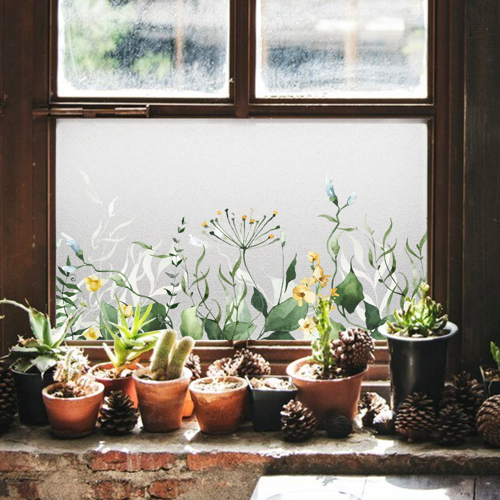 Yiyao DD4907 새로운 간단한 신선한 꽃밭 유리 스티커 방 거실 유리 창 장식 자체 접착 스티커스토어 가기