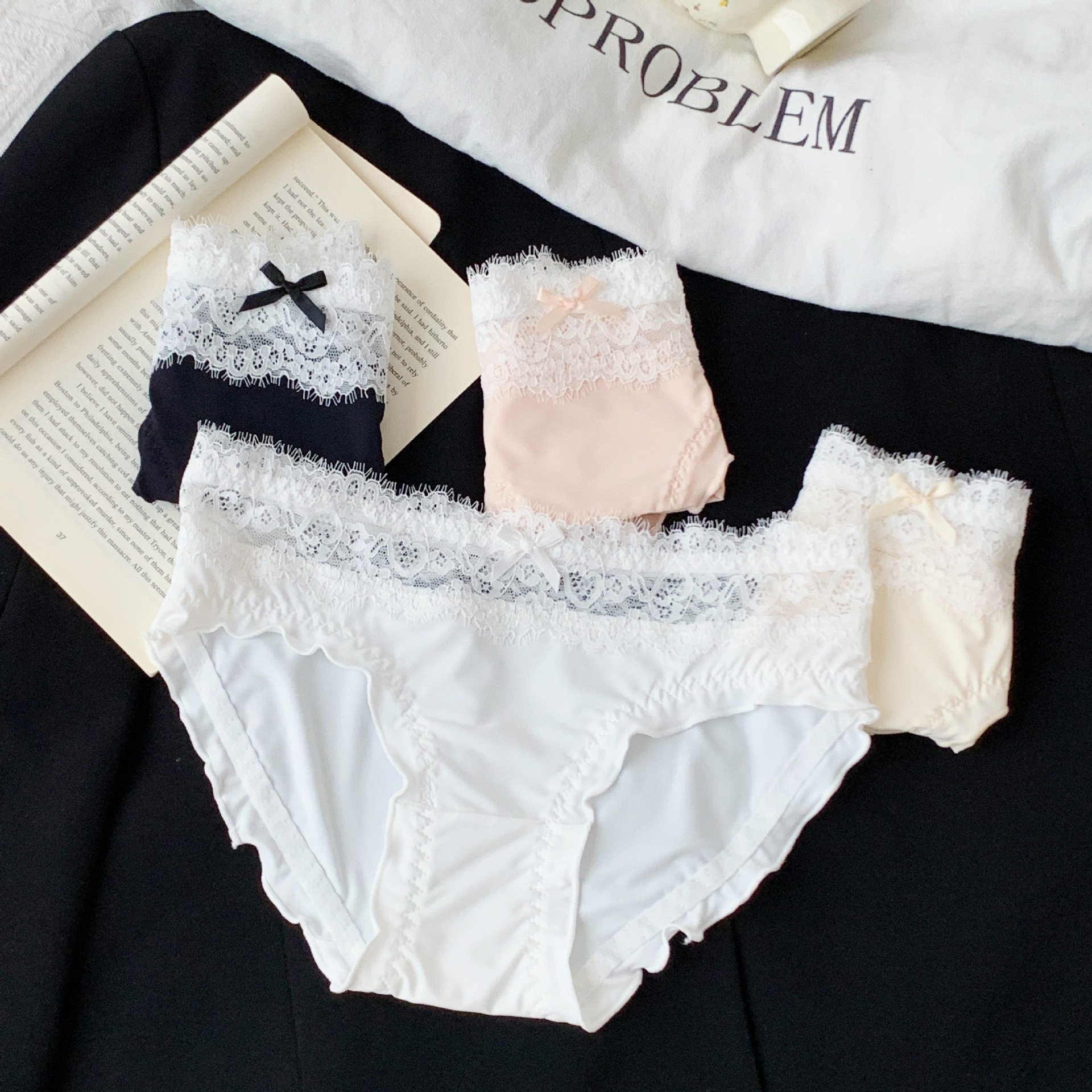레이스 속옷 소녀의 순수한 욕망 섹시한 여성의 새로운 일본 스타일 아이스 실크 트레이스 소녀의 중간 허리 삼각형 메쉬 반바지스토어 가기