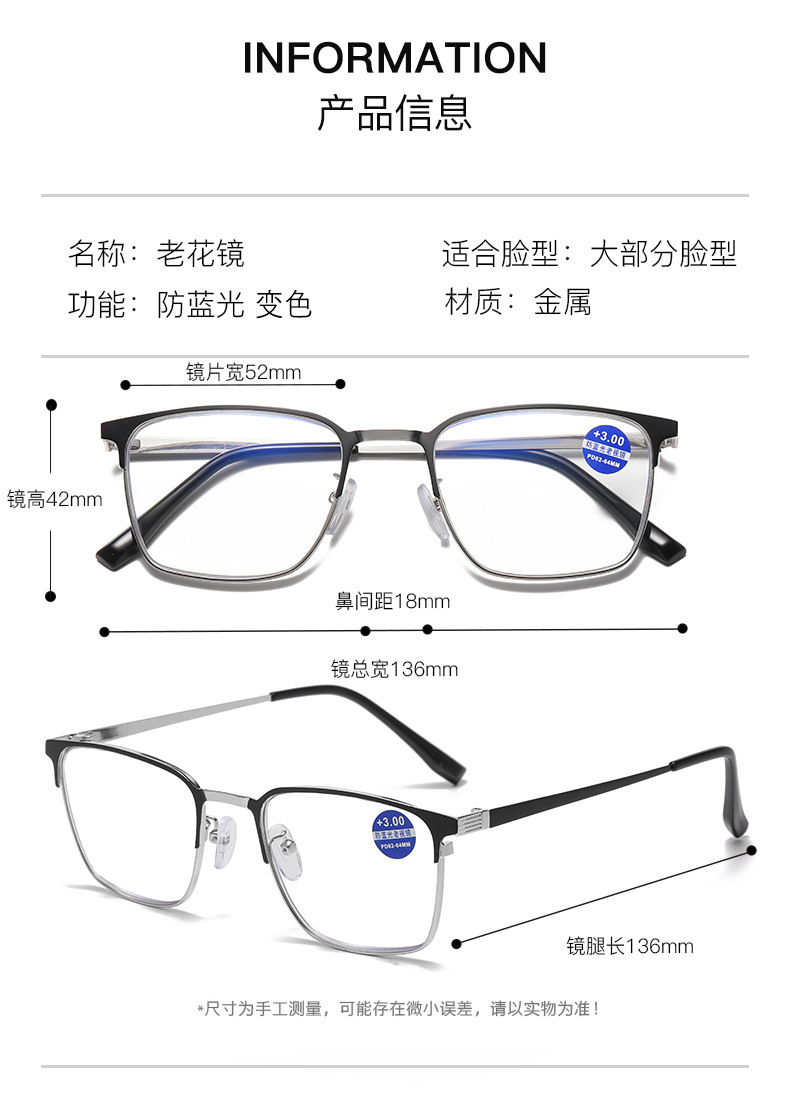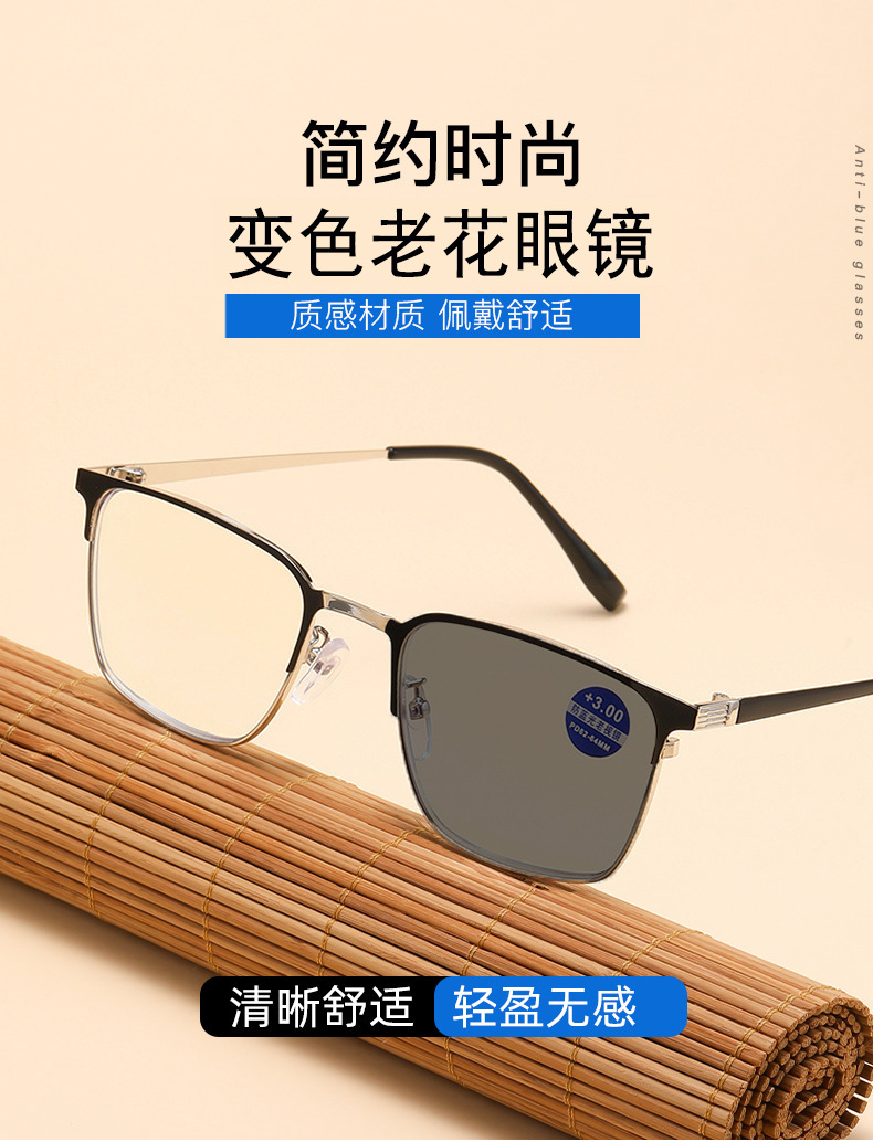 빛에 민감한 색상 변경 독서 안경 남성 자동 줌 프로그레시브 멀티 포커스 독서 안경 안티 블루 레이 독서 안경