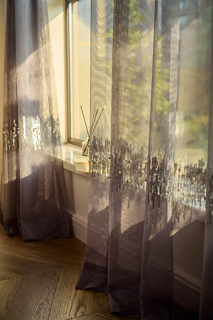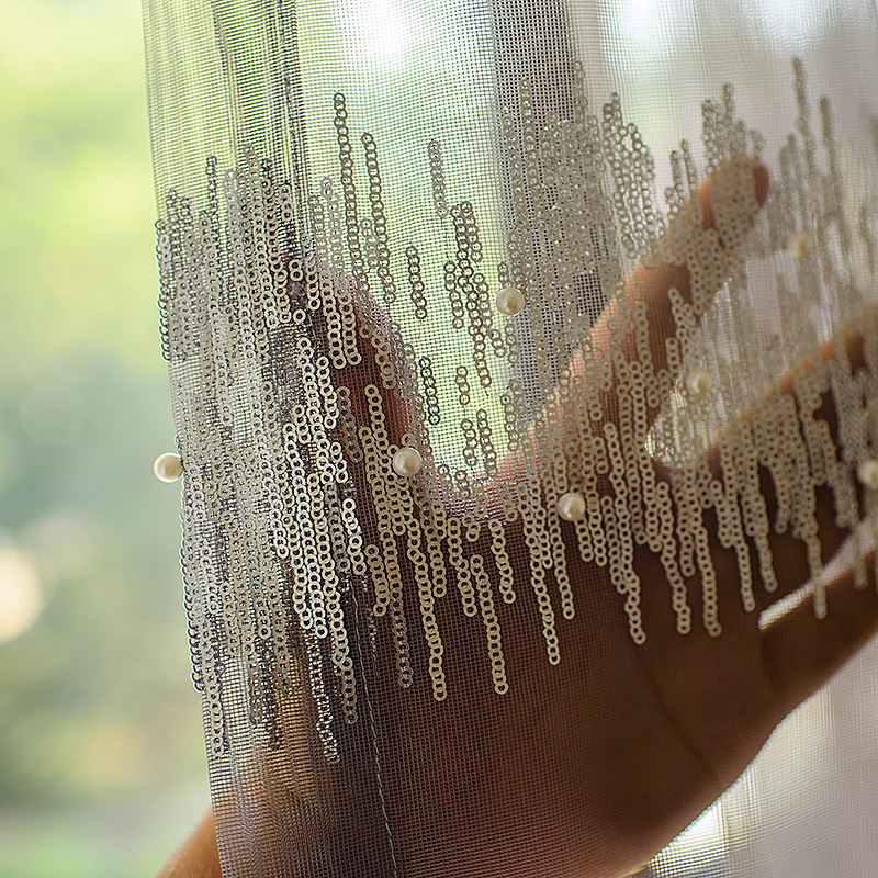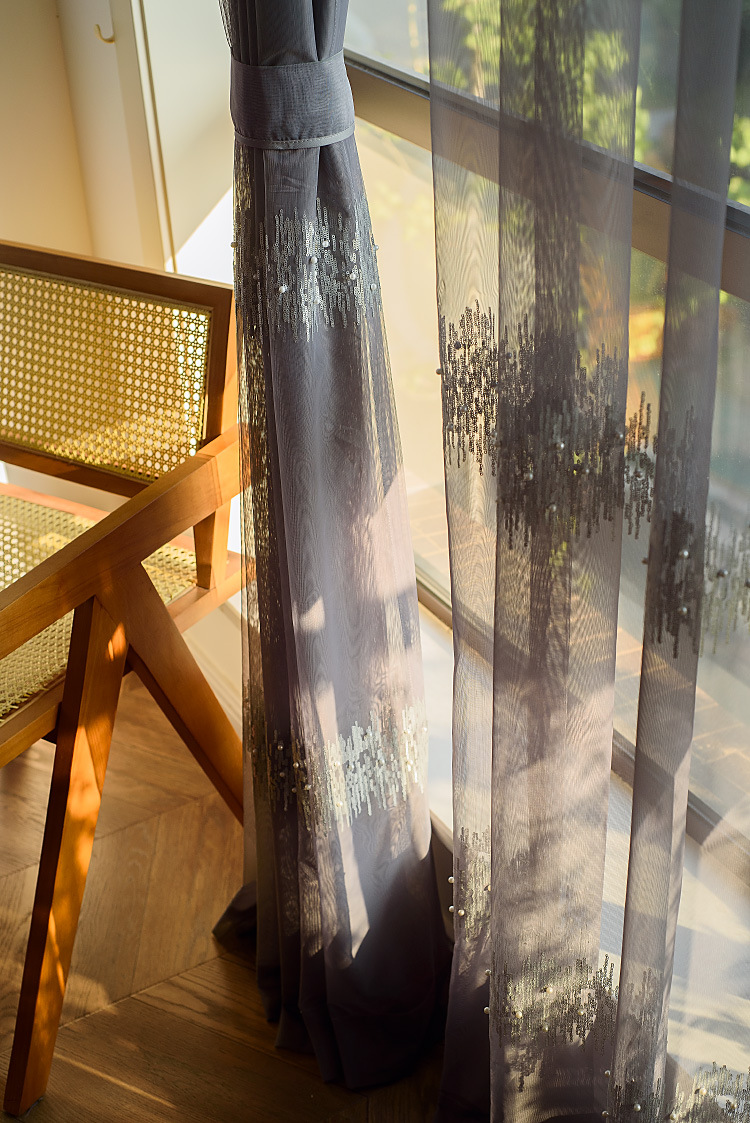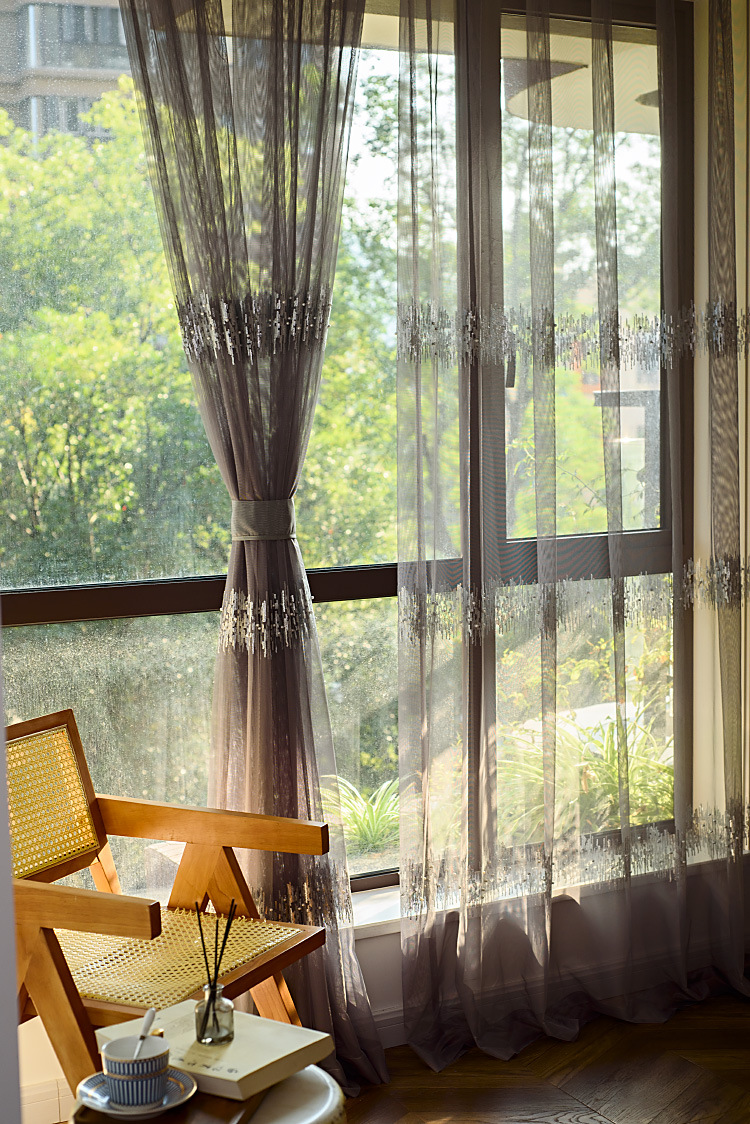현대 심플 라이트 럭셔리 아메리칸 스타일 그레이 펄 자수 음영 면 리넨 창 화면 거실 침실 발코니 거즈 커튼