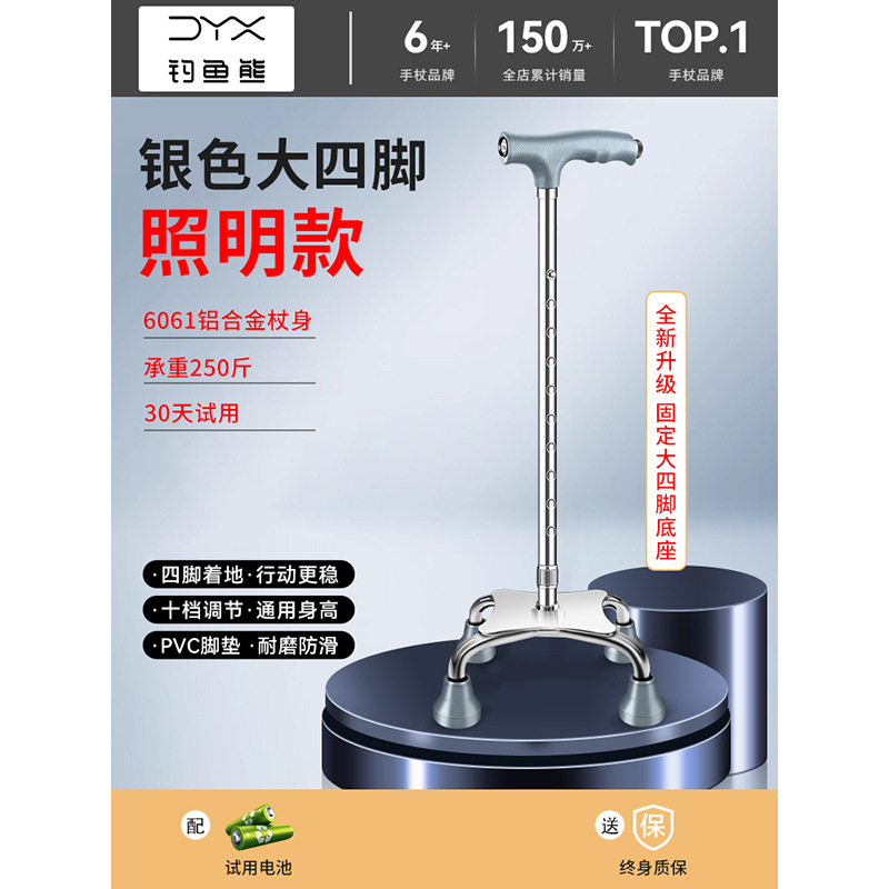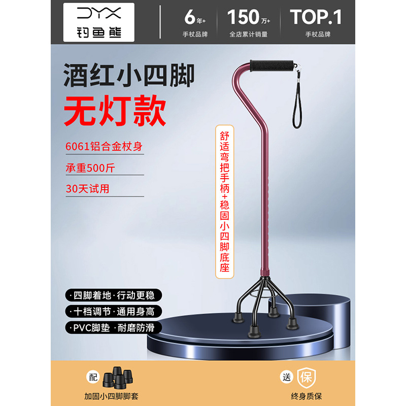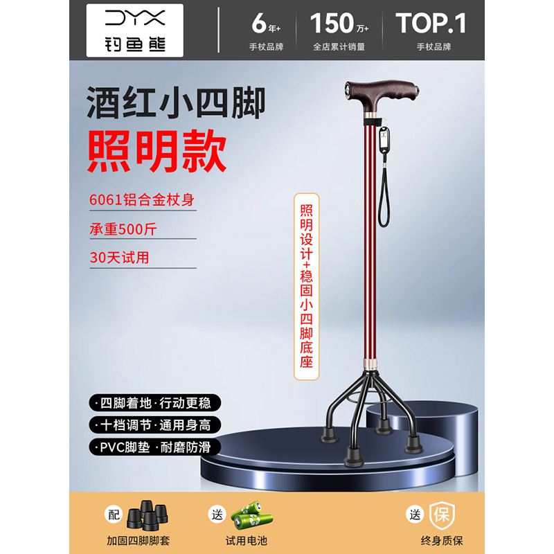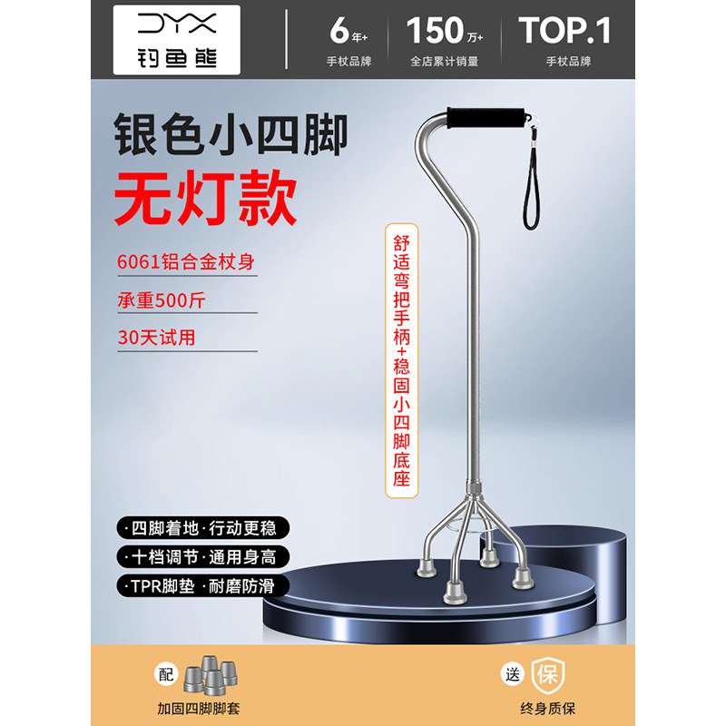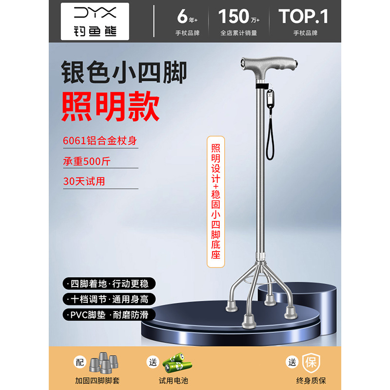 낚시곰 노인용 지팡이 다기능 경량 지팡이 대형 네발 미끄럼 방지 텔레스코픽 네발 등산 지팡이스토어 가기