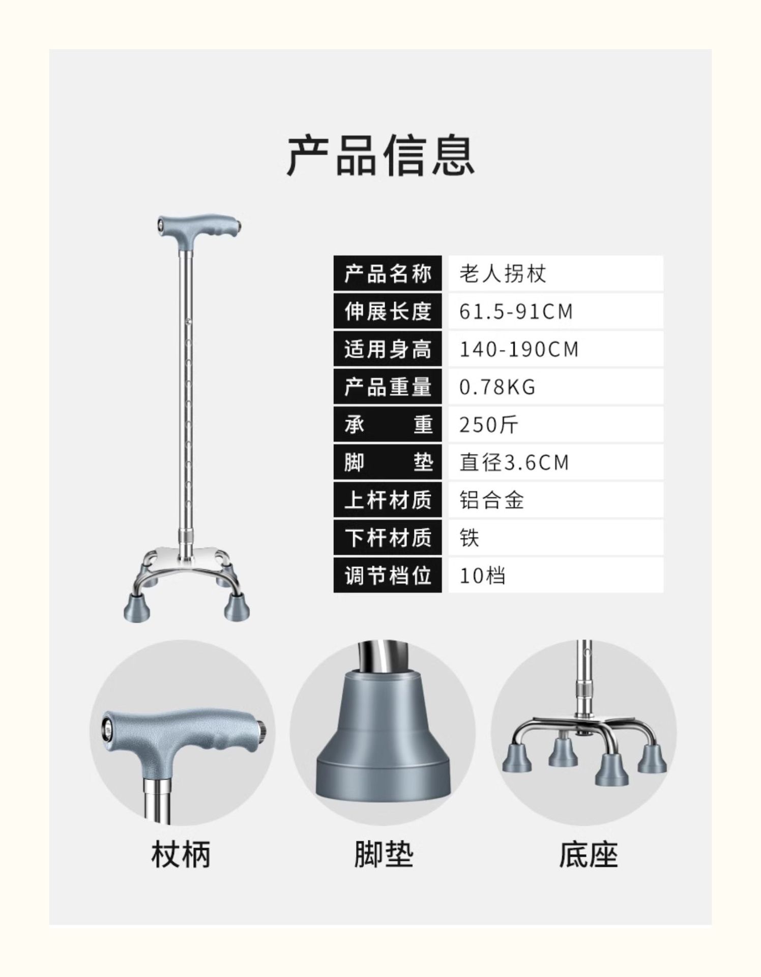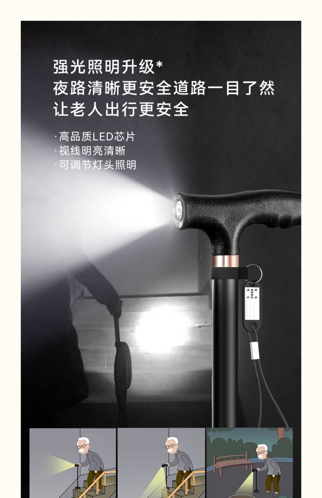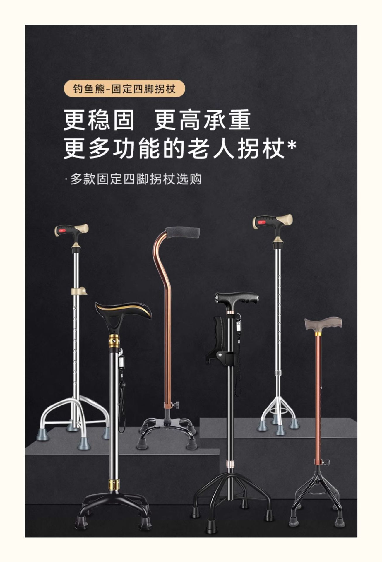 낚시곰 노인용 지팡이 다기능 경량 지팡이 대형 네발 미끄럼 방지 텔레스코픽 네발 등산 지팡이스토어 가기