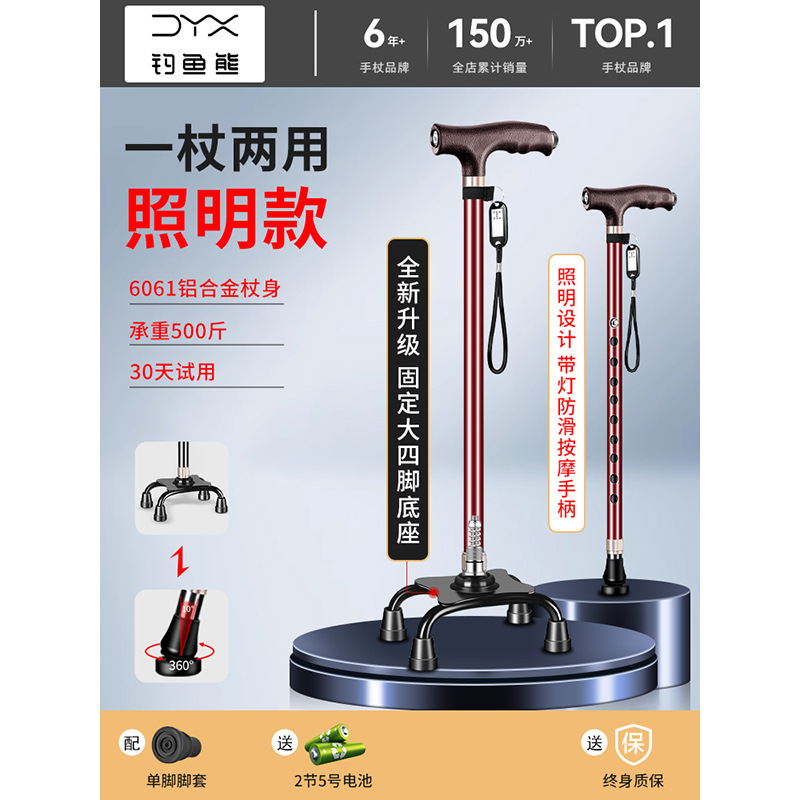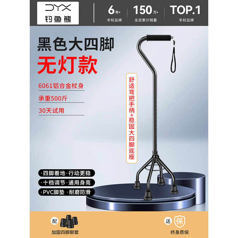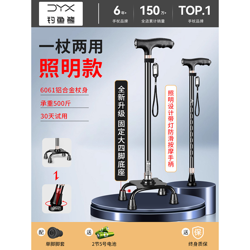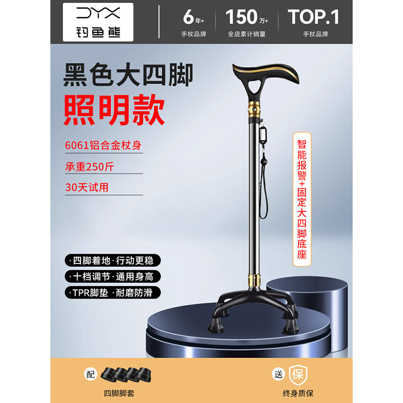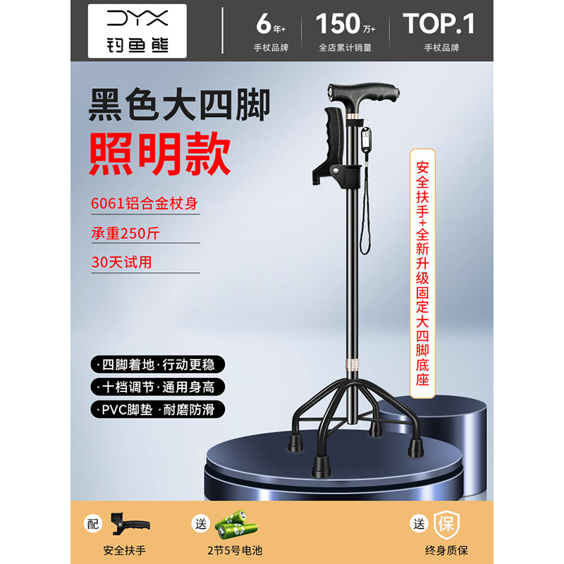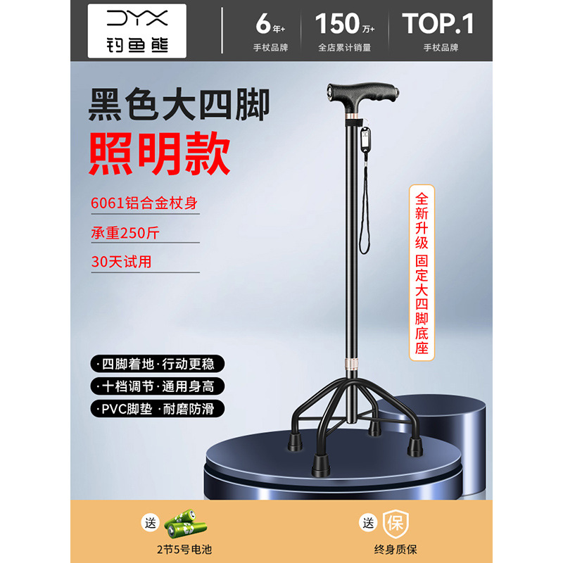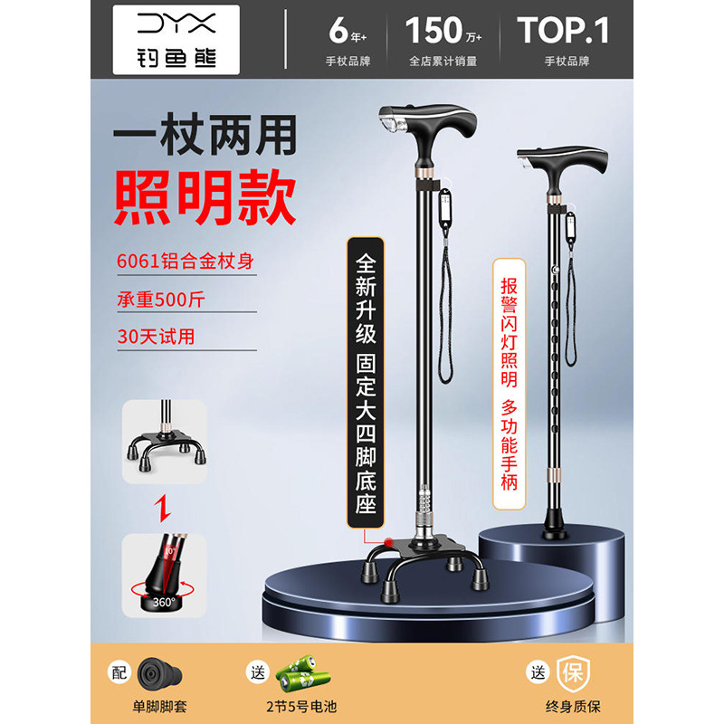낚시곰 노인용 지팡이 다기능 경량 지팡이 대형 네발 미끄럼 방지 텔레스코픽 네발 등산 지팡이
