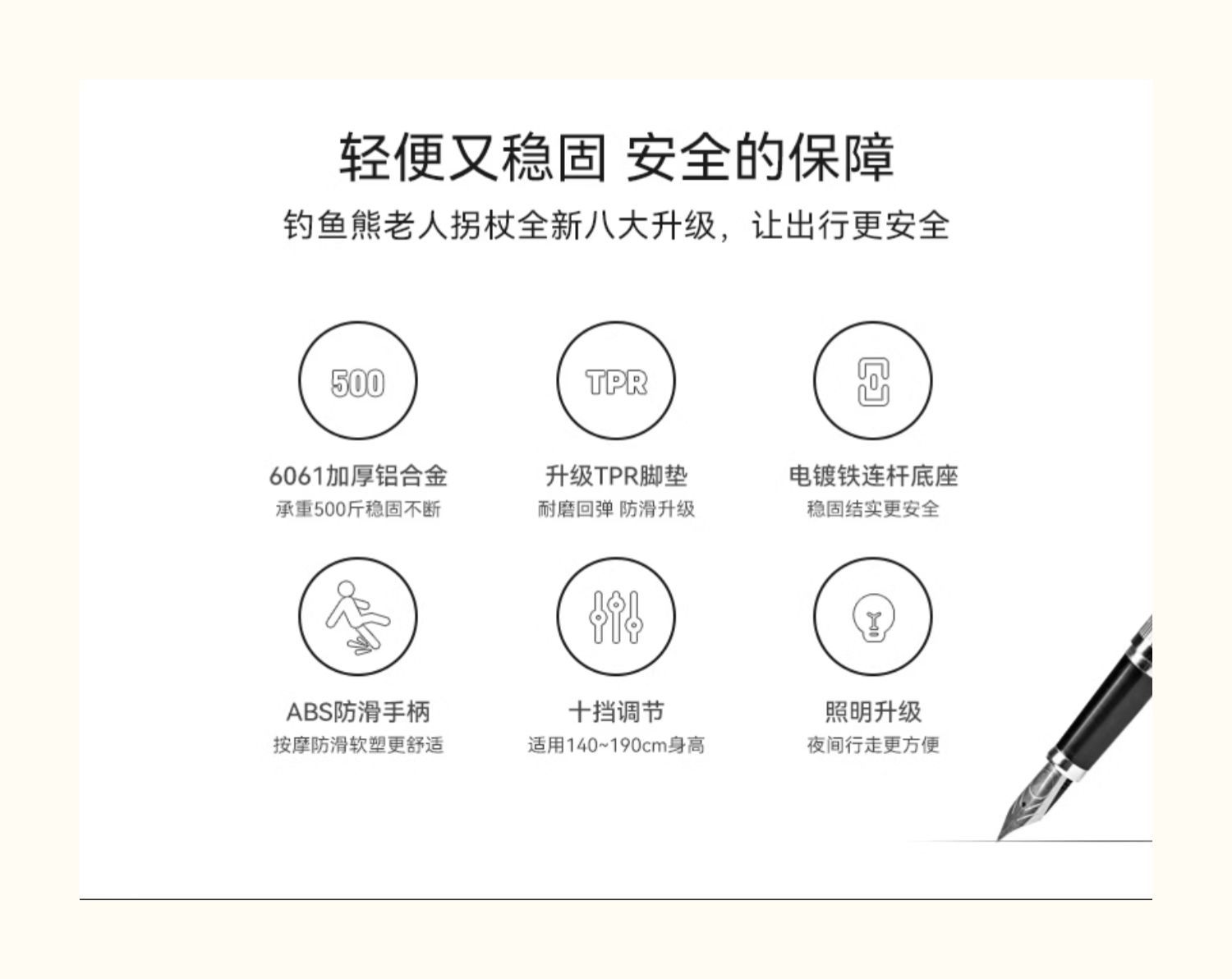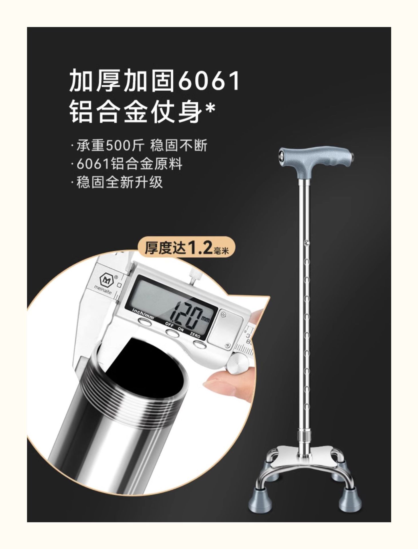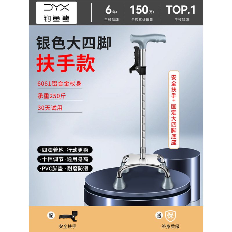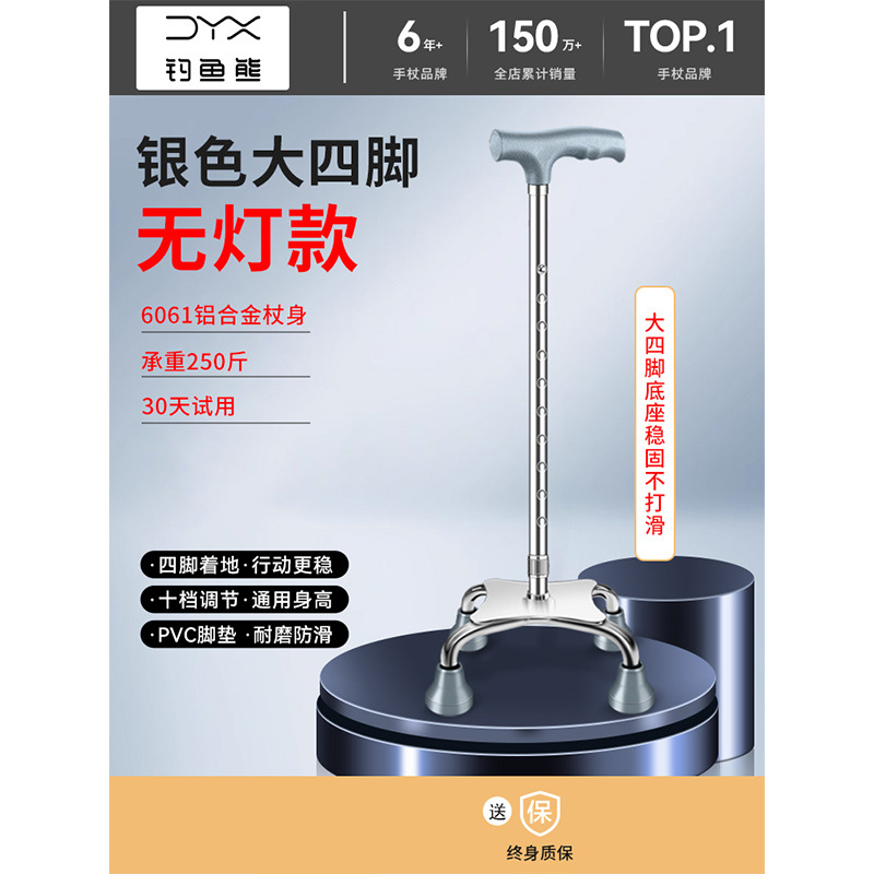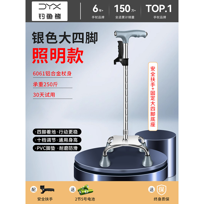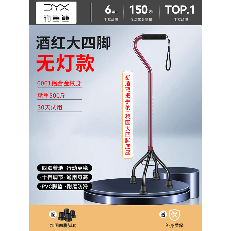 낚시곰 노인용 지팡이 다기능 경량 지팡이 대형 네발 미끄럼 방지 텔레스코픽 네발 등산 지팡이