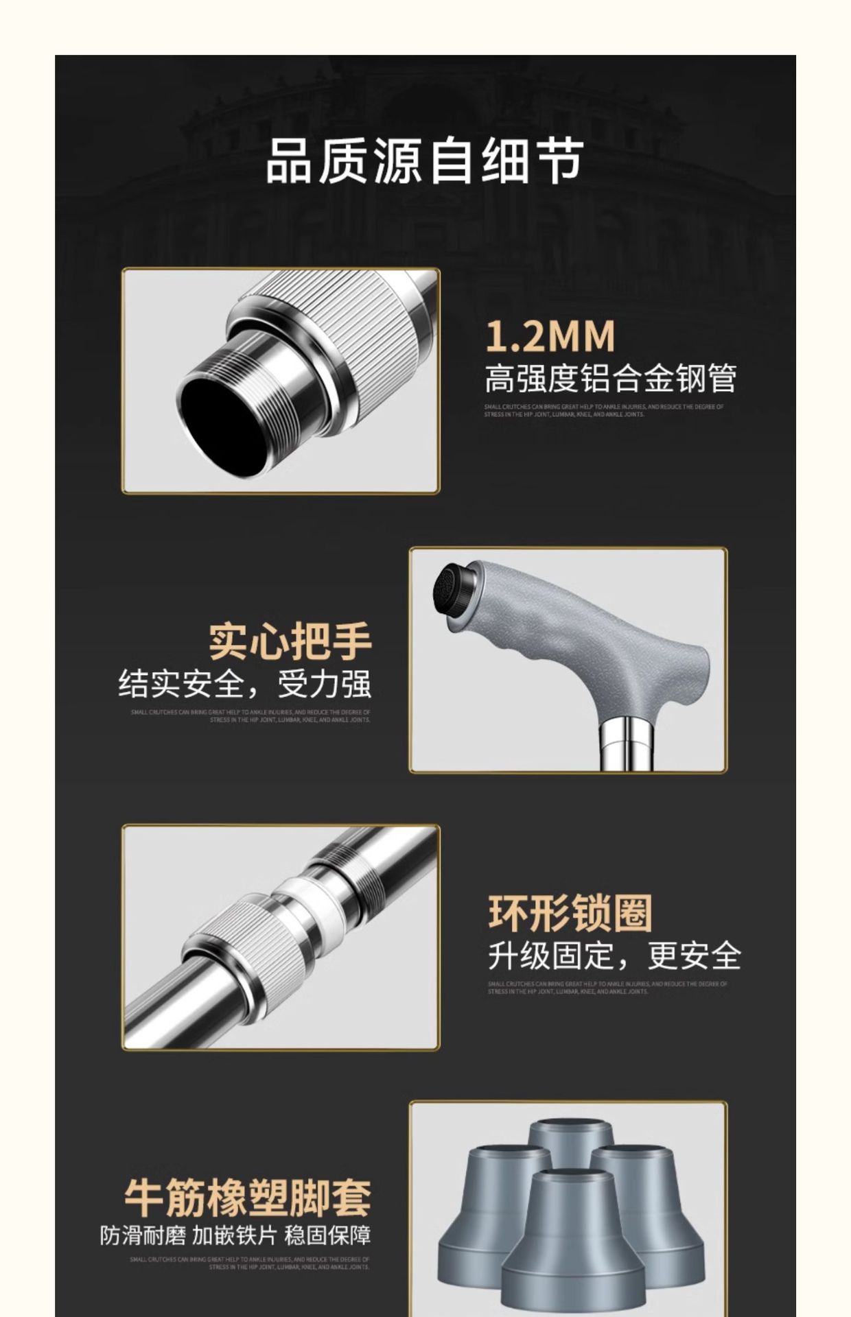 • 실버 회색 곡선 손잡이 (편안한 손잡이 두꺼운 알루미늄 합금) 강화 작은 4 피트