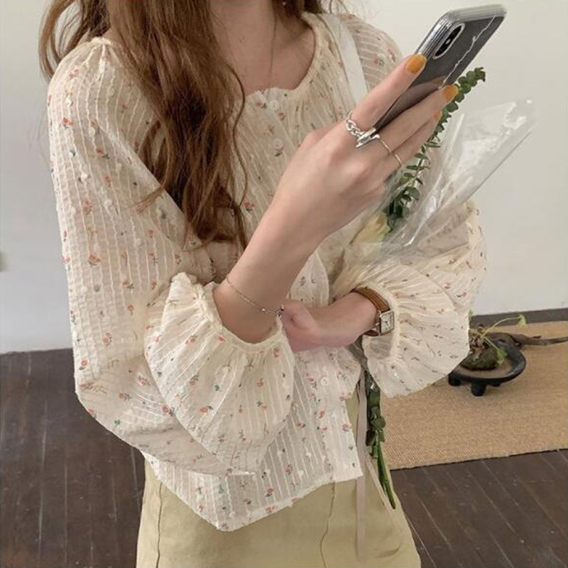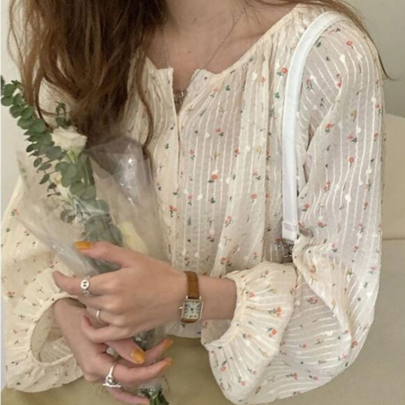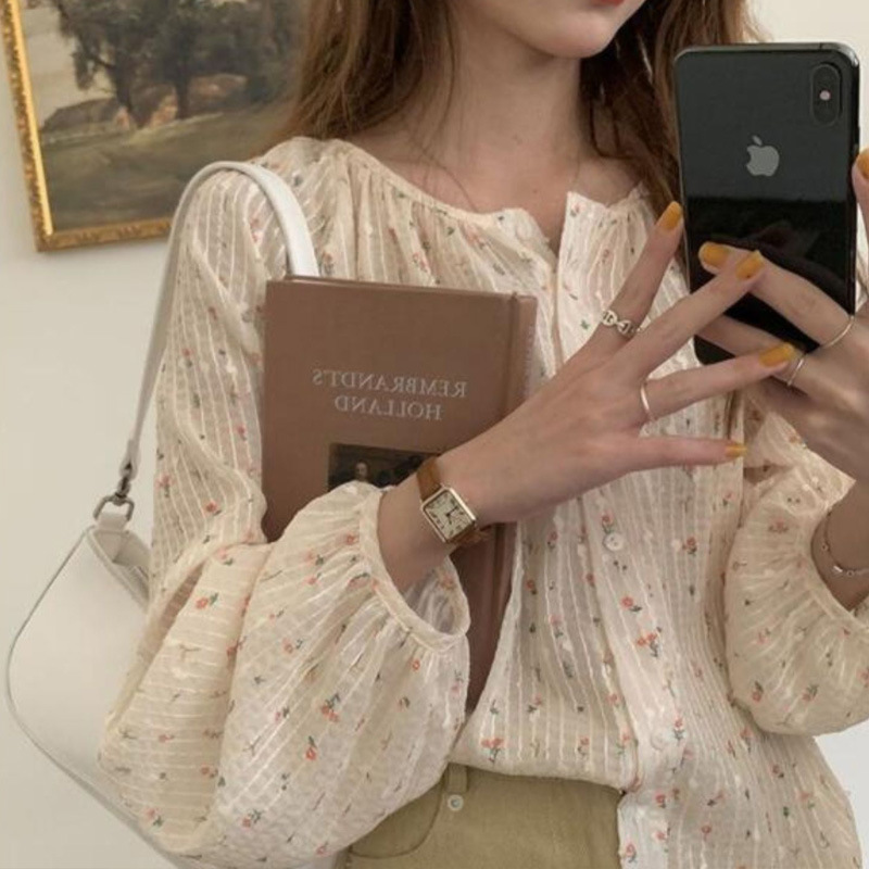 프렌치 시크 꽃무늬 셔츠 1688 봄 여름 새로운 디자인 틈새 루즈 슬림 셔츠 여성상의