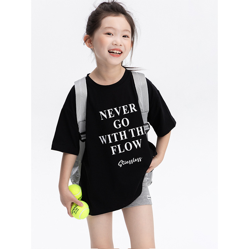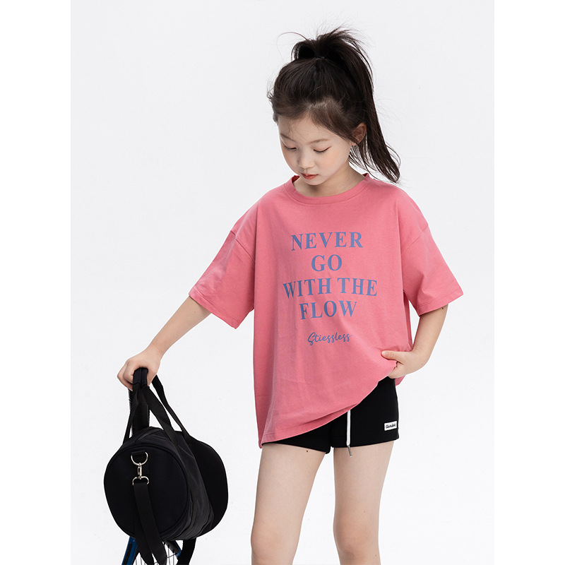 어린이 편지 티셔츠 2025 여름 새 여자 패션 스포츠 탑 중형 및 대형 아동복 순수 코튼 느슨한 반팔스토어 가기