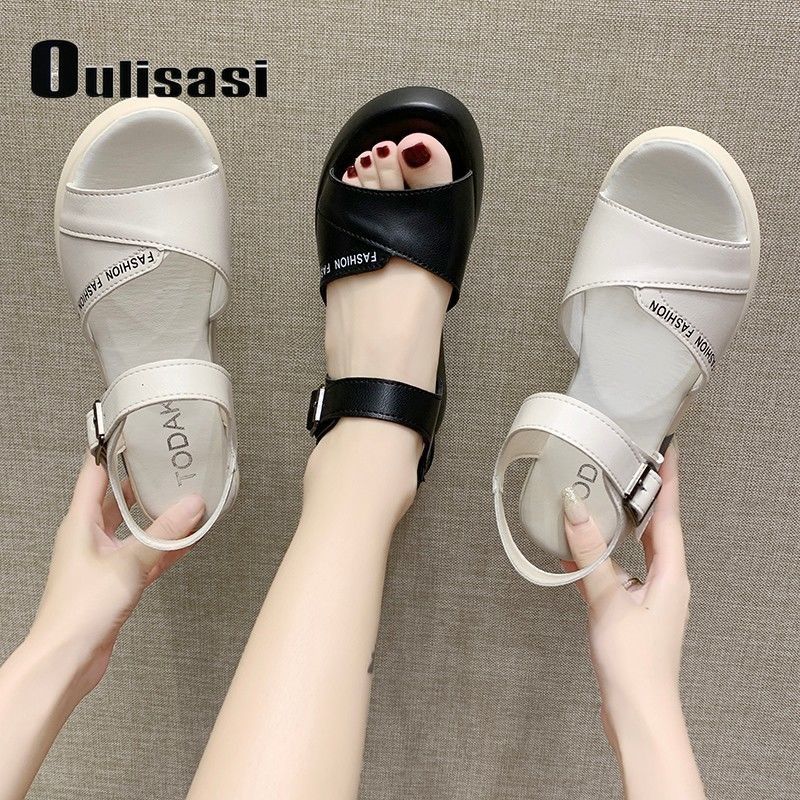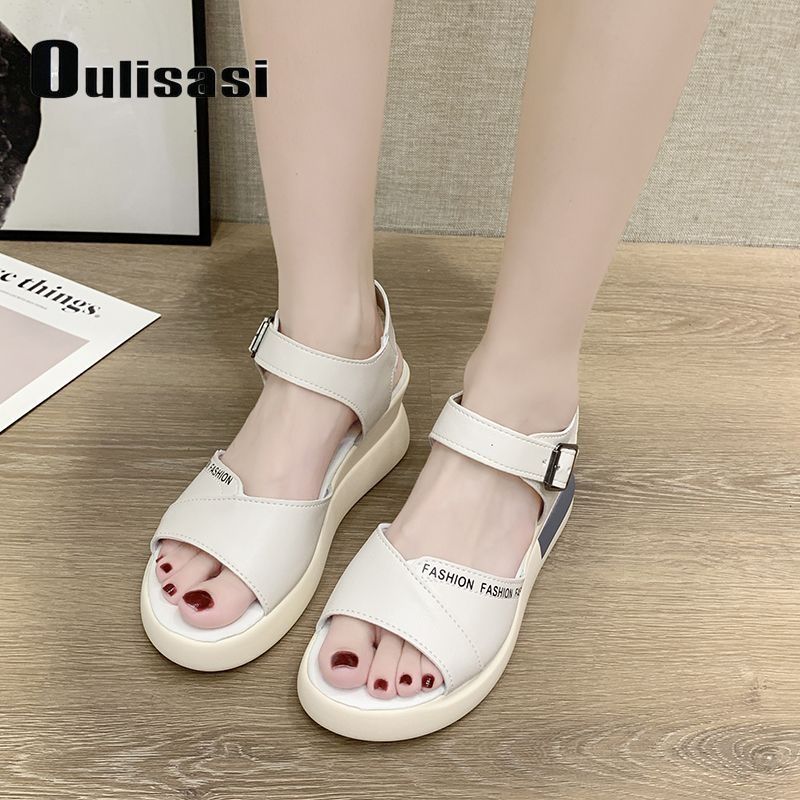 여성 웨지 샌들 2024 여름 신상 슬림 하이힐 부드러운 밑창 부드러운 가죽 캐주얼 만능 여성 샌들 미끄럼 방지스토어 가기