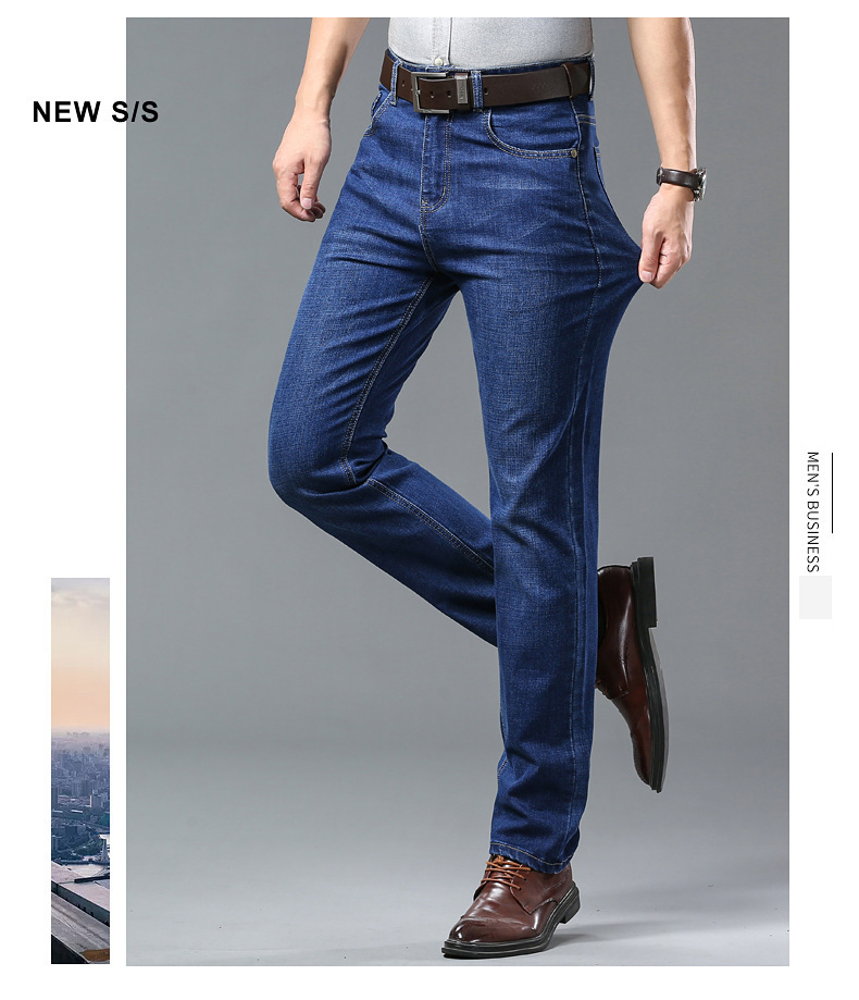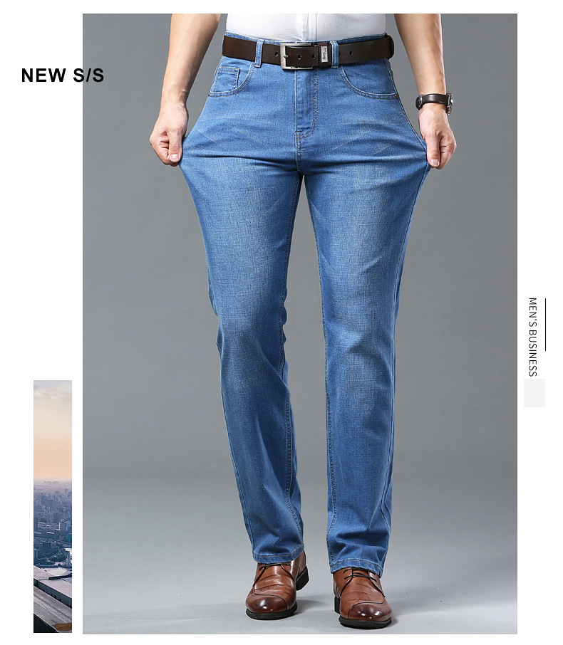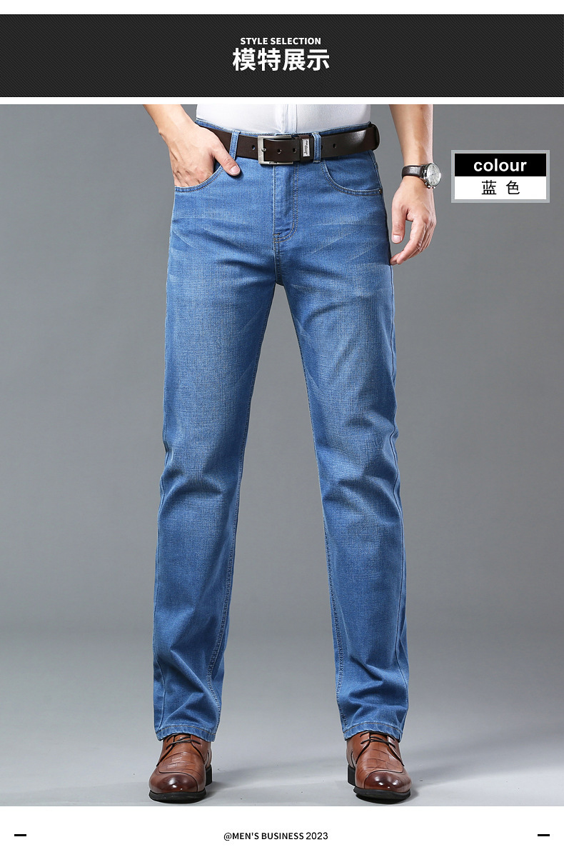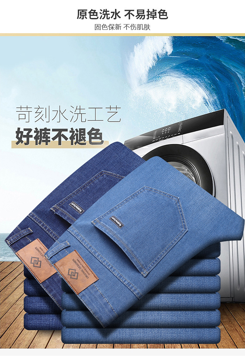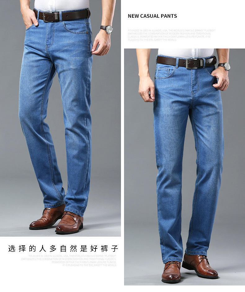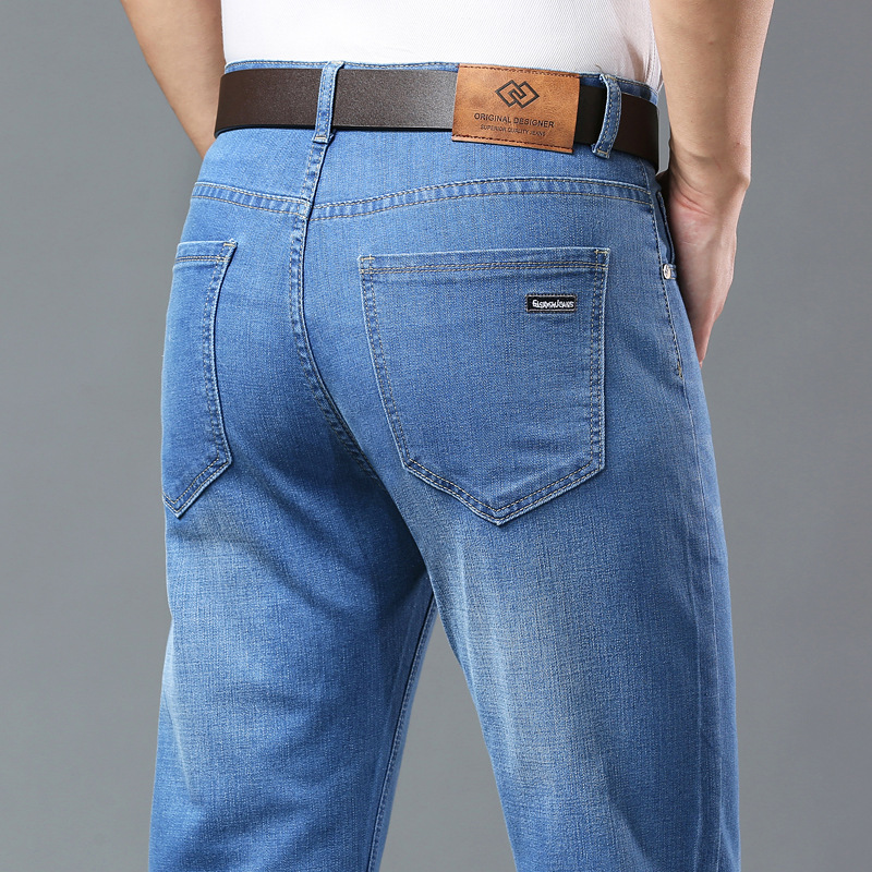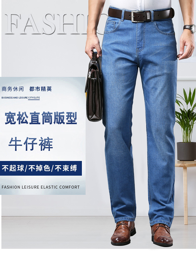 폭발성 2024 여름 얇은 청바지 남성 비즈니스 청소년 플러스 사이즈 느슨한 스트레이트 트렌디 올 매치 롱 바지