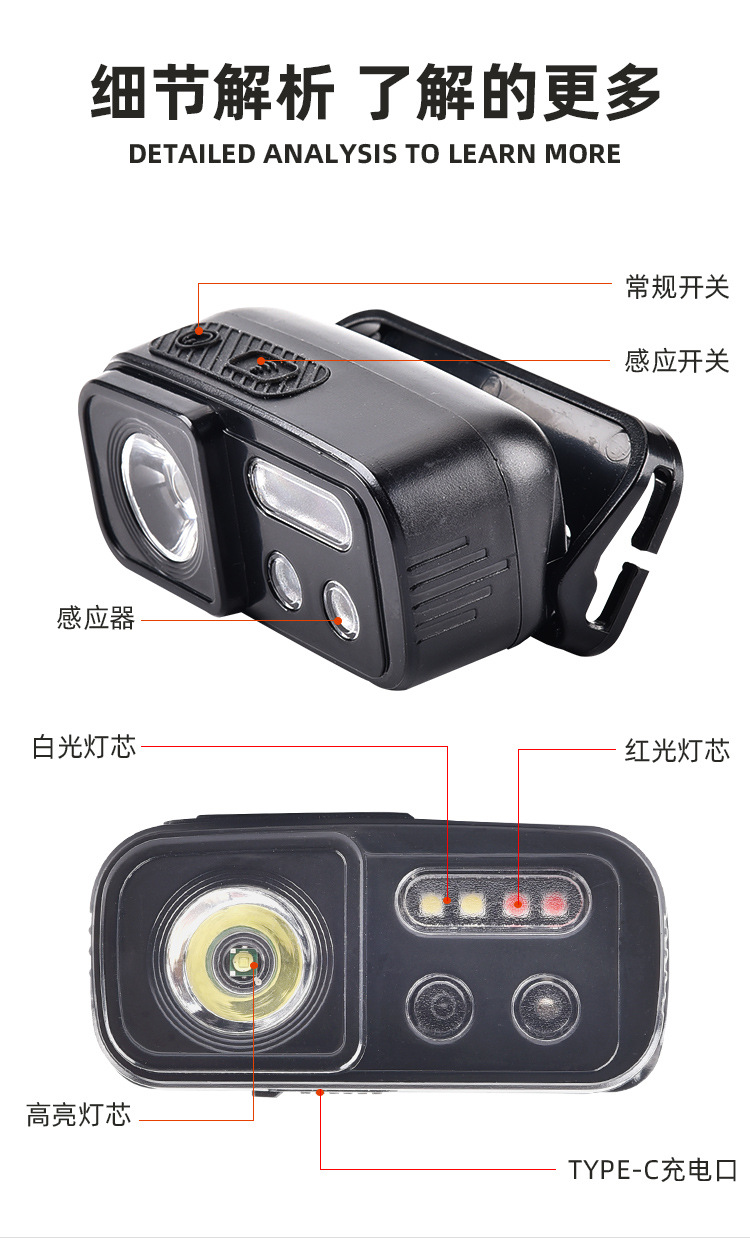 유도 헤드 라이트 밝은 빛 USB 충전 헤드 라이트 야간 조명 손전등 led 야외 헤드 장착 야간 낚시 헤드 라이트스토어 가기