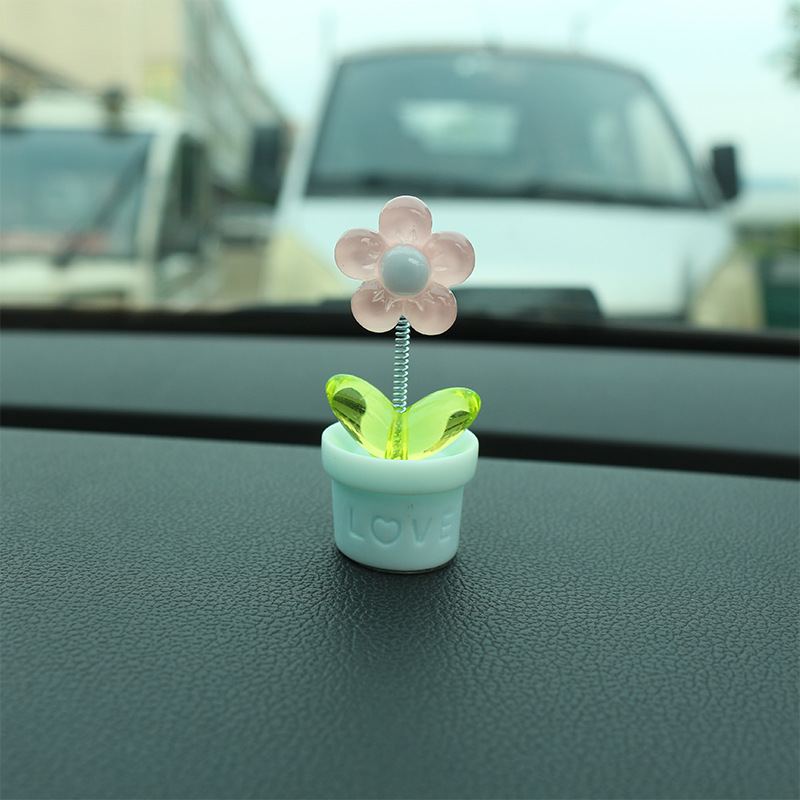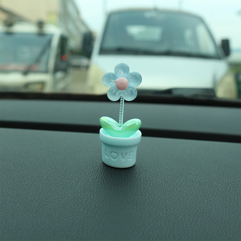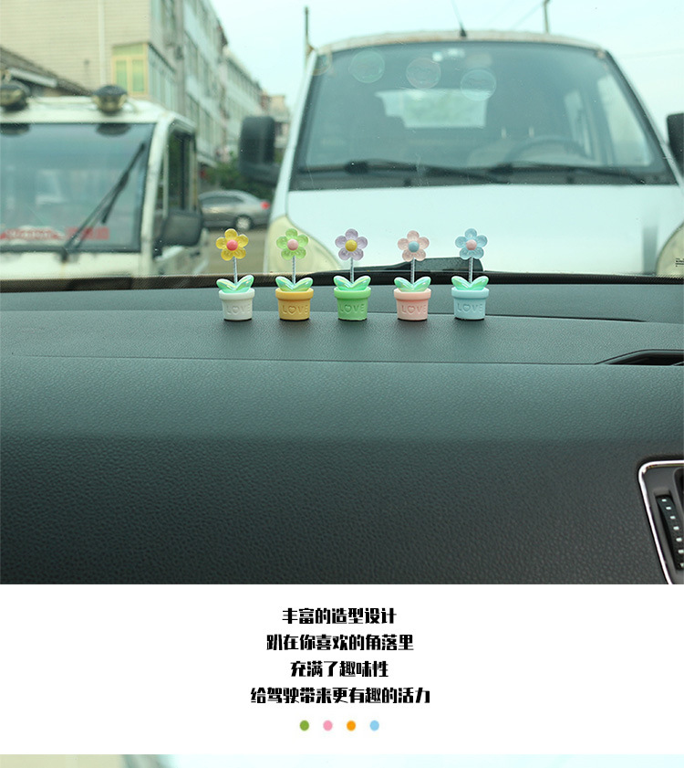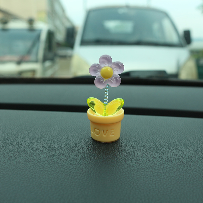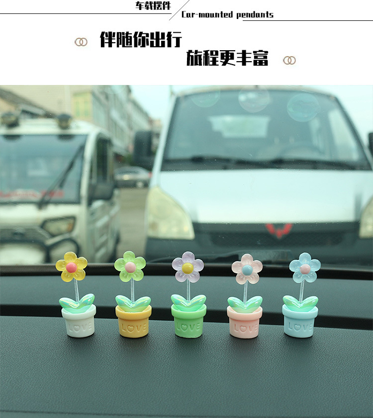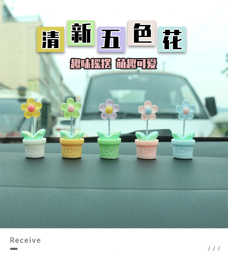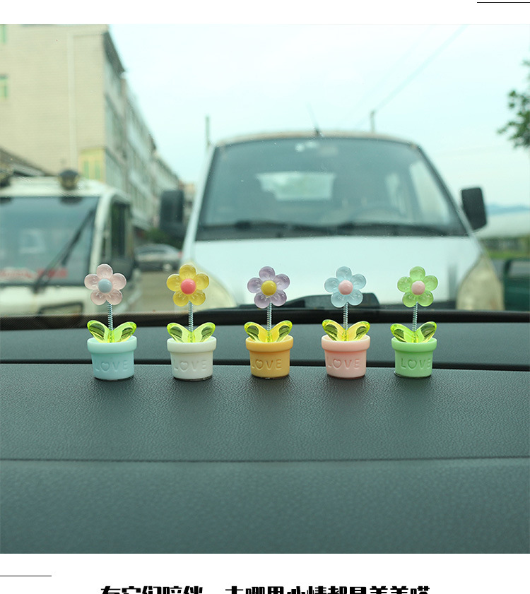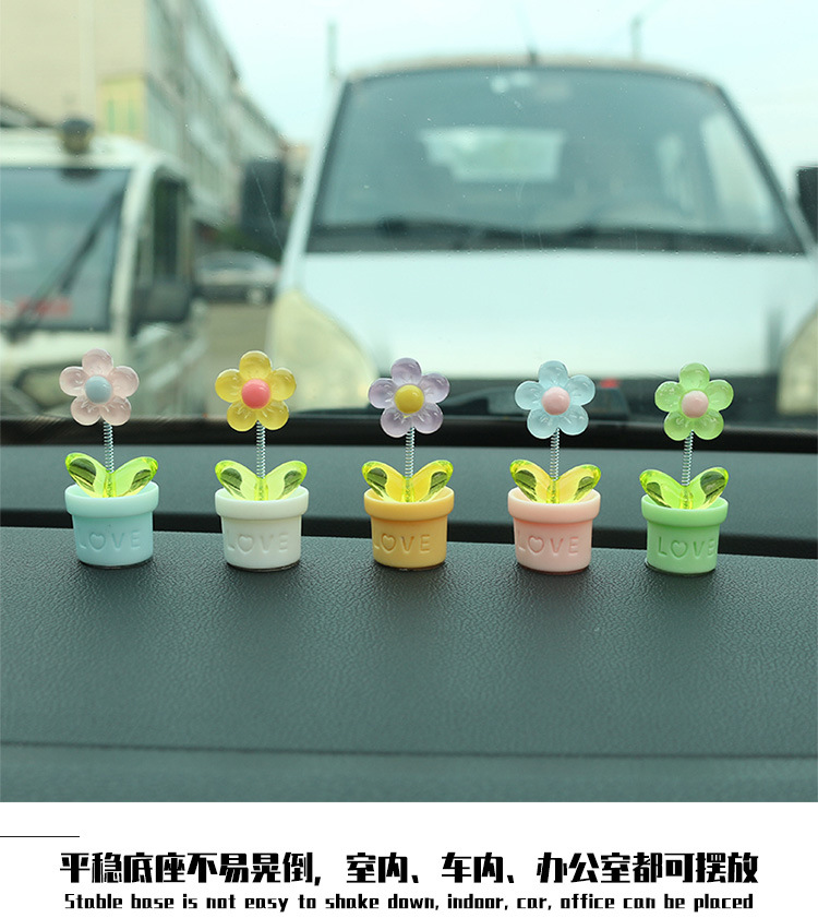 새로운 창조적 인 신선한 작은 꽃 냄비 투명한 5 색 꽃 흔들리는 머리 자동차 장식품 자동차 인테리어 센터 콘솔 장식