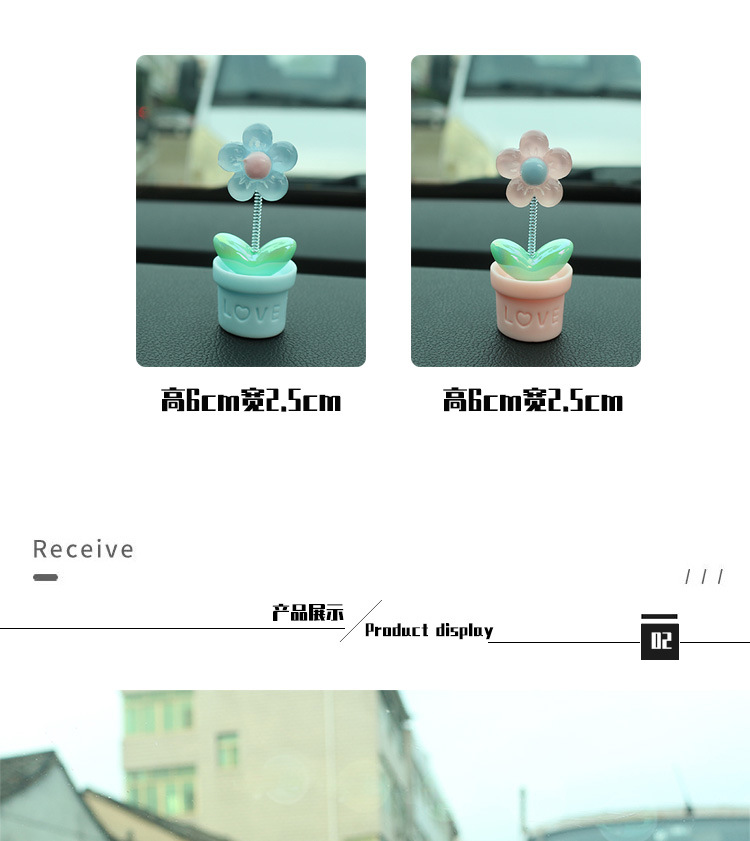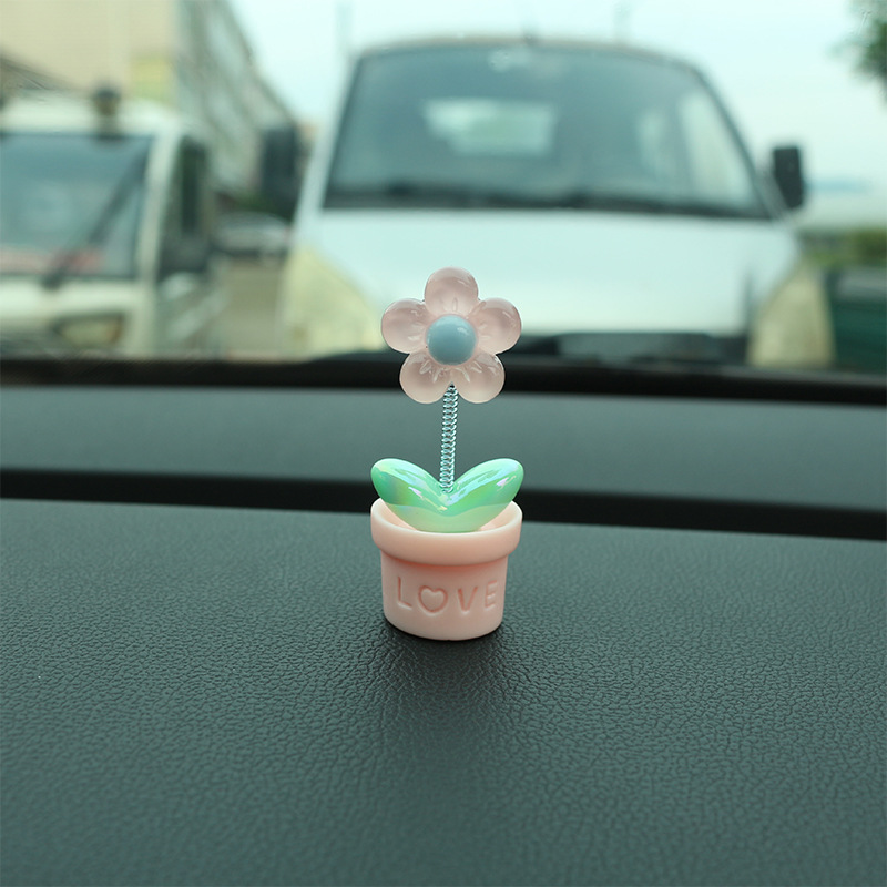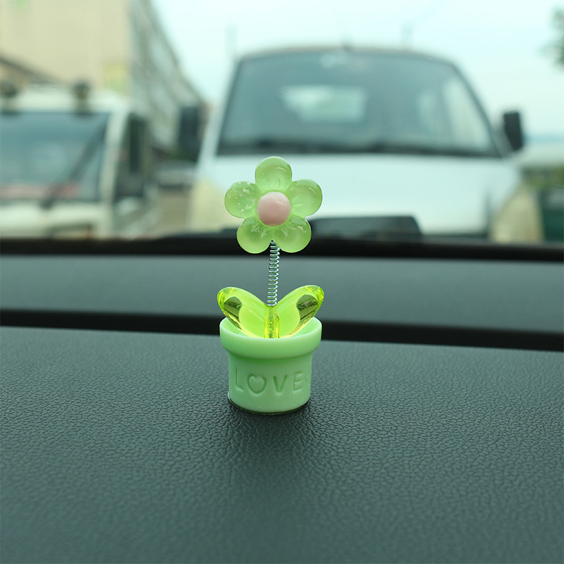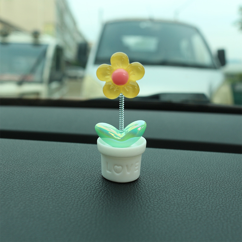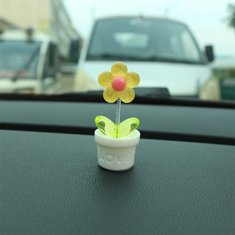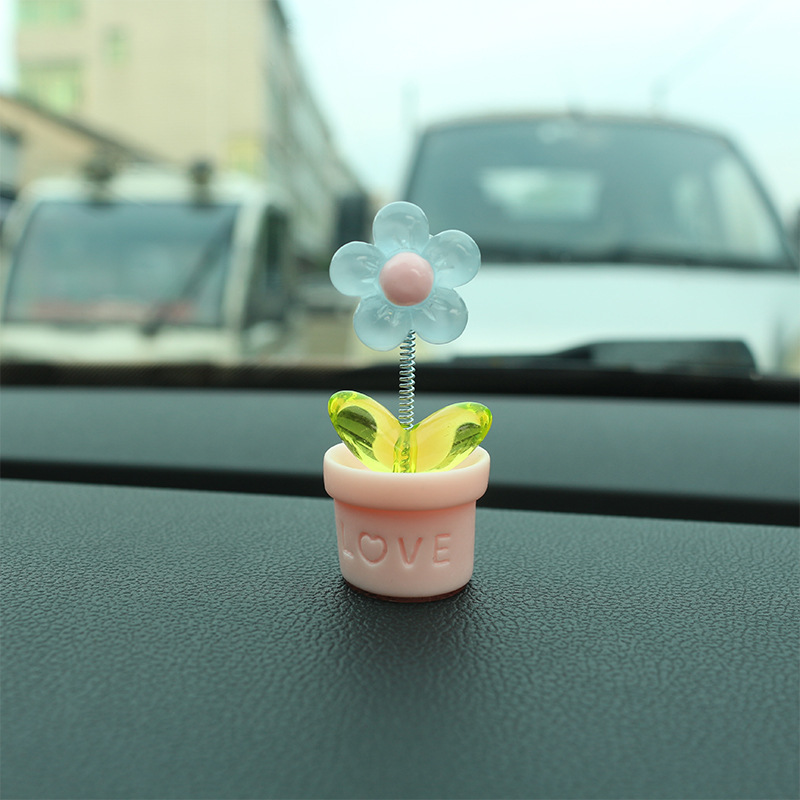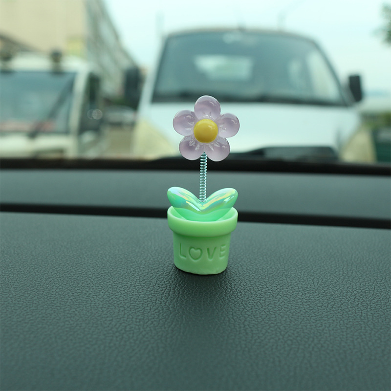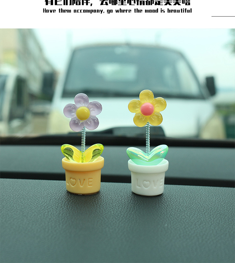 새로운 창조적 인 신선한 작은 꽃 냄비 투명한 5 색 꽃 흔들리는 머리 자동차 장식품 자동차 인테리어 센터 콘솔 장식
