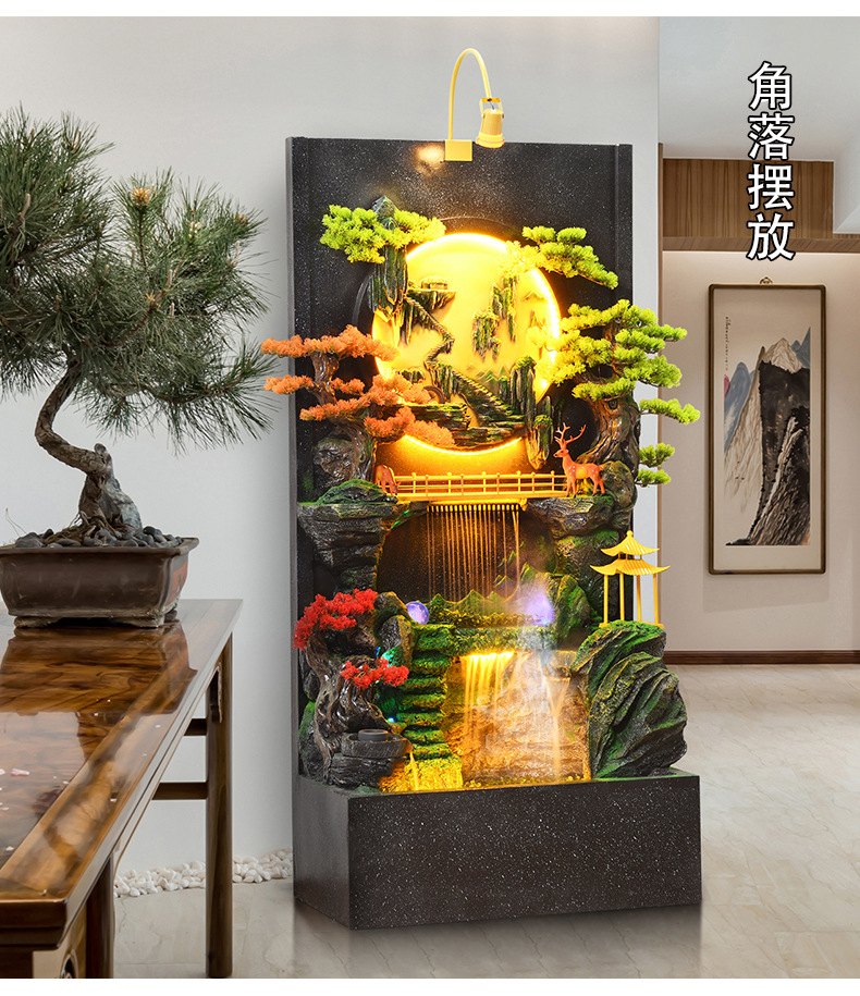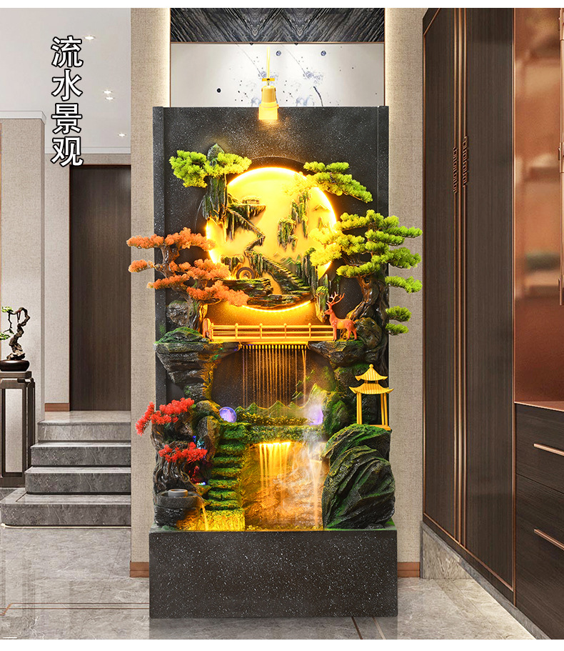 물 커튼 벽 흐르는 물 스크린 회사 호텔 빌라 배경 실내 및 야외 안뜰 정원 바위 물고기 연못 분수 풍경스토어 가기