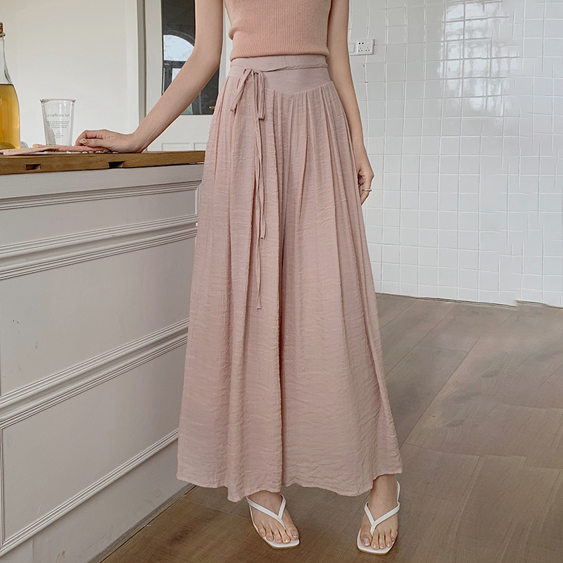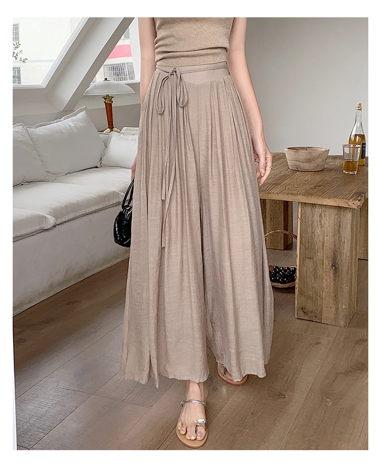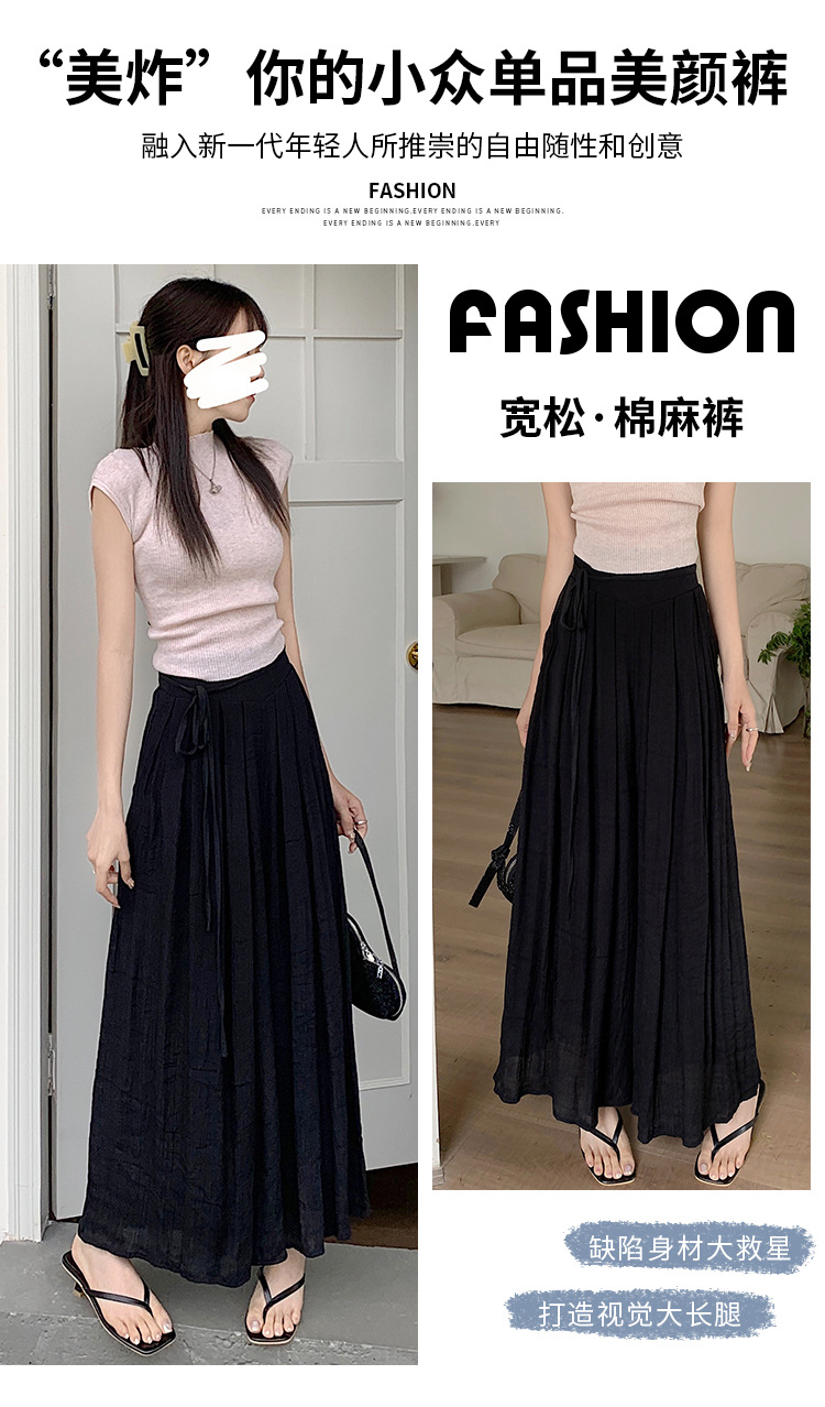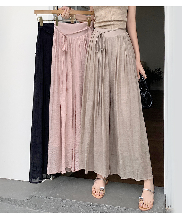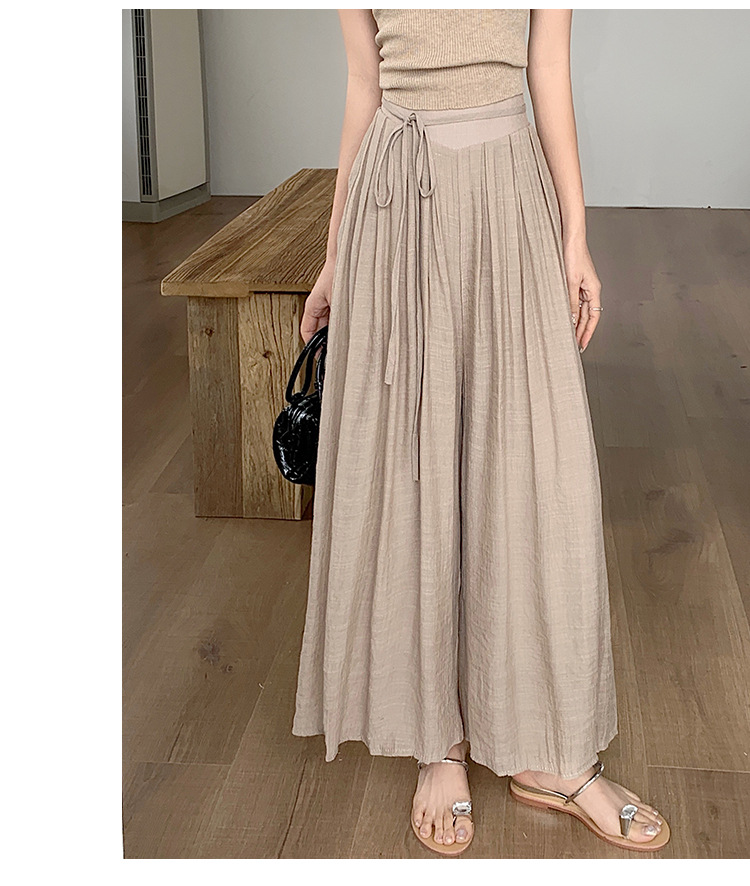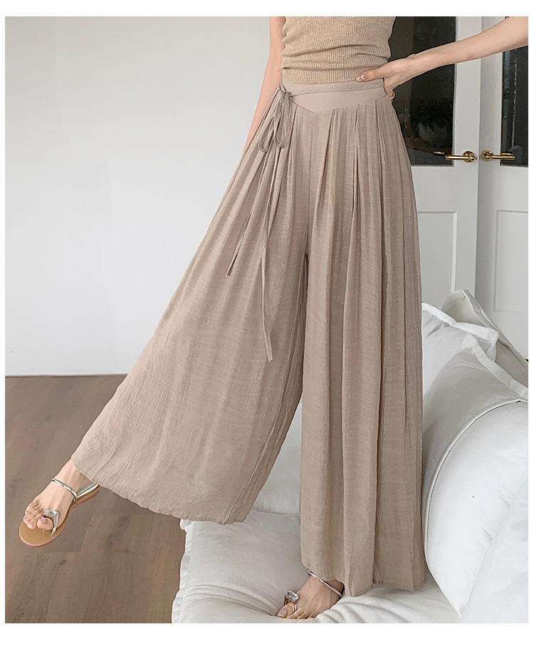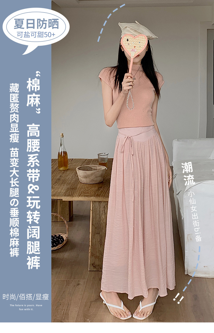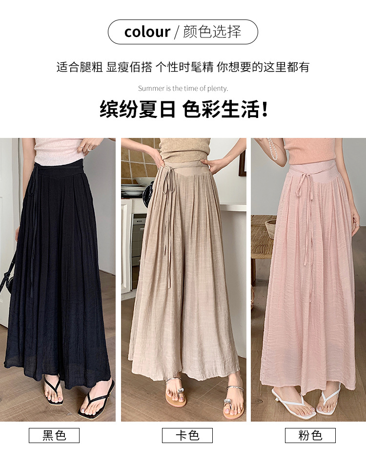 슈퍼 피우 허리면 린넨 펄럭이는 스커트 바지 2024 여름 높은 허리 레이스 업 드레이프 넓은 다리 바지 캐주얼 바지 도매스토어 가기