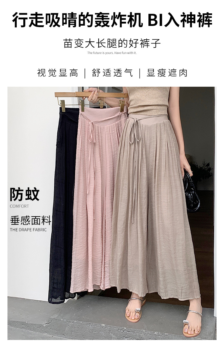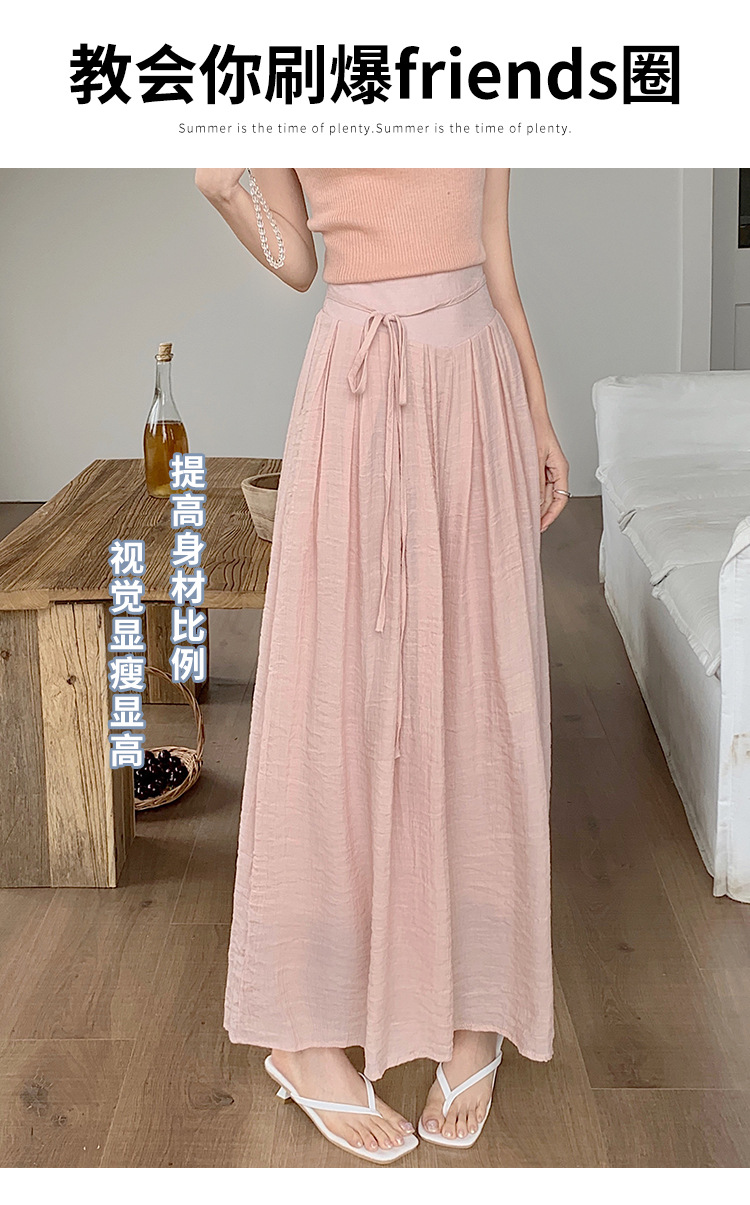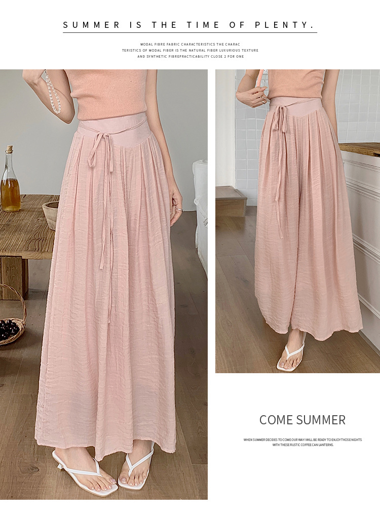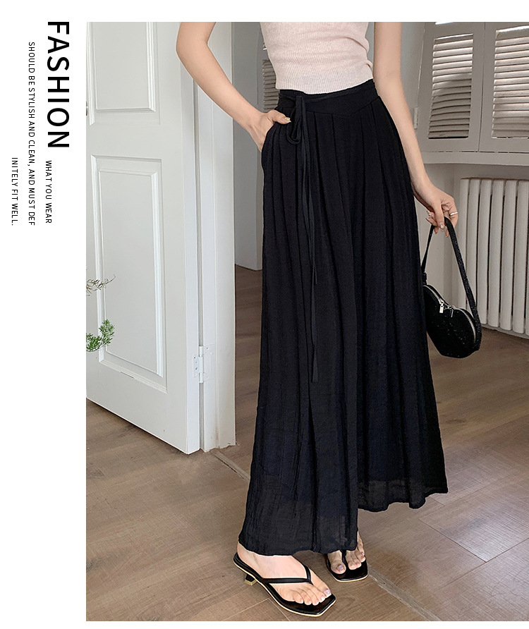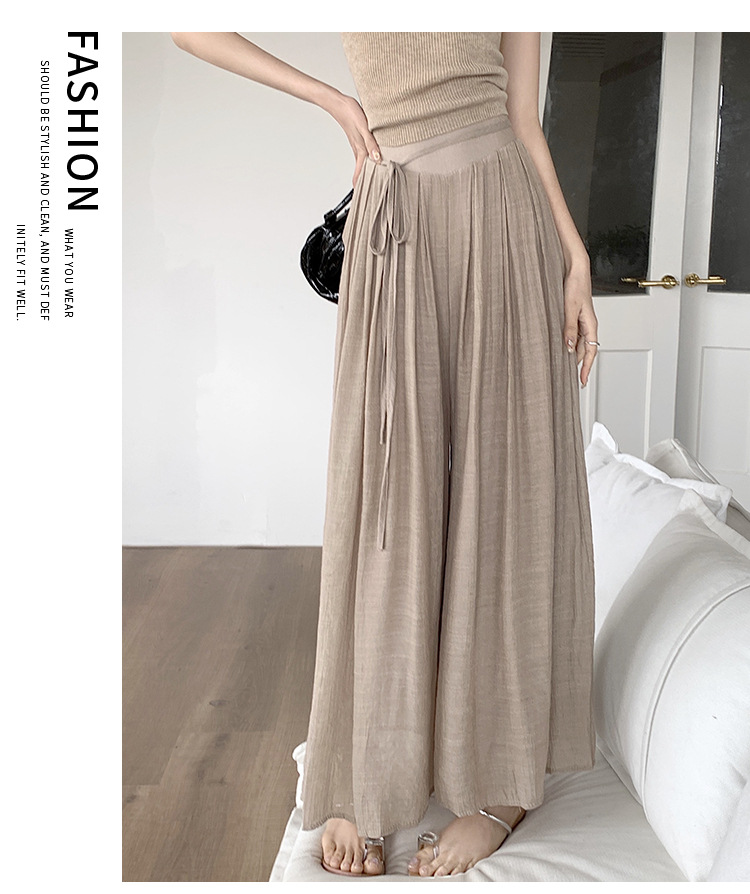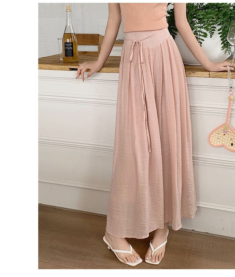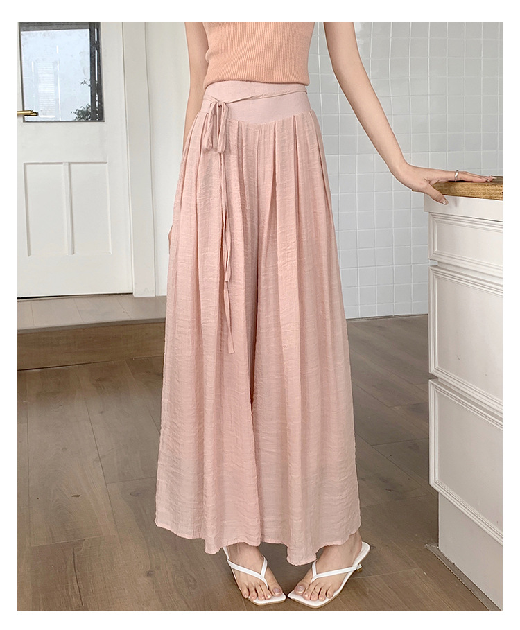 슈퍼 피우 허리면 린넨 펄럭이는 스커트 바지 2024 여름 높은 허리 레이스 업 드레이프 넓은 다리 바지 캐주얼 바지 도매스토어 가기