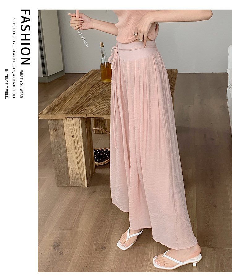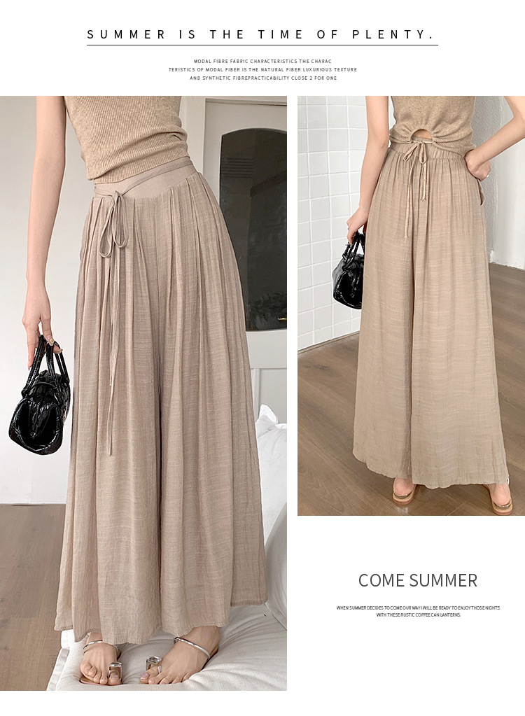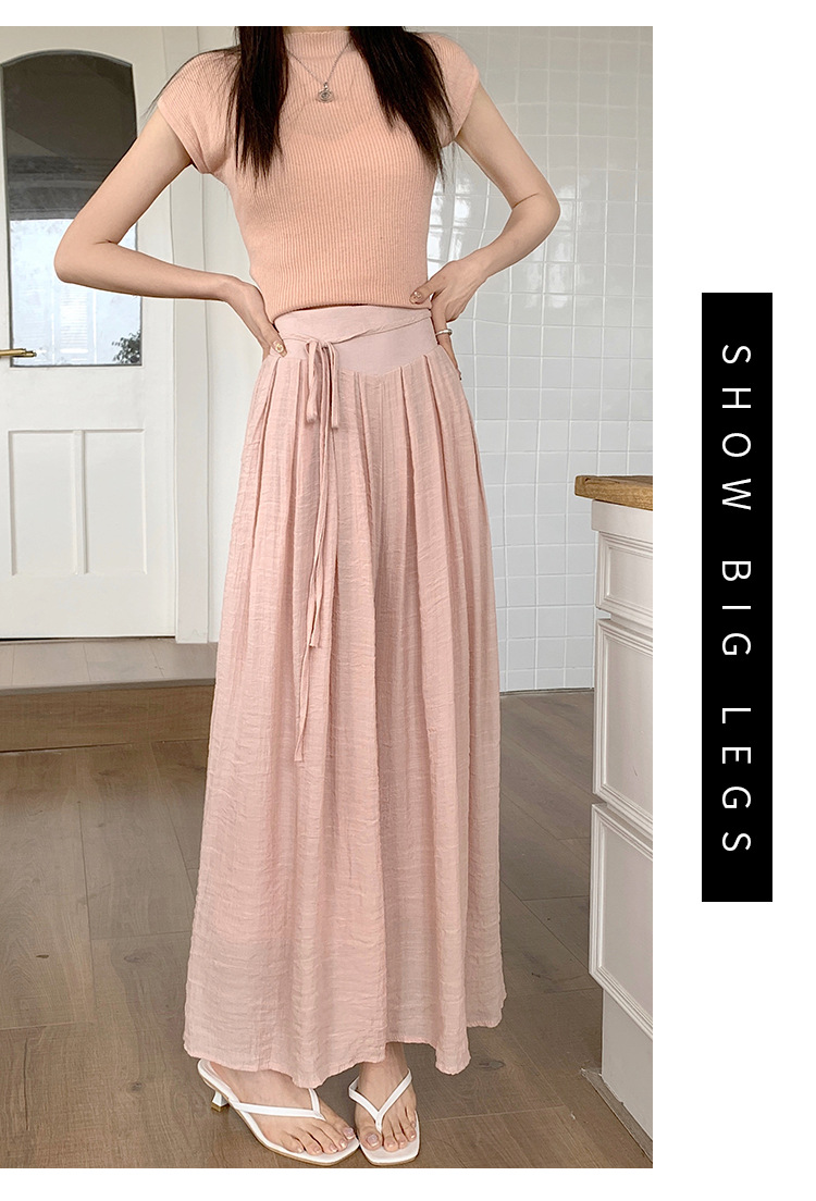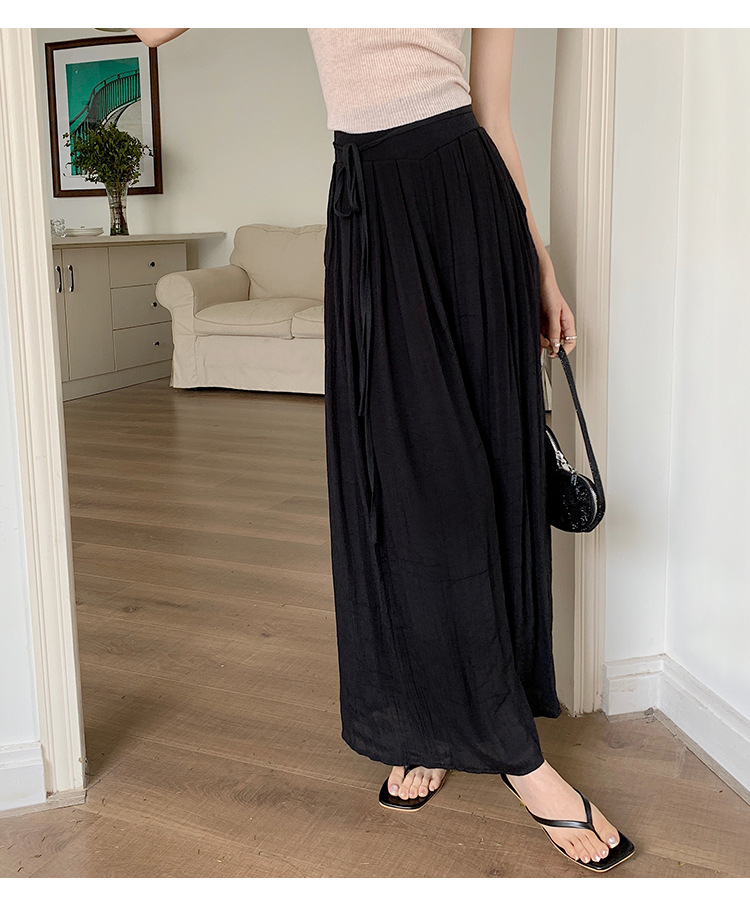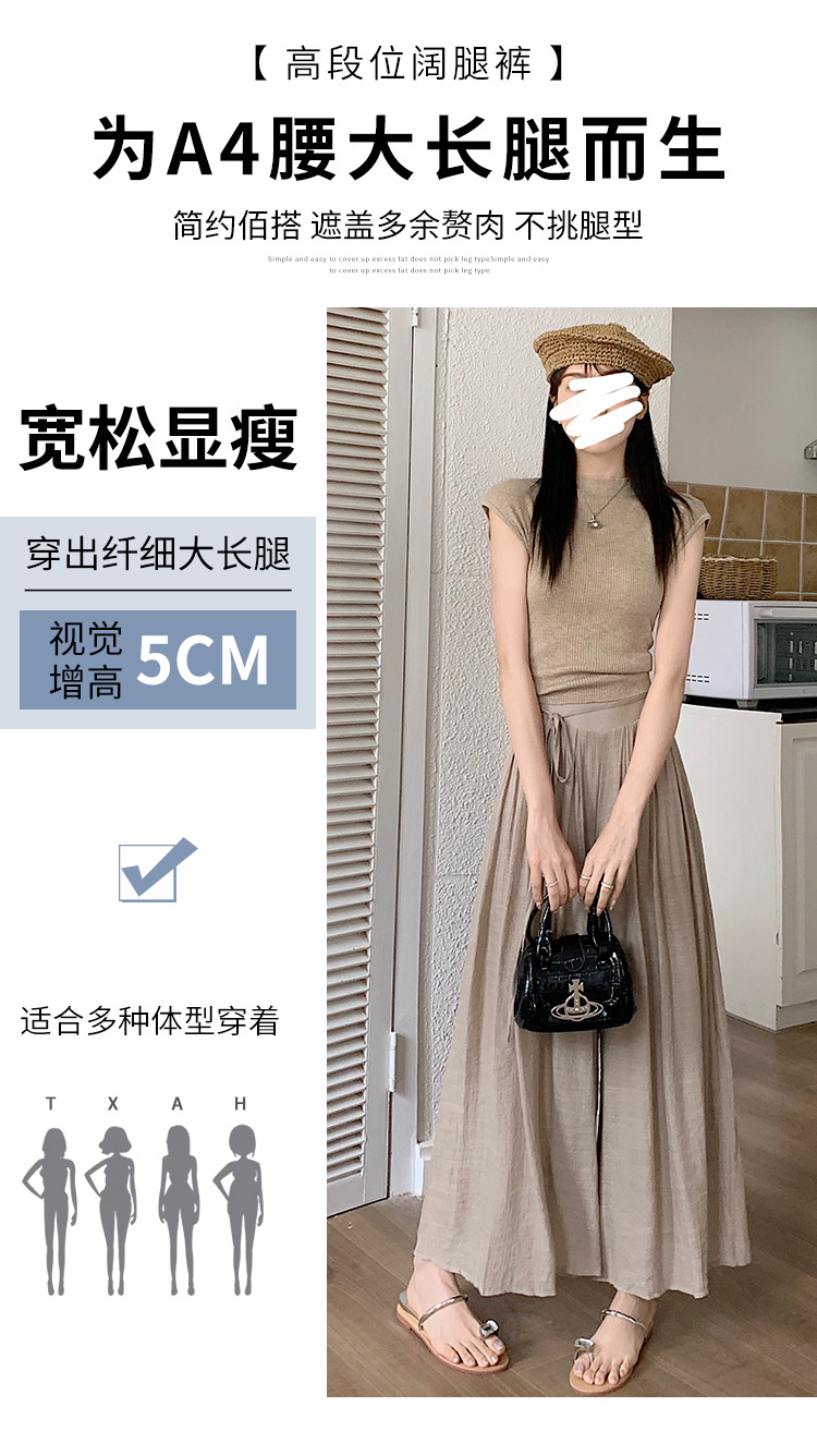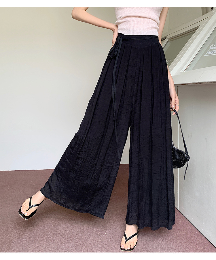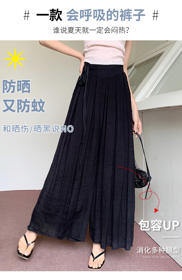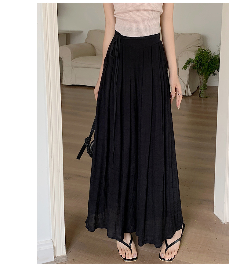슈퍼 피우 허리면 린넨 펄럭이는 스커트 바지 2024 여름 높은 허리 레이스 업 드레이프 넓은 다리 바지 캐주얼 바지 도매스토어 가기