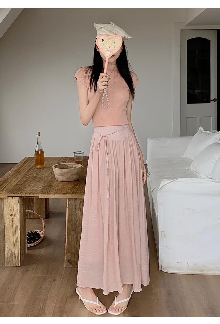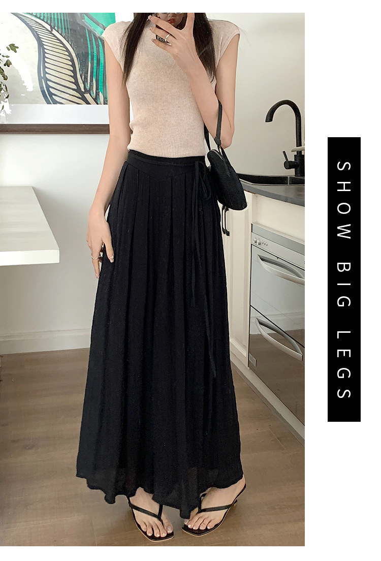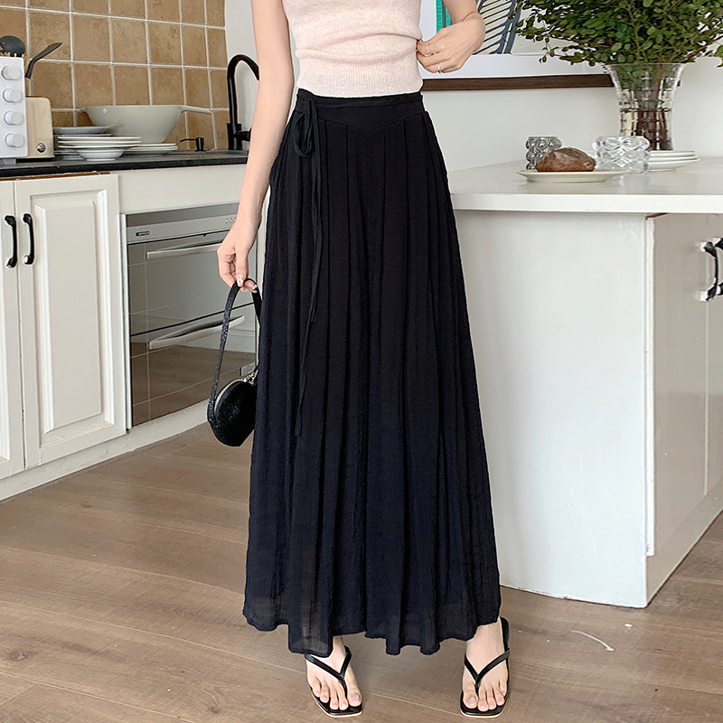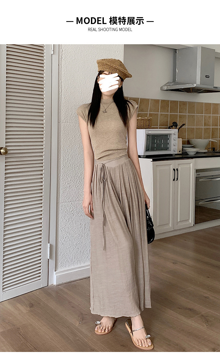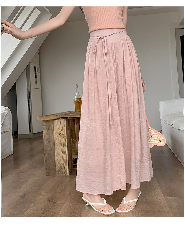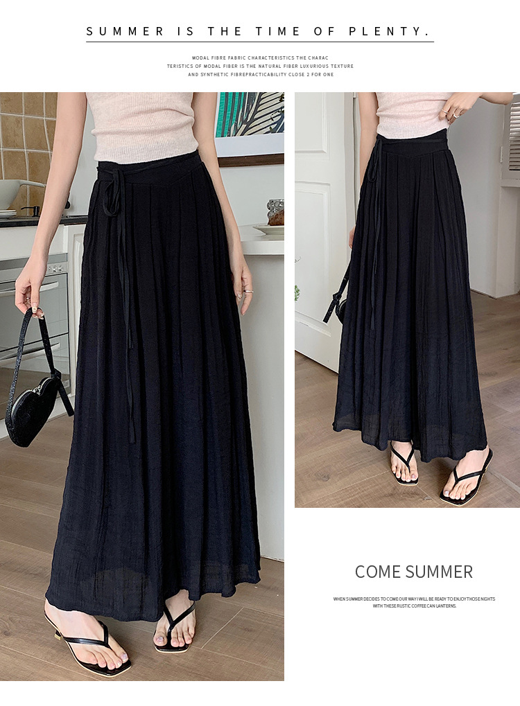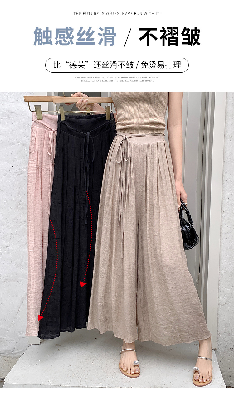 슈퍼 피우 허리면 린넨 펄럭이는 스커트 바지 2024 여름 높은 허리 레이스 업 드레이프 넓은 다리 바지 캐주얼 바지 도매스토어 가기