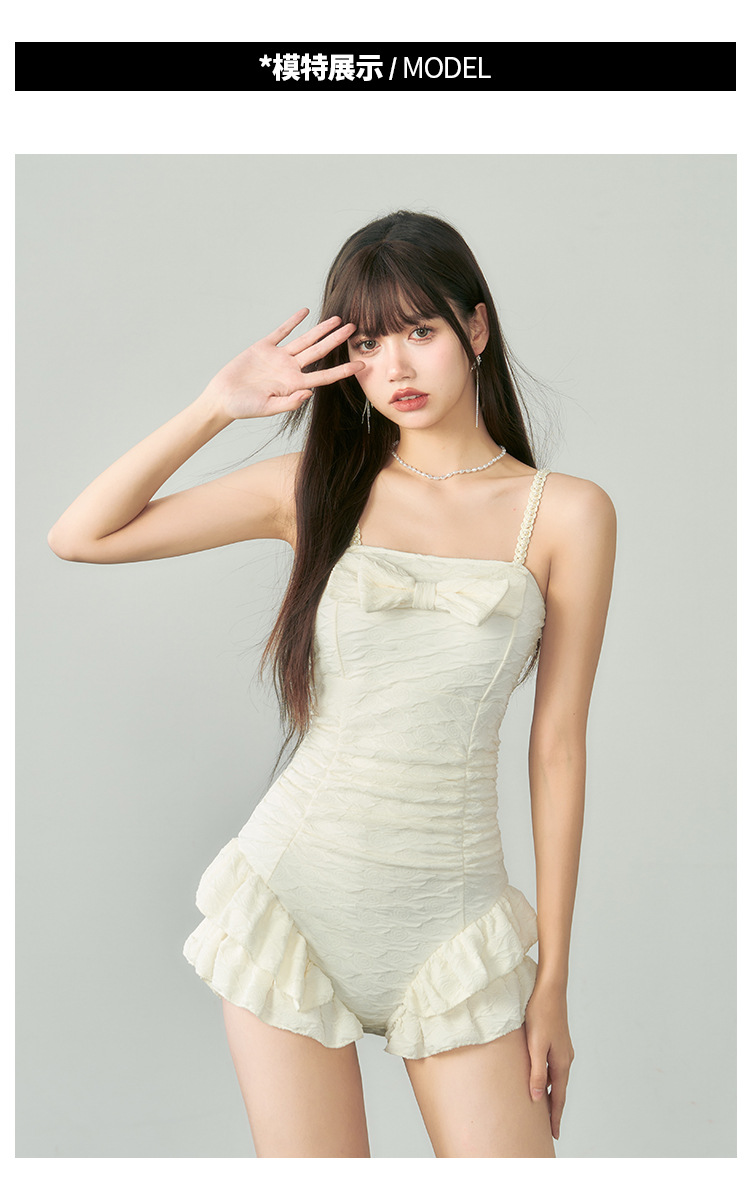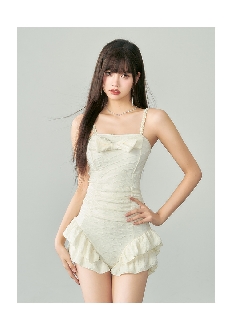 여성용 원피스 수영복, 러플 디자인, 슬림핏, 작은 가슴을 위한 푸쉬업, 날씬해 보이는 한국 스타일, 상큼한 학생 수영복, 플랫 핏 수영복