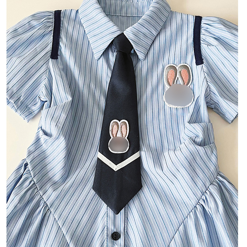 2024 새로운 여자 대학 스타일 원피스 어린이 한국 주름 치마 여름 줄무늬 공주 치마스토어 가기