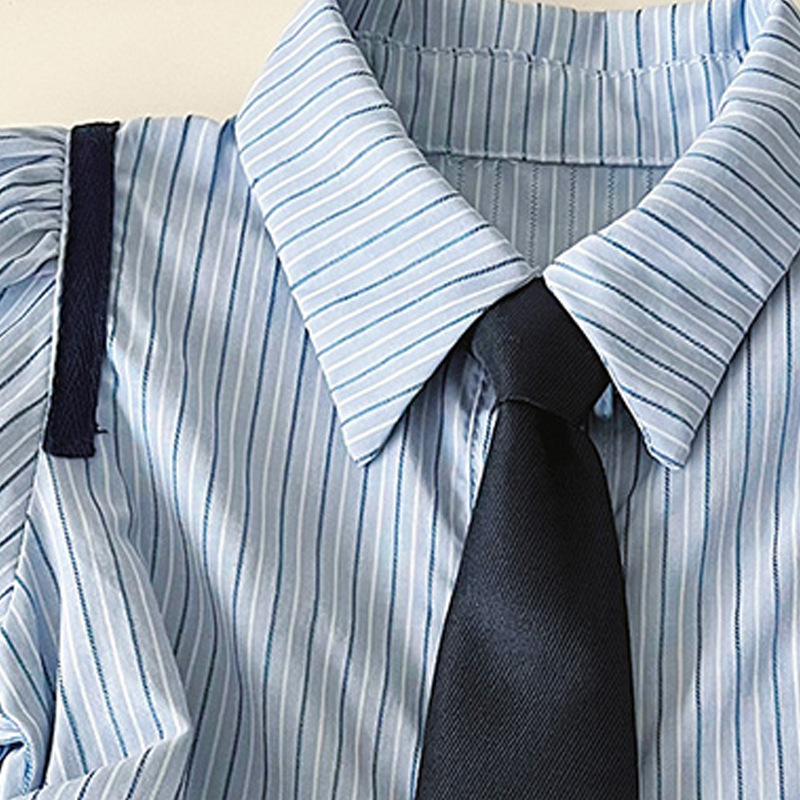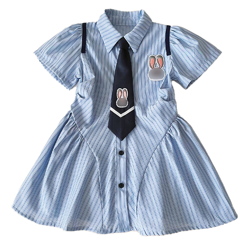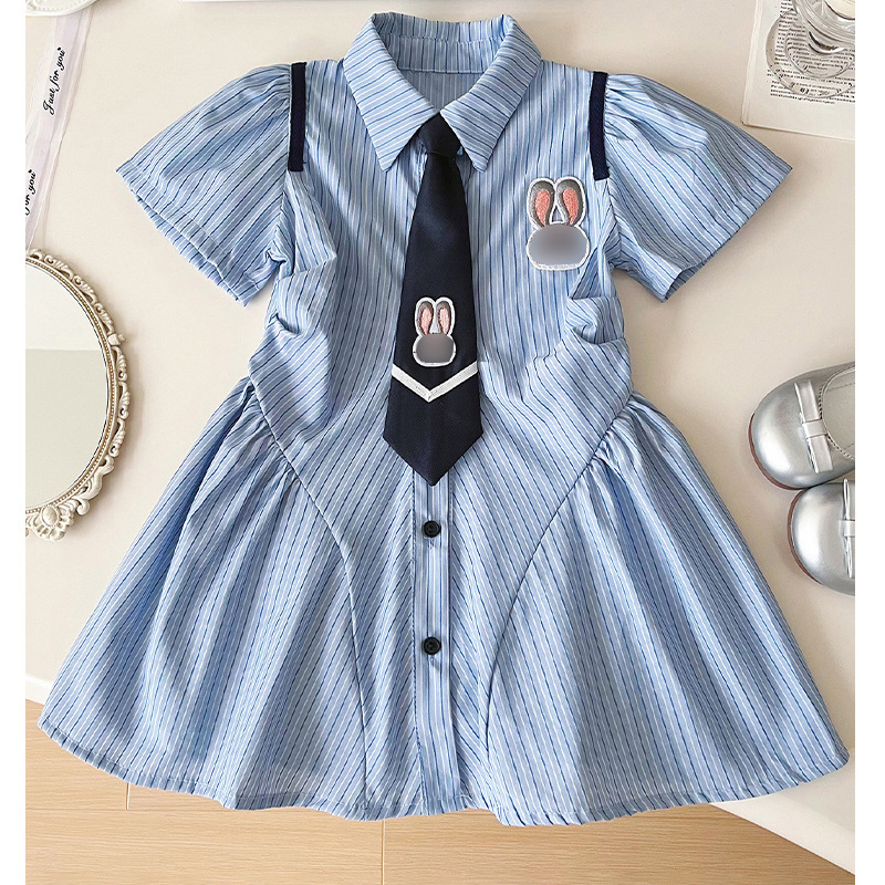 2024 새로운 여자 대학 스타일 원피스 어린이 한국 주름 치마 여름 줄무늬 공주 치마