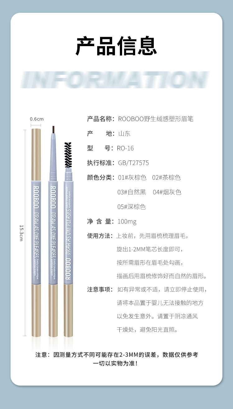 • ROOBOO 와일드 벨벳 모양의 눈썹 펜