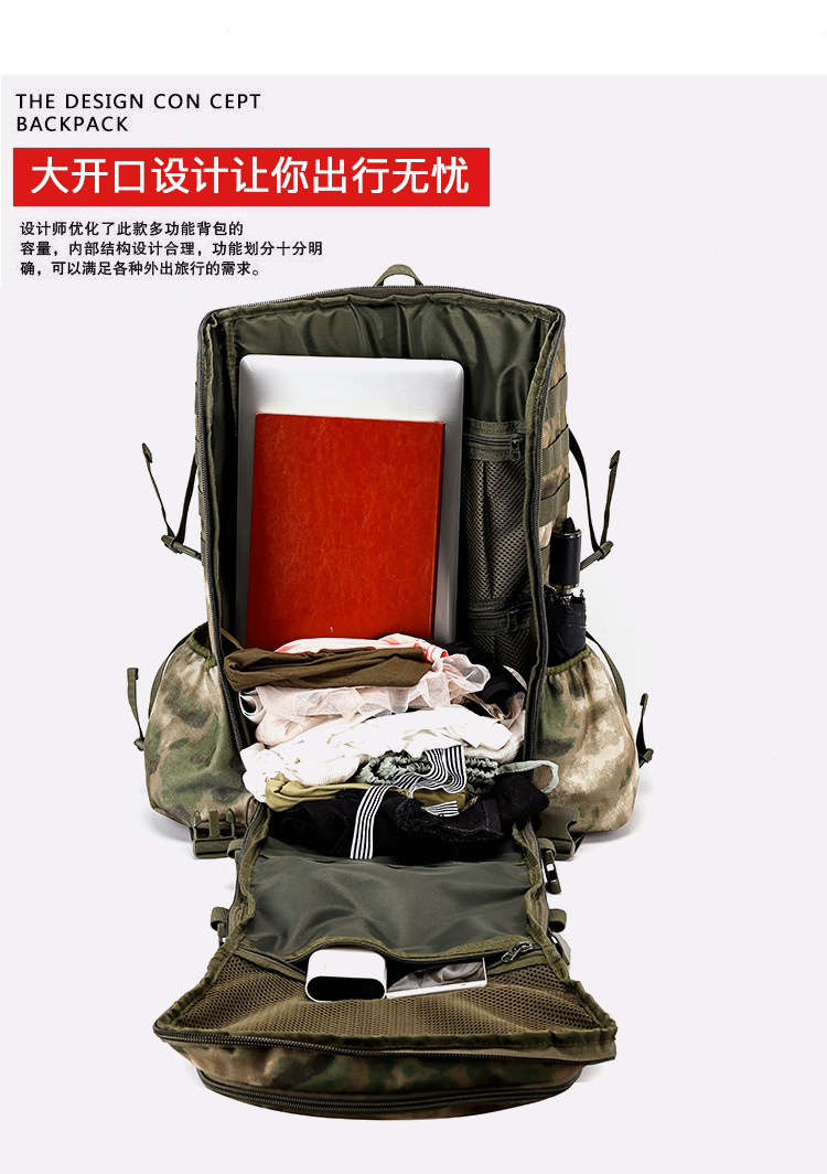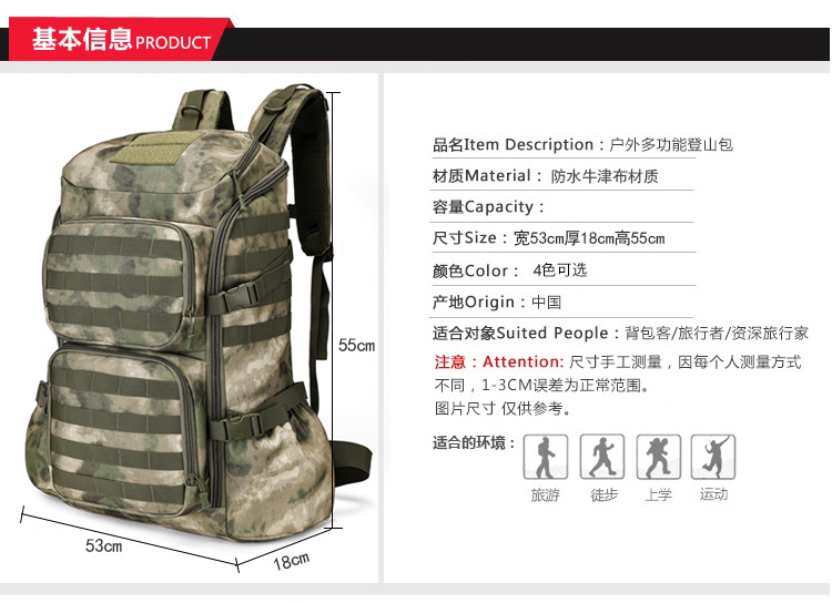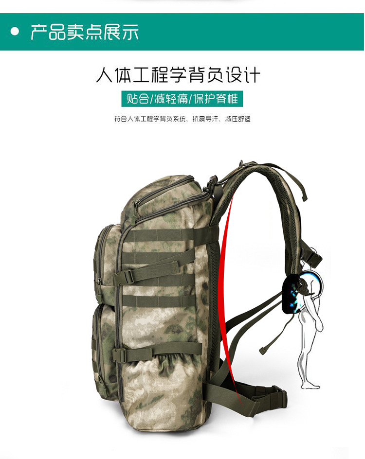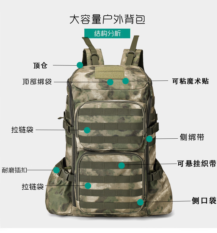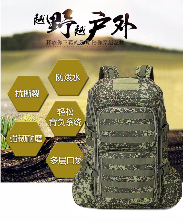 야외 위장 등산 배낭 대용량 60 리터 옥스포드 천 배낭 남자 하이킹 배낭