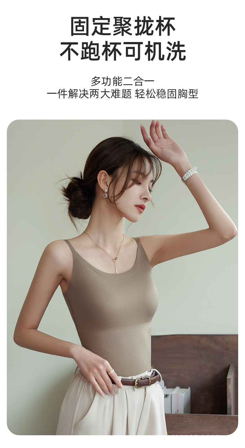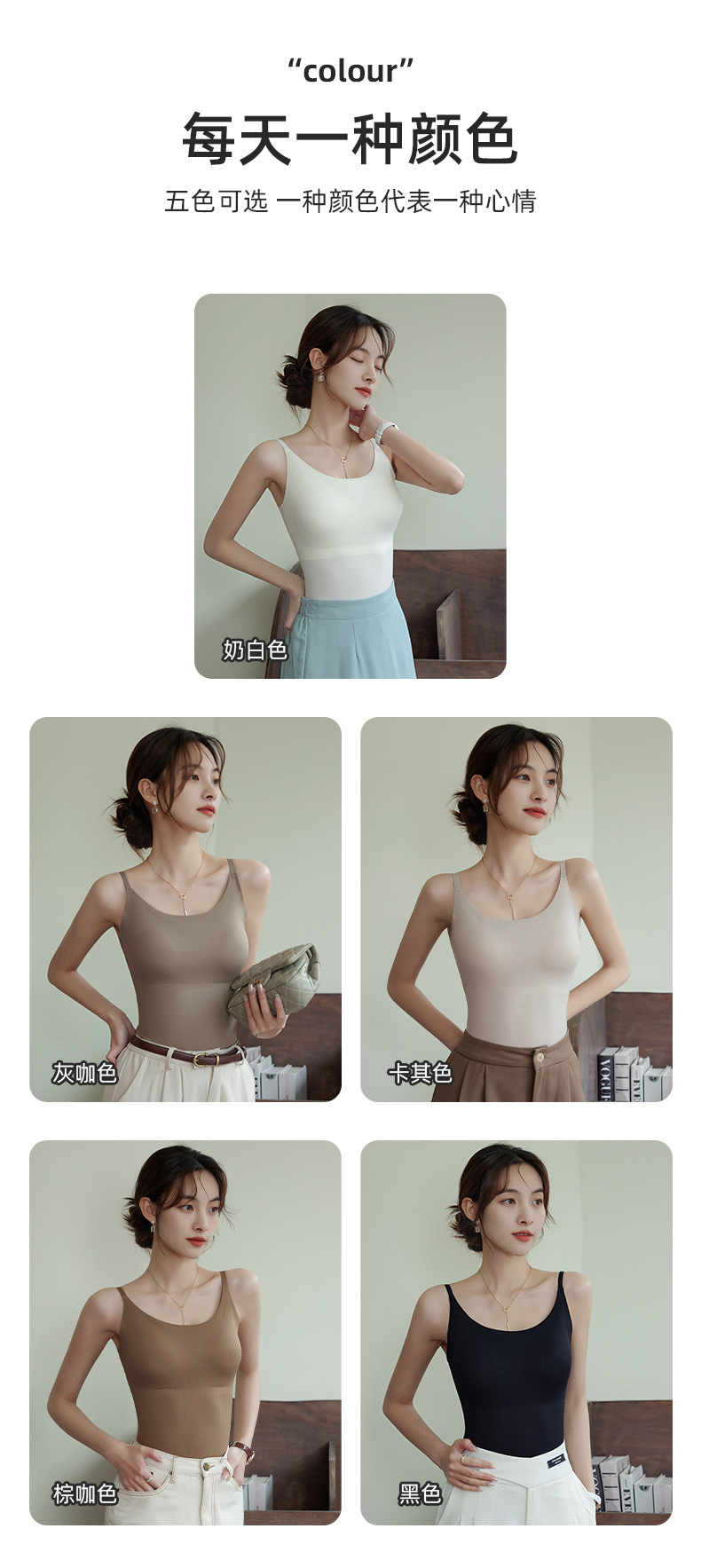 여성용 스레드 아이스 실크 캐미솔 에어컵 가슴 패드 포함 아우터웨어 및 이너웨어 아름다운 등 속옷 슬림핏 바텀 탑