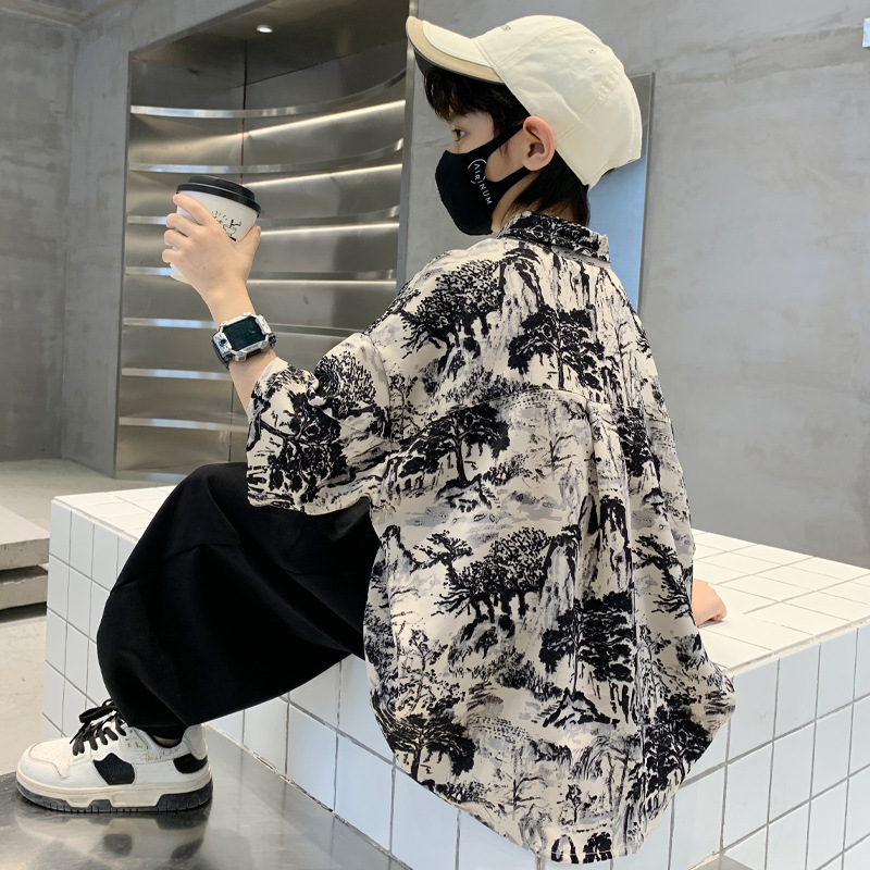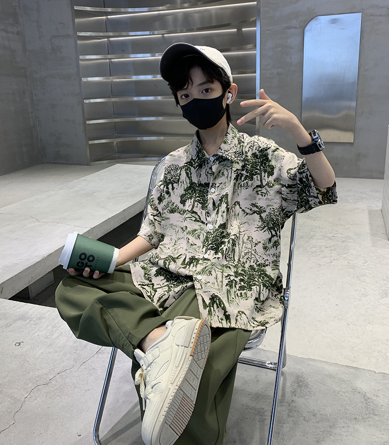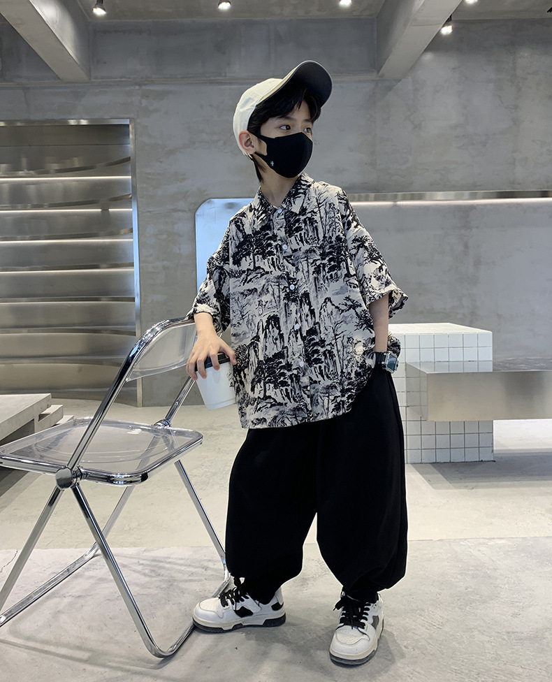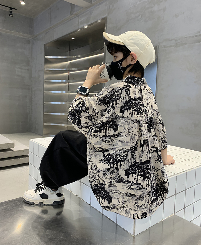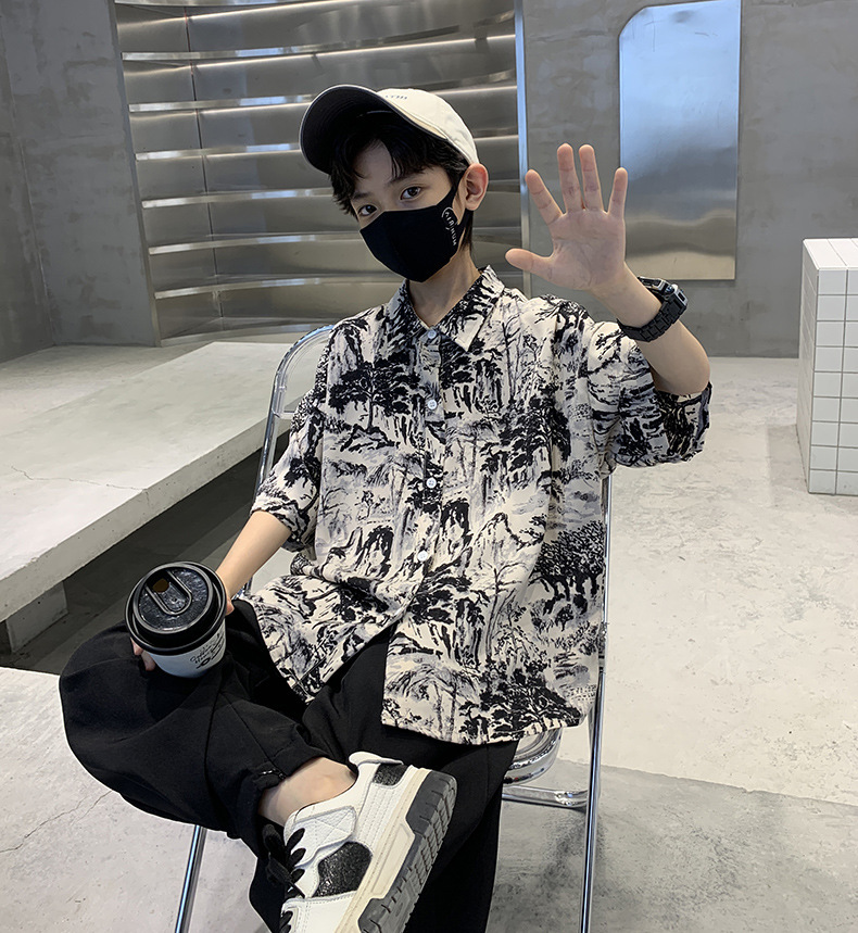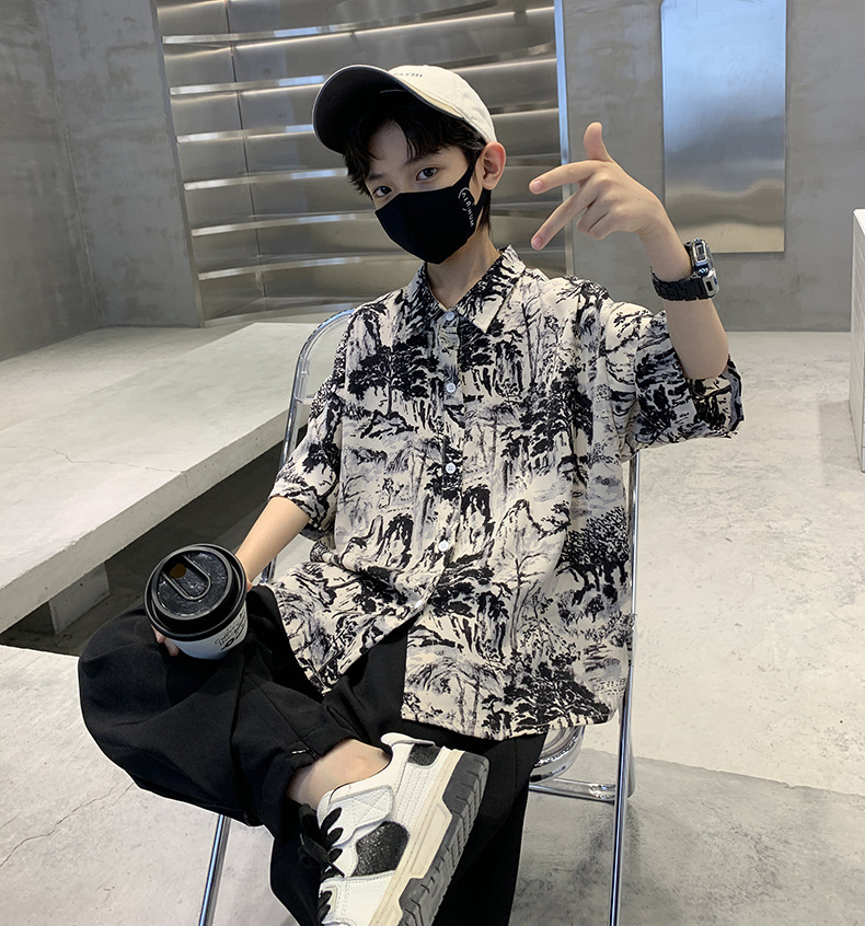 남아 여름 셔츠, 2024년 유행하는 멋스러운 중대형 아동용 여름 반팔 셔츠, 남아용 스타일리쉬하고 트렌디한 멋진 셔츠스토어 가기