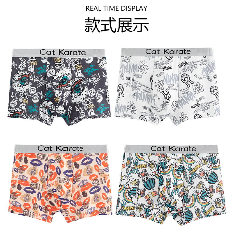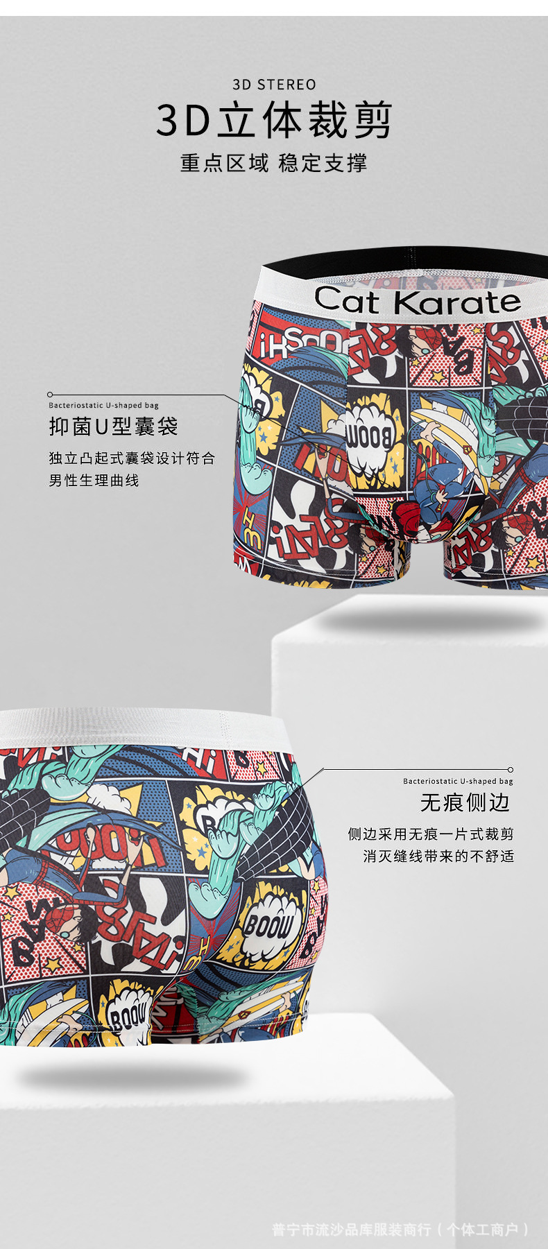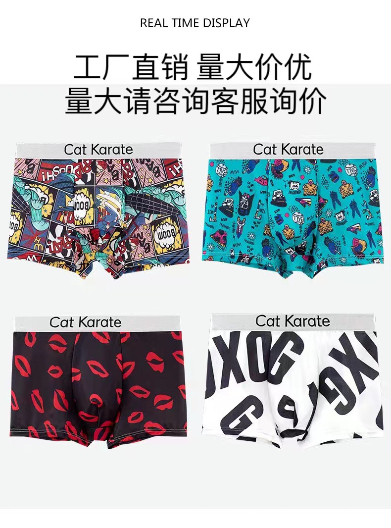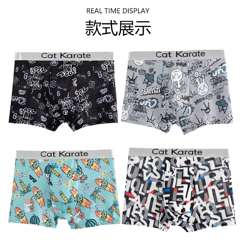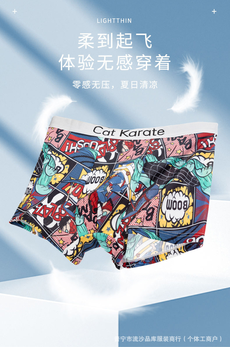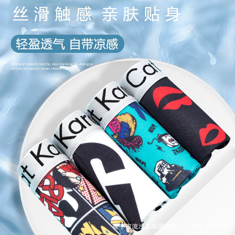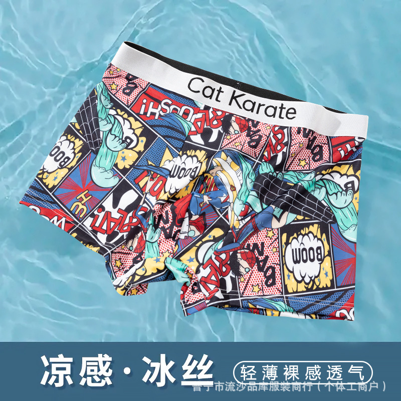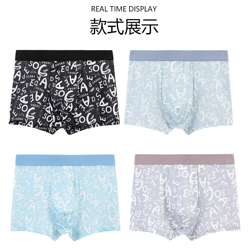 여름 남자 아이스 실크 편지 허리 인쇄 복서 반바지 속옷 패션 아이스 실크 남성 속옷스토어 가기