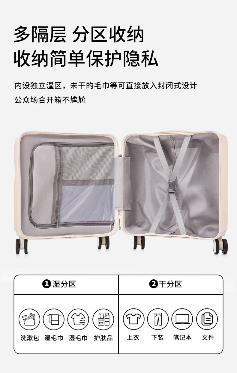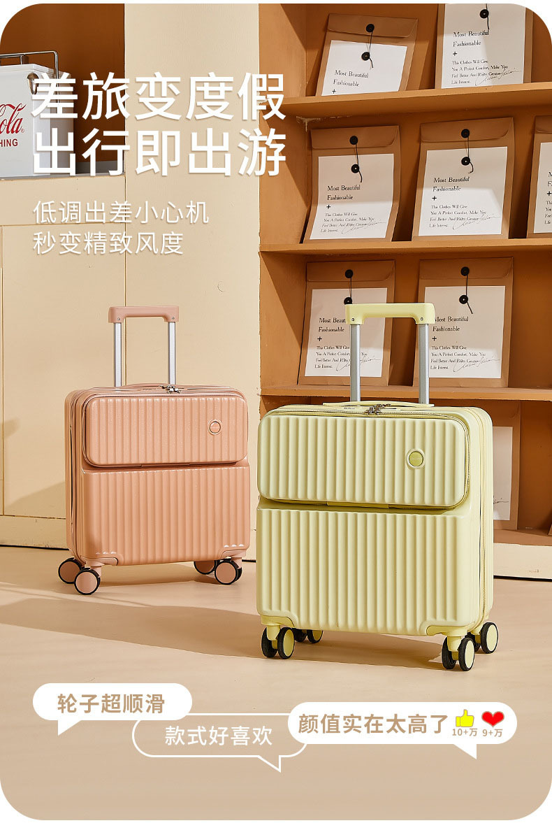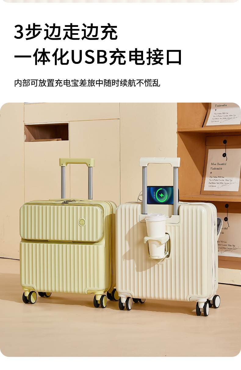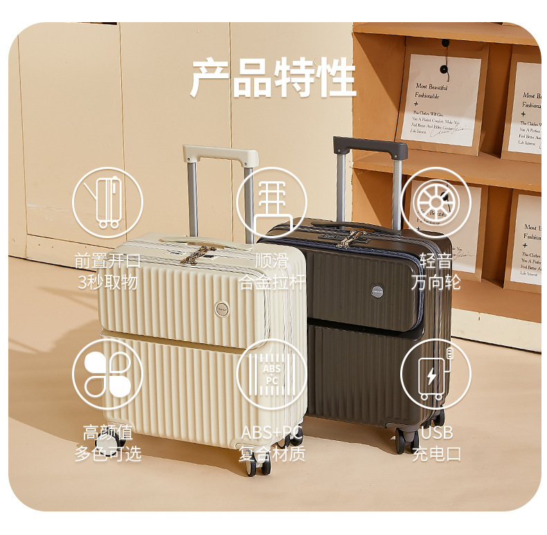 전면 개방 수하물 케이스 18 인치 다기능 탑승 트롤리 케이스 USB 인터페이스 어린이 앉아 여행 케이스