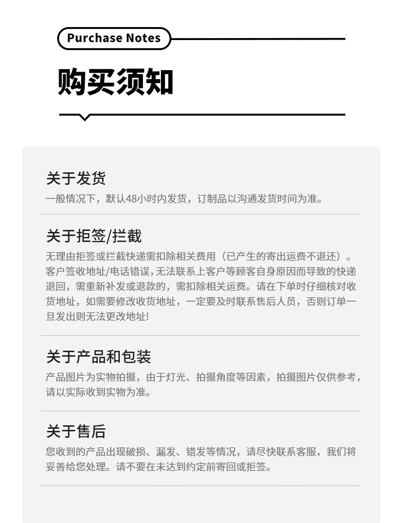 亲,您好,非常感谢您的光临,因为箱包是大件物品,容易物流损坏。宝贝到货后不管是快递小哥送上门还是在驿站或者保安室,请您不要急着用笔签字签收哦!先检查货物确认没问题后才签收。有问题可以拒签的,您不用承担任何费用,如果签字签收了就是确认商品没有问题,那退回的运费就得自己承担呢!有问题第一时间联系客服哈!谢谢您的理解与支持!