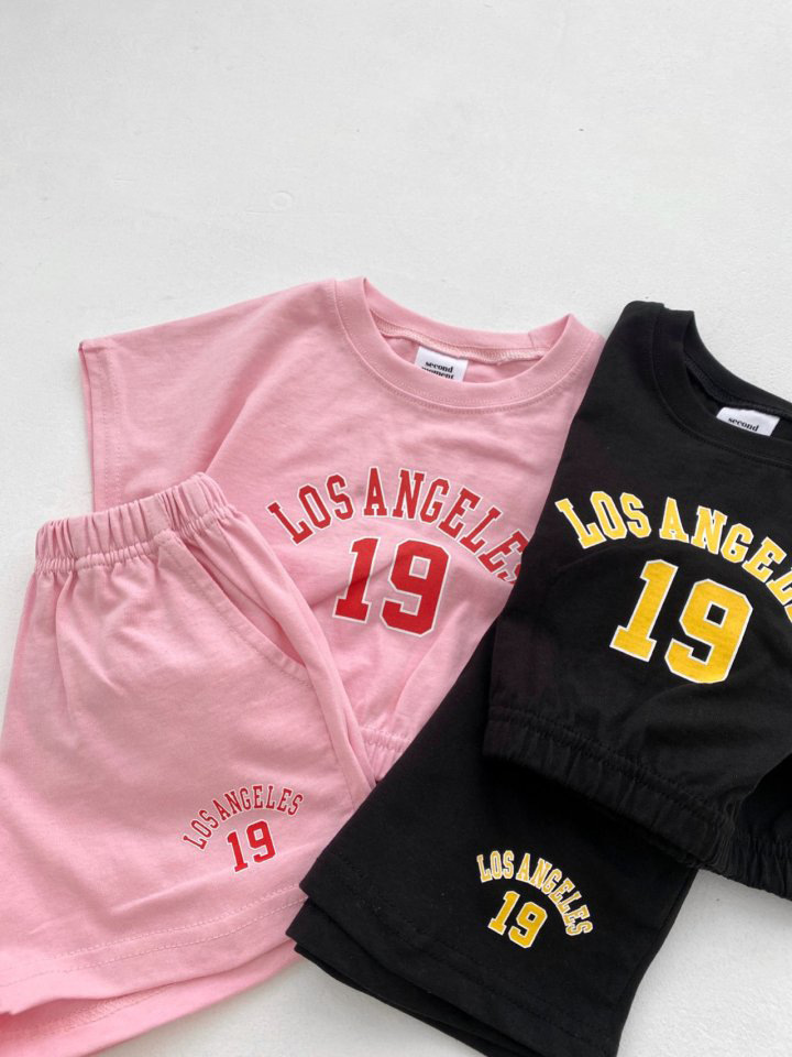 여름 어린이 2024 새로운 한국 스타일 소녀 세트 간단한 알파벳 얇은 반팔 반바지 투피스 세트스토어 가기