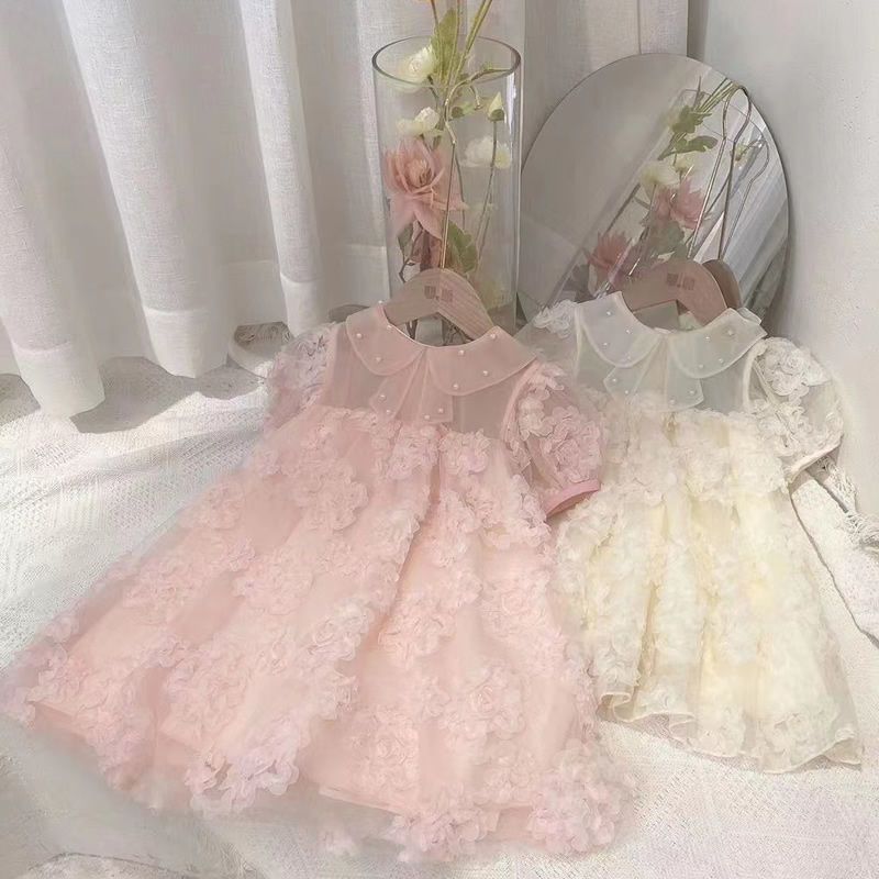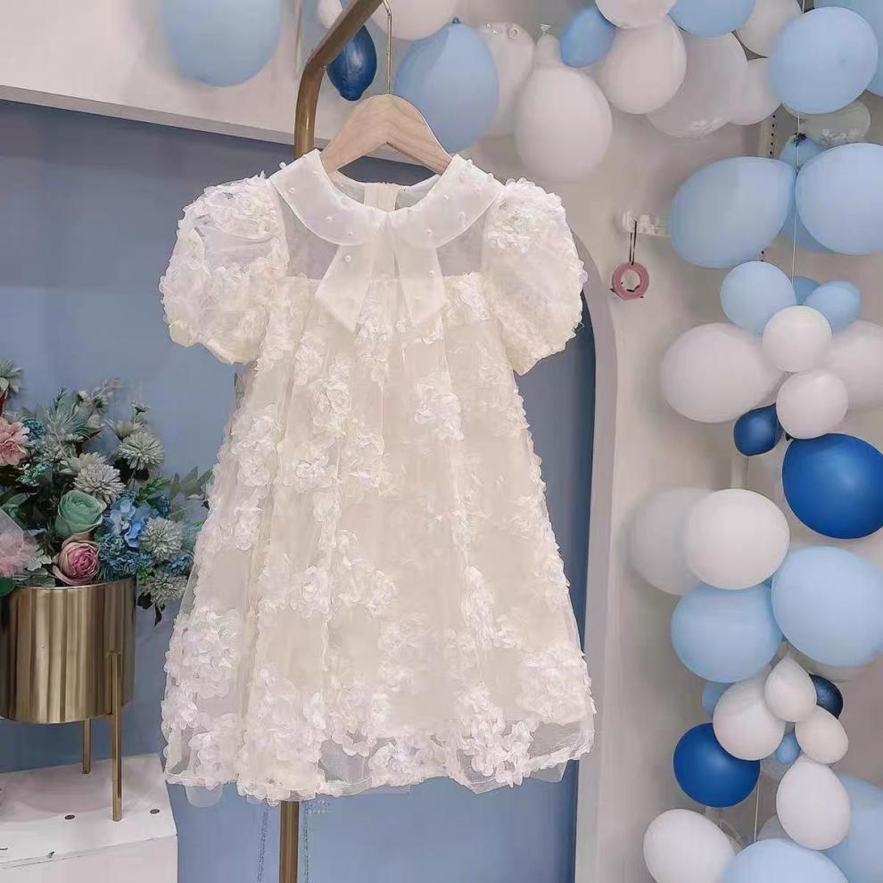 소녀 원피스 2024 년 여름 새로운 서양식 공주 원피스 어린이 레이스 꽃 한국 스타일 소녀 원피스스토어 가기