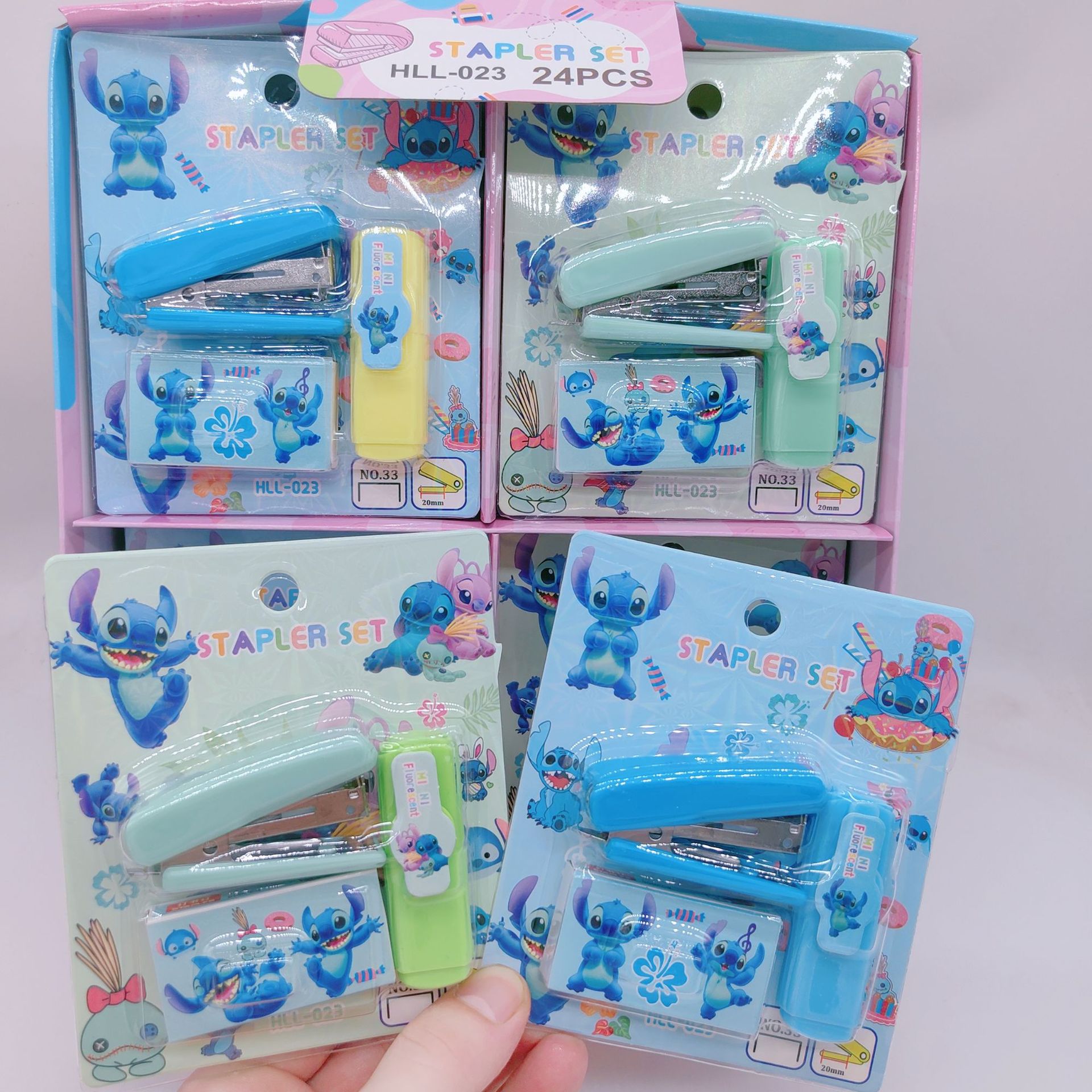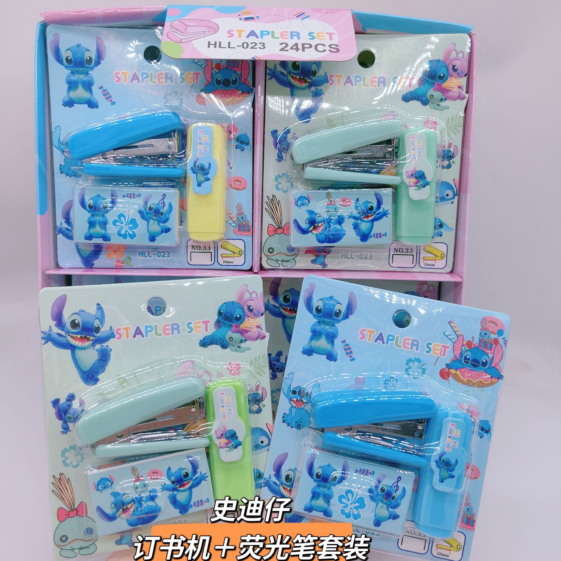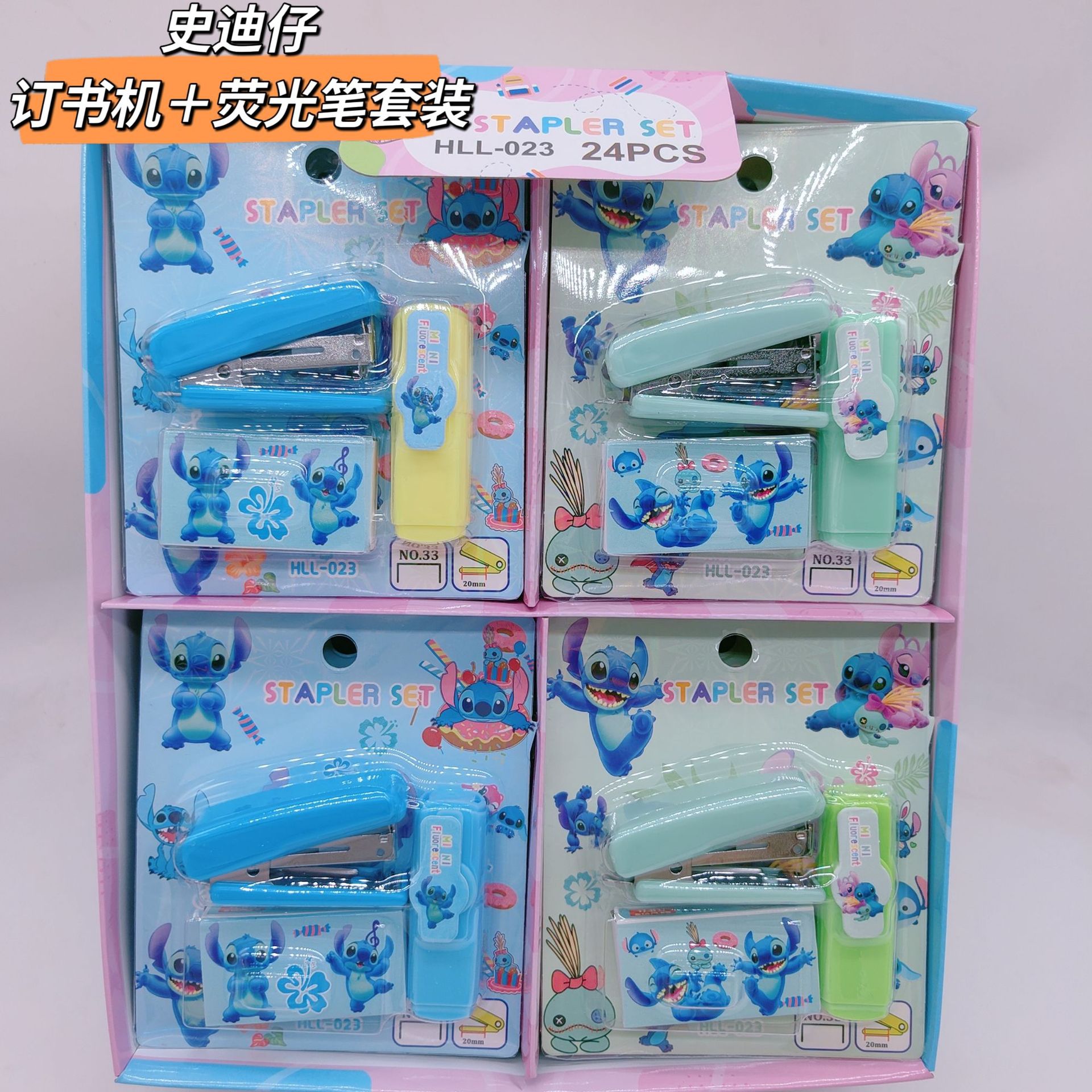 만화 스틸 스테이플러 플러스 하이 라이터 세트 귀여운 학생 작은 스테이플러 사무실 문서 바인딩 기계