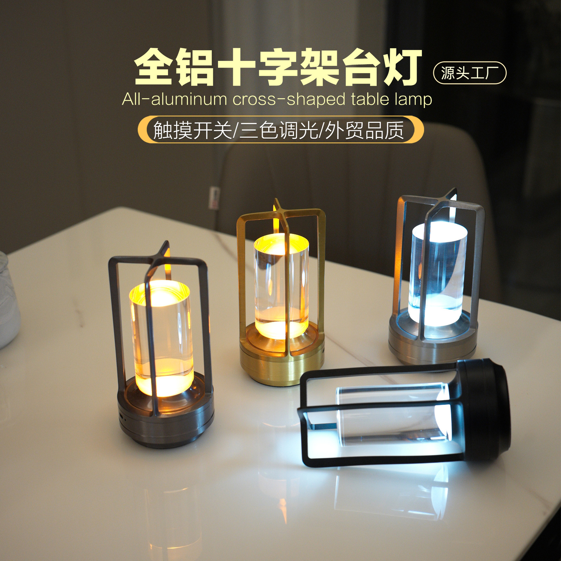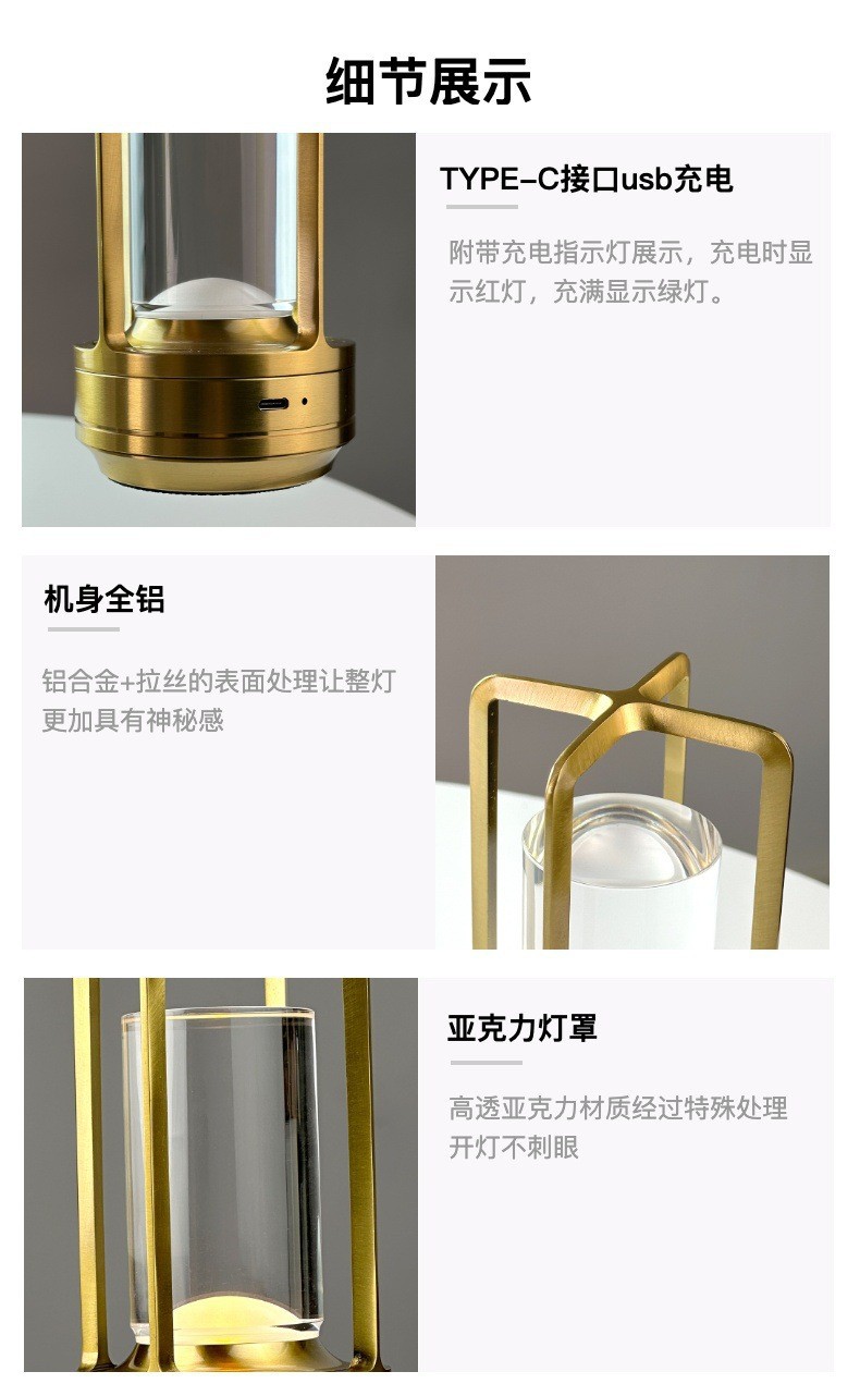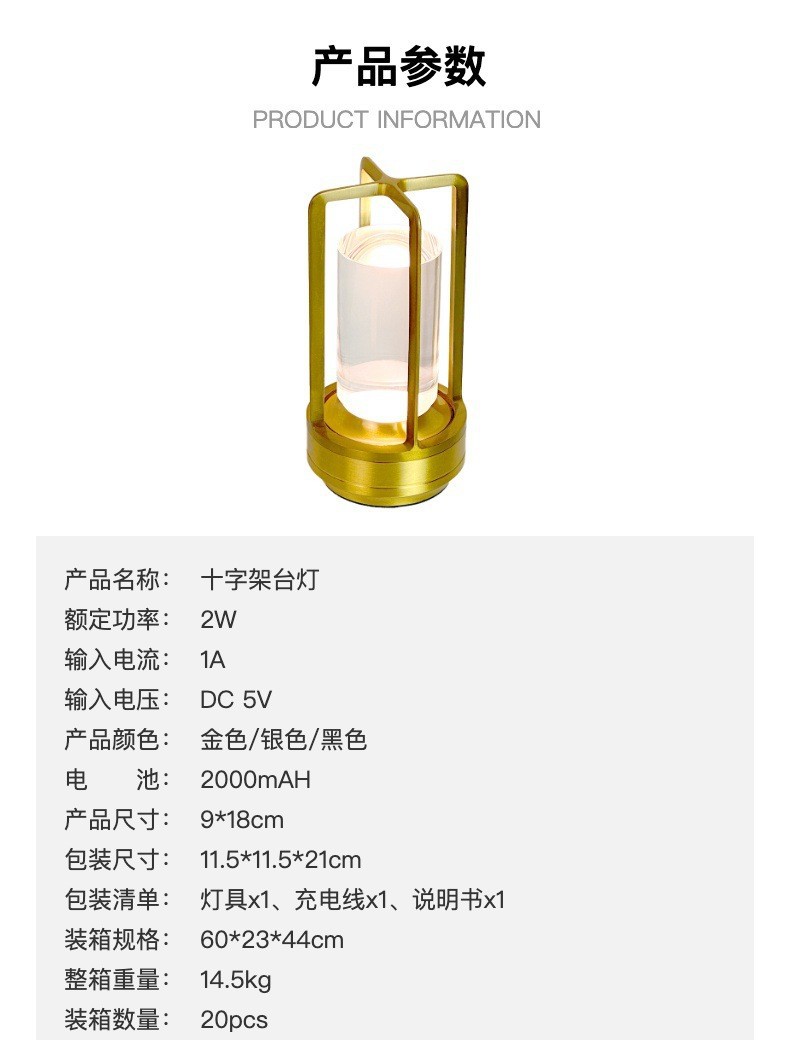 크로스 국경 크로스 금속 테이블 램프 간단한 레스토랑 장식 램프 침실 침실 분위기 램프 LED 충전식 야간 조명