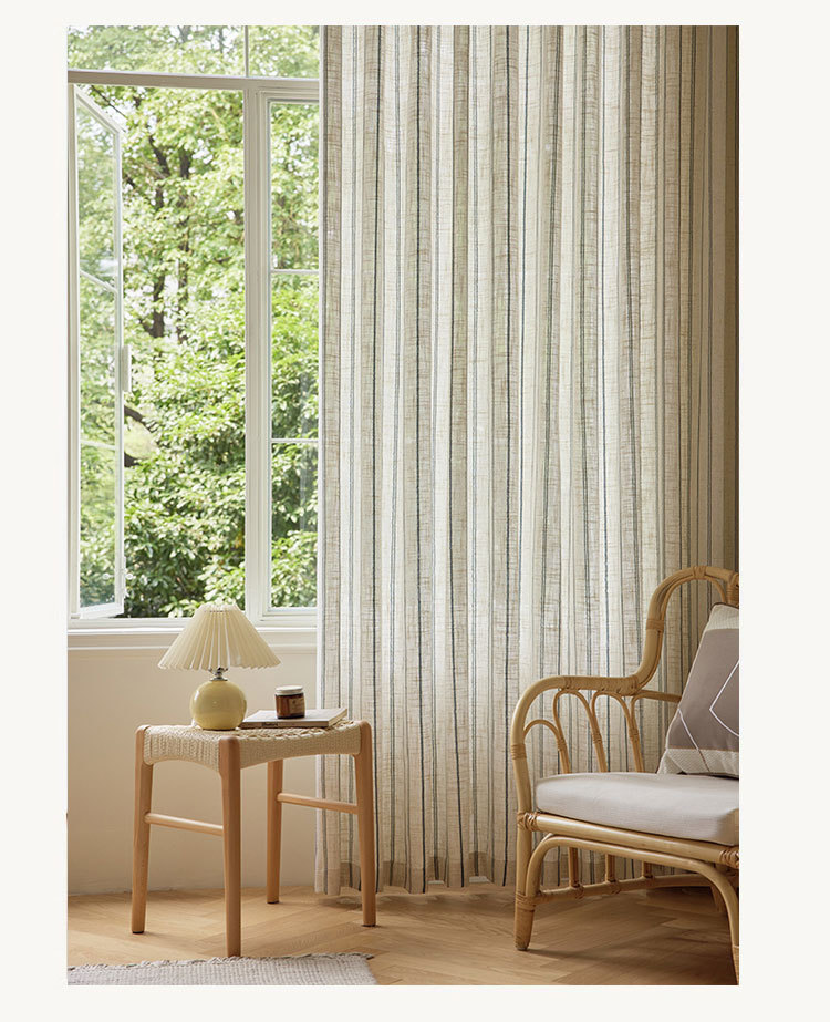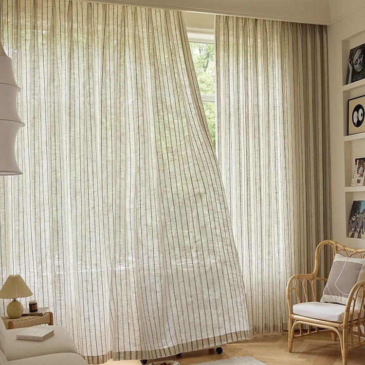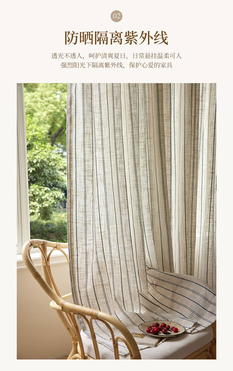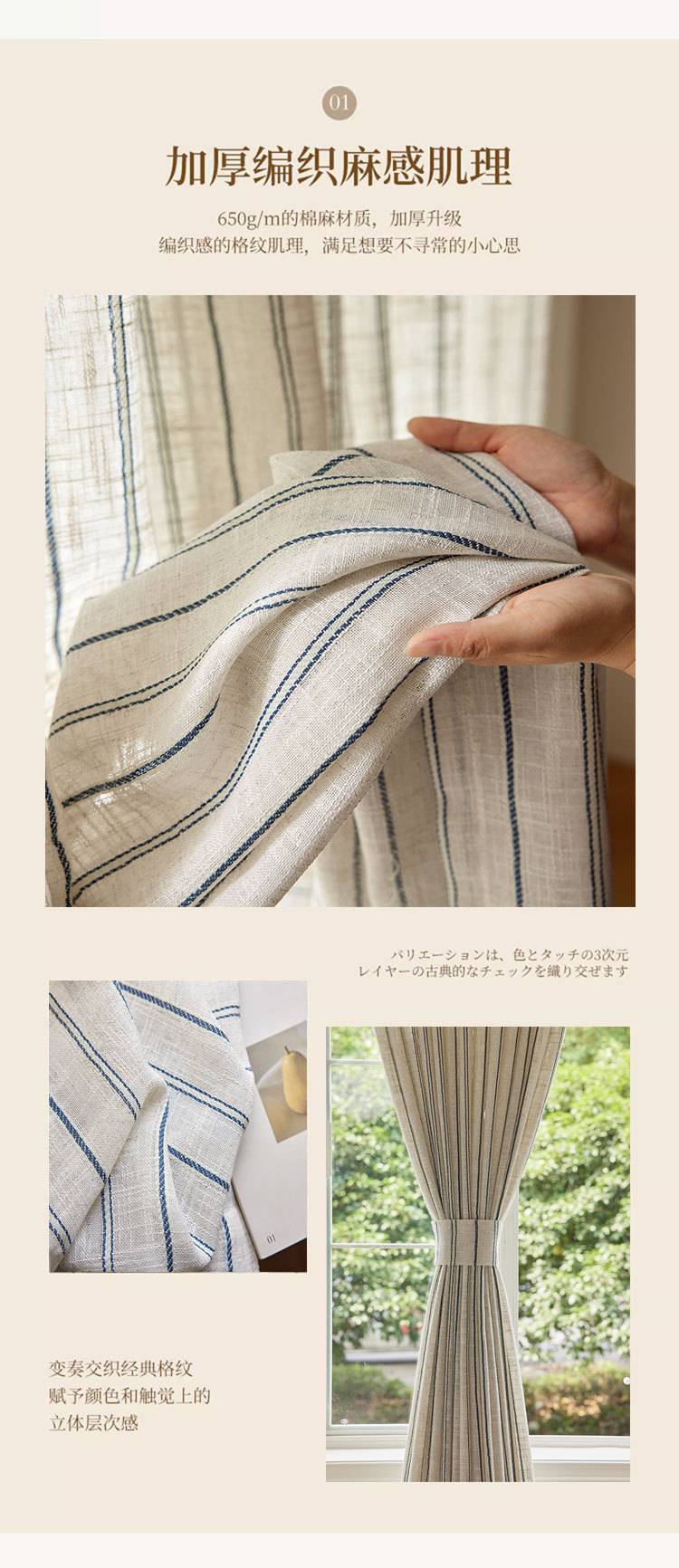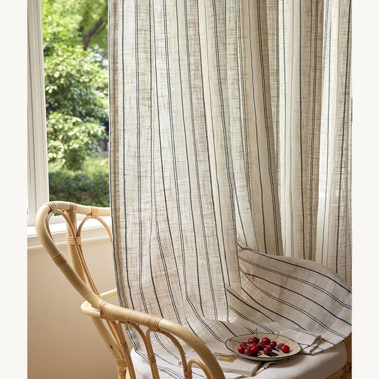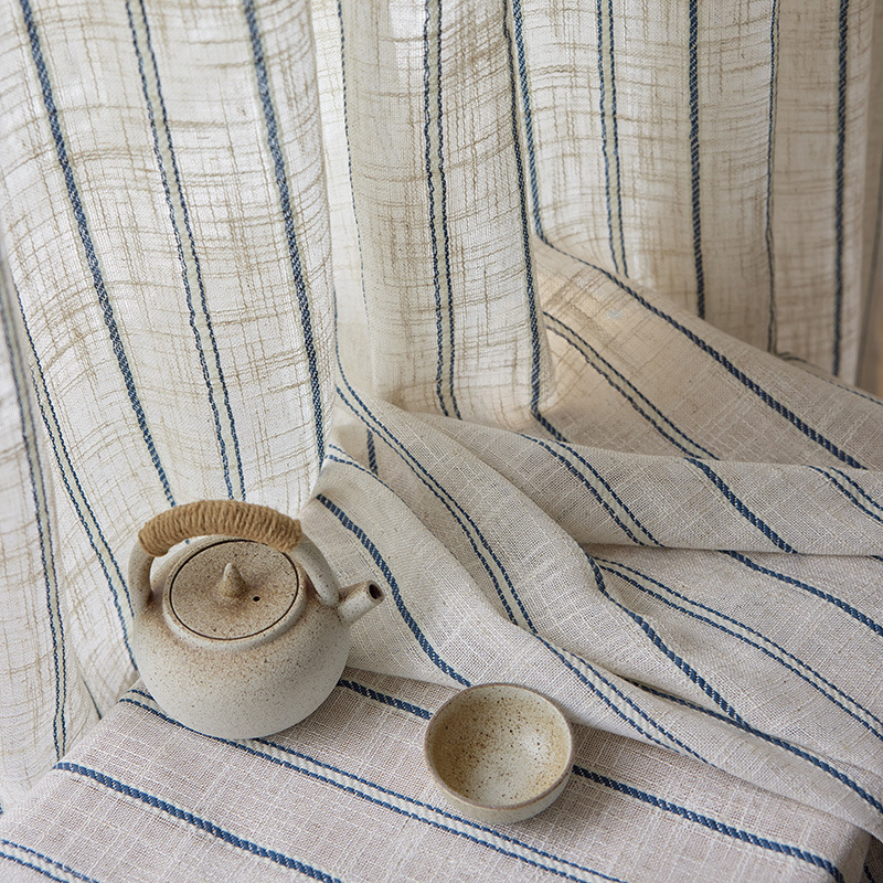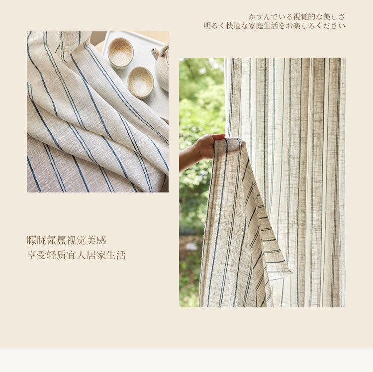 면 및 린넨 투명 불투명 린넨 모래 스크린 일본식 홈스테이 블루 스트라이프 코튼 및 린넨 커튼 거즈 커튼 거실 티 룸