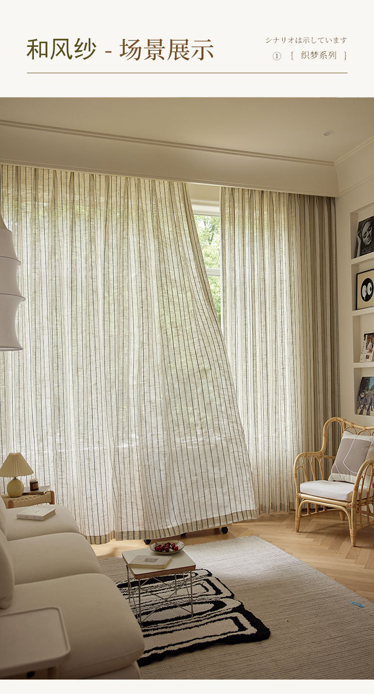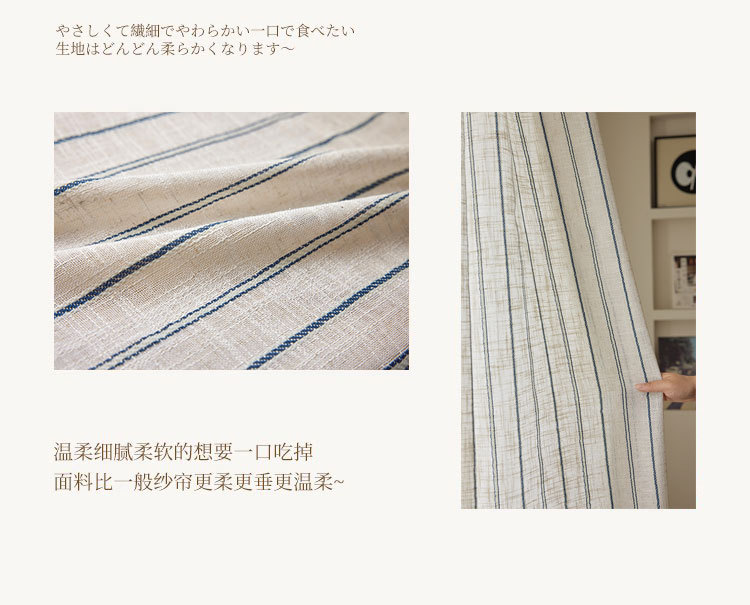면 및 린넨 투명 불투명 린넨 모래 스크린 일본식 홈스테이 블루 스트라이프 코튼 및 린넨 커튼 거즈 커튼 거실 티 룸스토어 가기