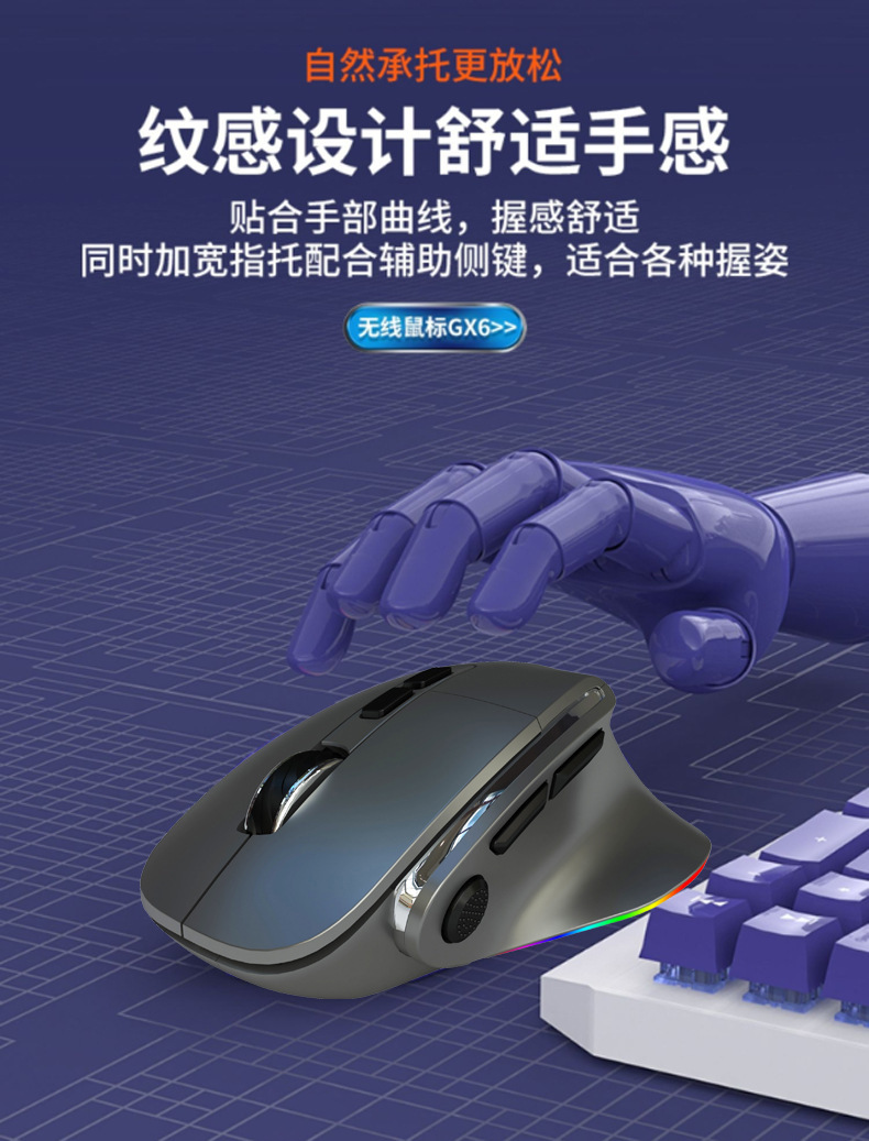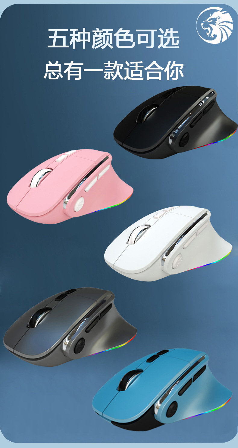 돔 사자 H5 무선 유선 듀얼 모드 수직 마우스 빛나는 rgb 컬러 오피스 게임 E-스포츠