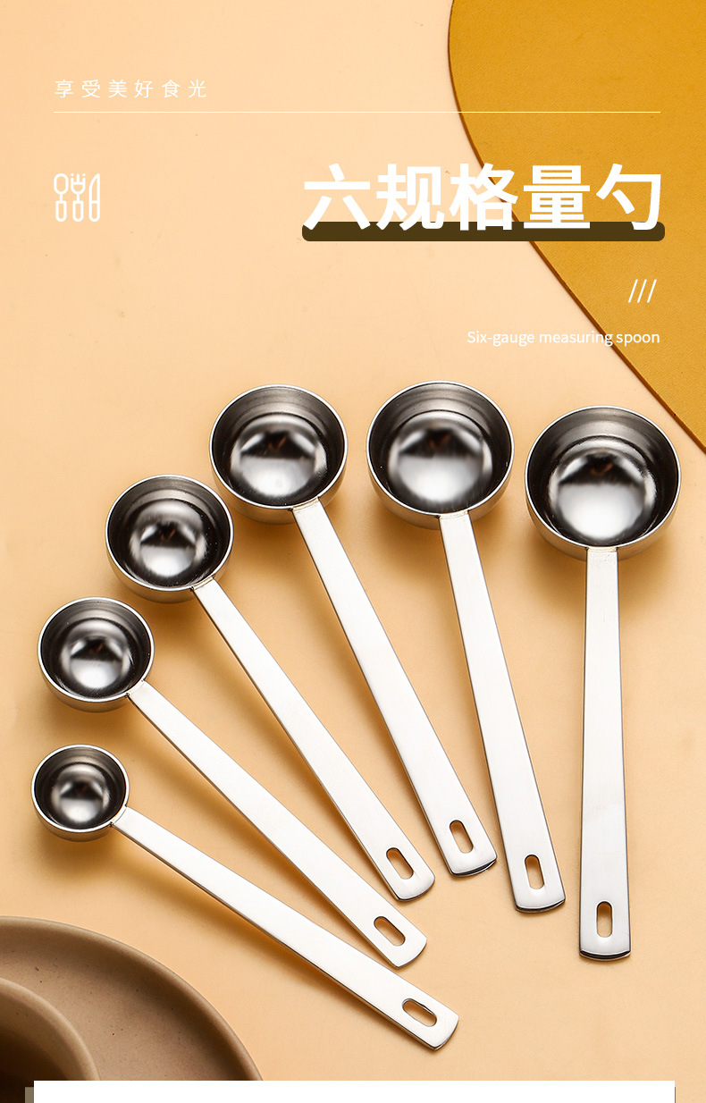 304 스테인레스 스틸 측정 스푼 크로스 보더 커피 콩 측정 스푼 측정 작은 스푼 베이킹 밀크 파우더 스푼 6 사양스토어 가기