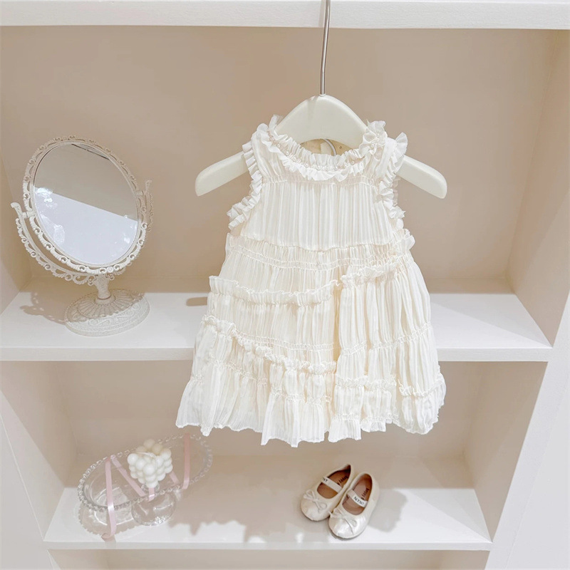 [핑크 집] 여자 원피스 2024 여름 새 소녀 세련된 공주 원피스 어린이 보물 원피스