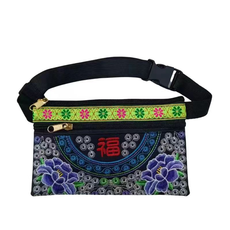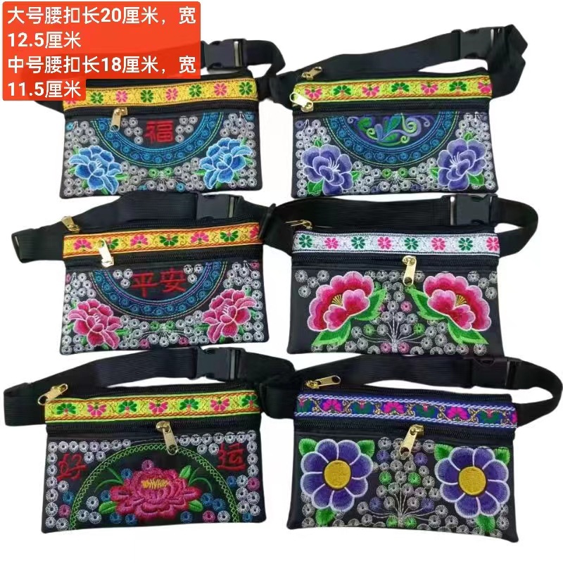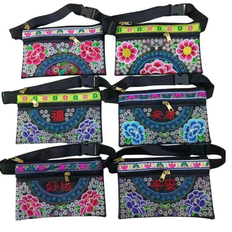 공장 직접 공급 유명한 가족 바람 가방 자수 허리 가방 크로스 스티치 전체 꽃 크로스 바디 백 중년 및 노인 레이스 허리 가방스토어 가기