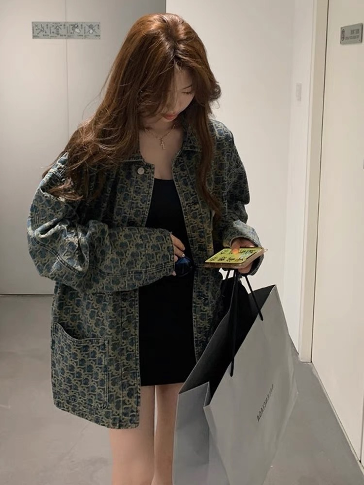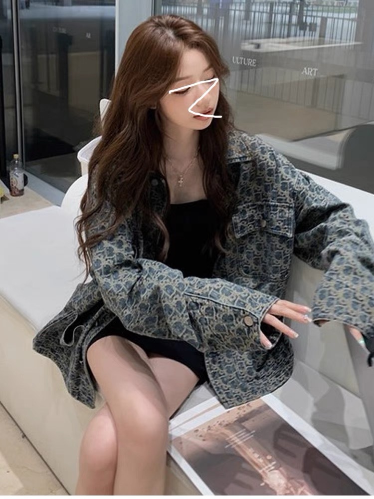 미국 하이 스트리트 레트로 데님 재킷 여성의 2024 봄과 가을 새로운 디자인 틈새 조커 인쇄 재킷 탑
