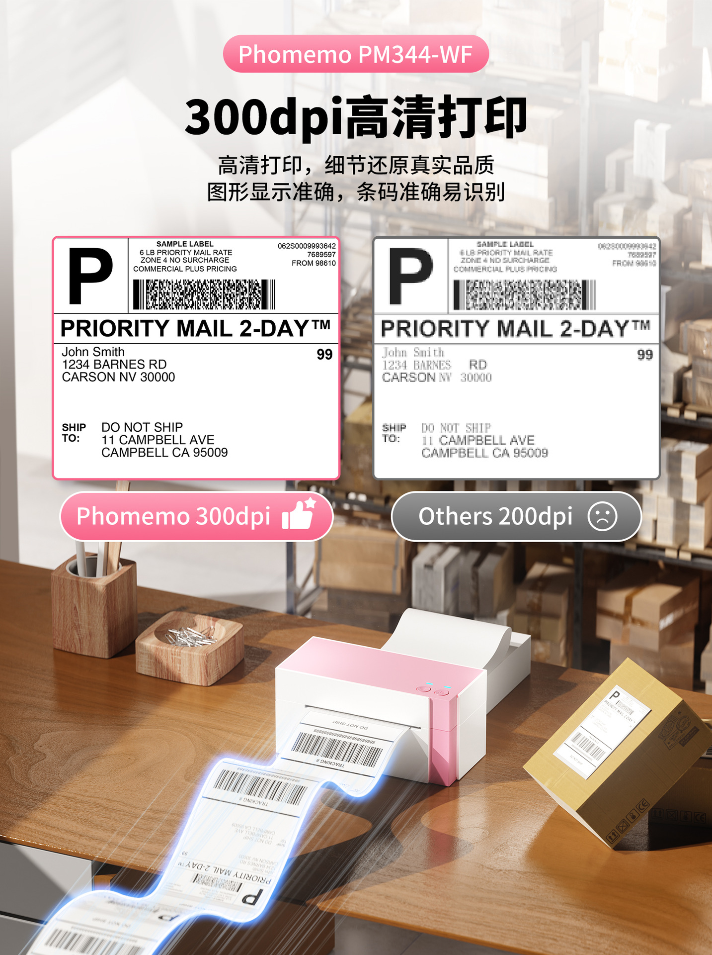 PhomemoPM344WIFI 익스프레스 시트 프린터 열 라벨 프린터 미니 300dpi 스티커 시트