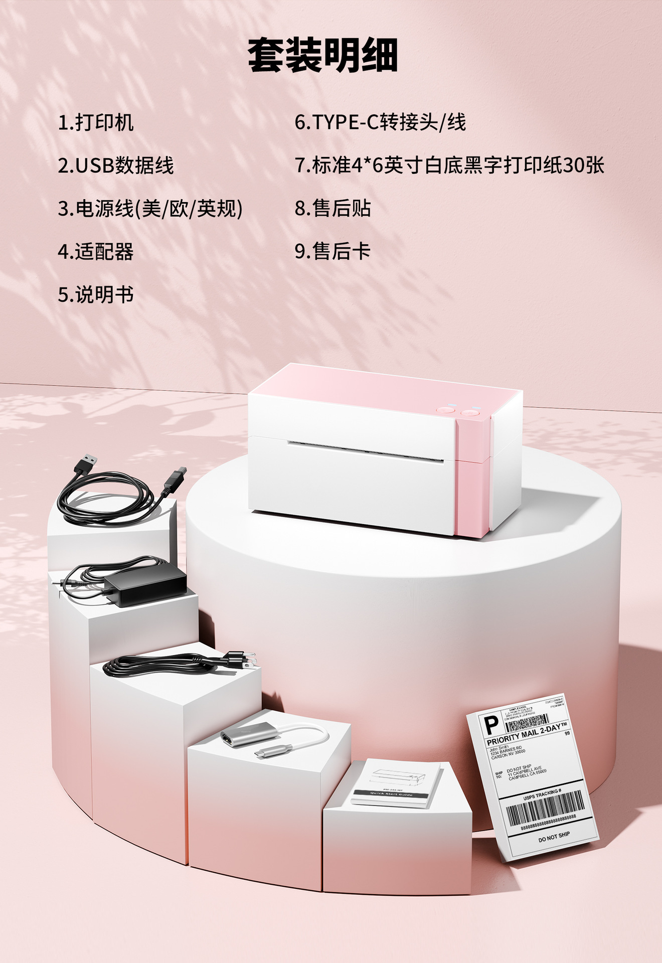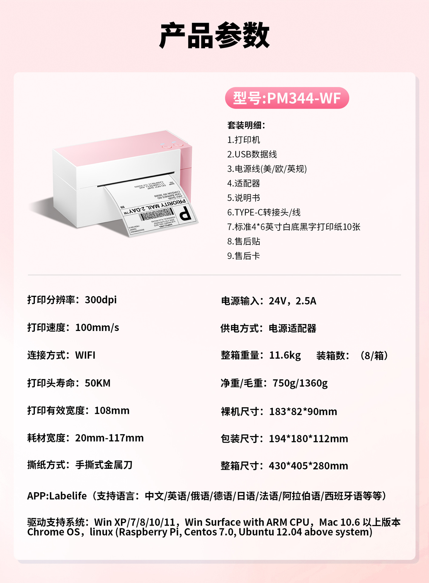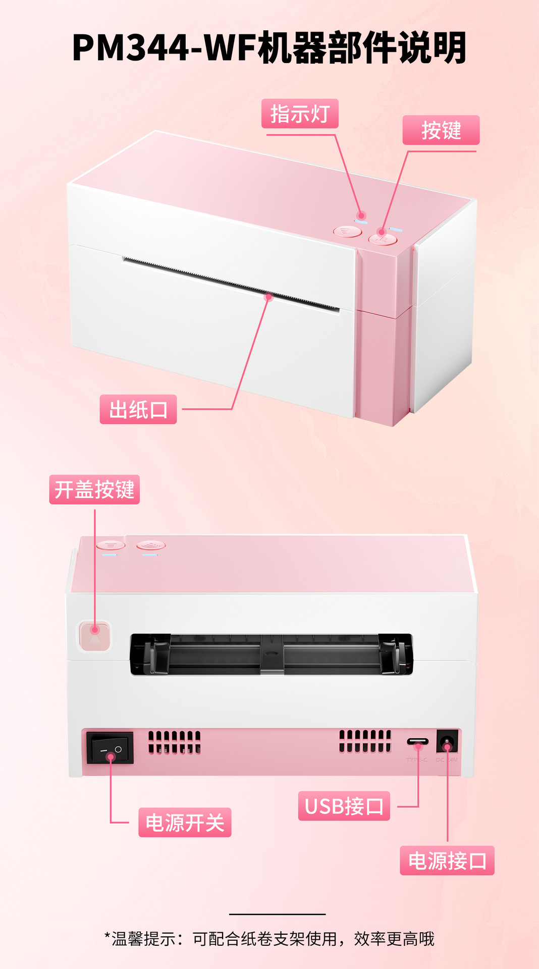 • 중립 Packaging-PM344-WIFI 연결-핑크 흰색 PK (내장 10 4*6 흰색 단일 종이)