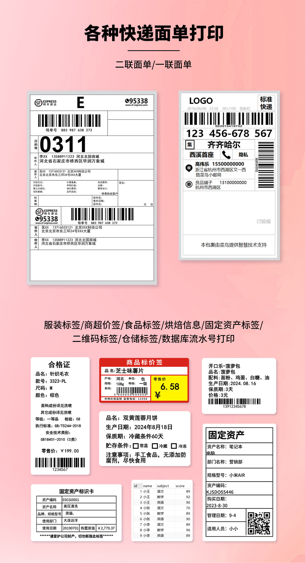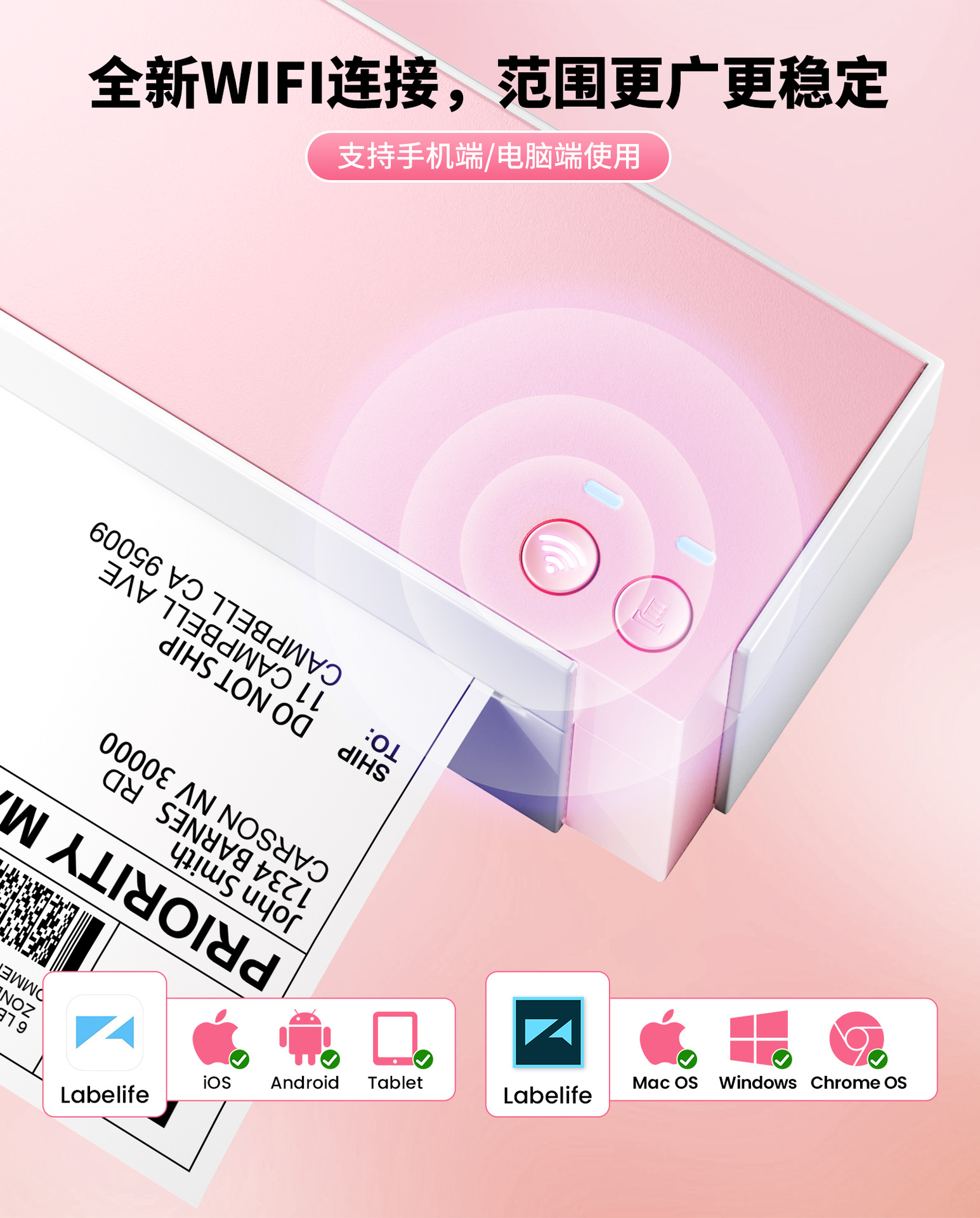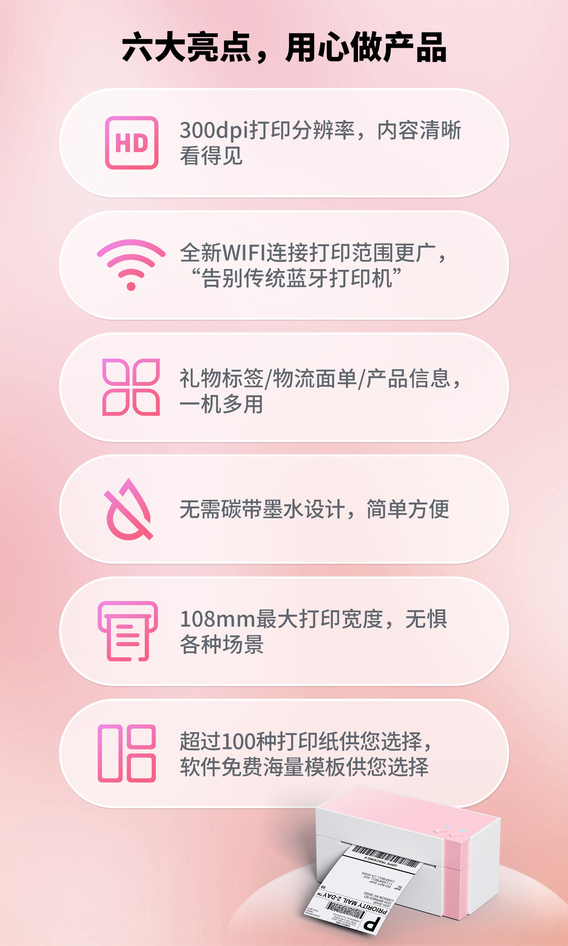• 중립 Packaging-PM344-WIFI 연결-핑크 흰색 PK (내장 10 4*6 흰색 단일 종이)
