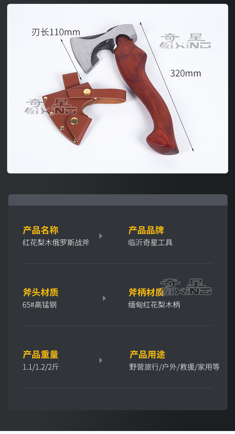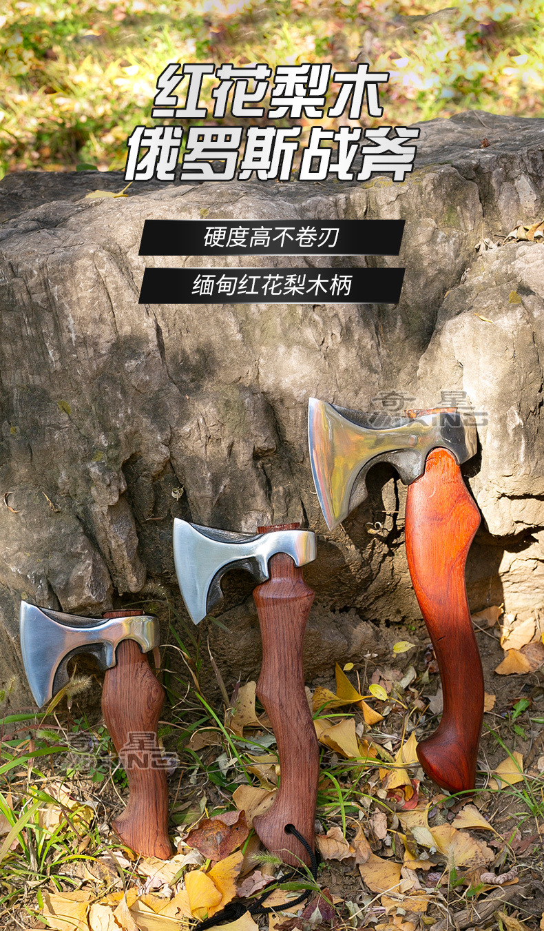 홍화 배 나무 중간 러시아 도끼 산 절단 목재 절단 도끼 자동차 캠핑 목수 도끼 야외 다기능 도끼