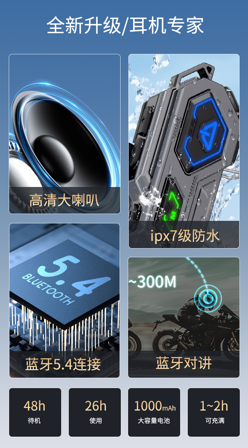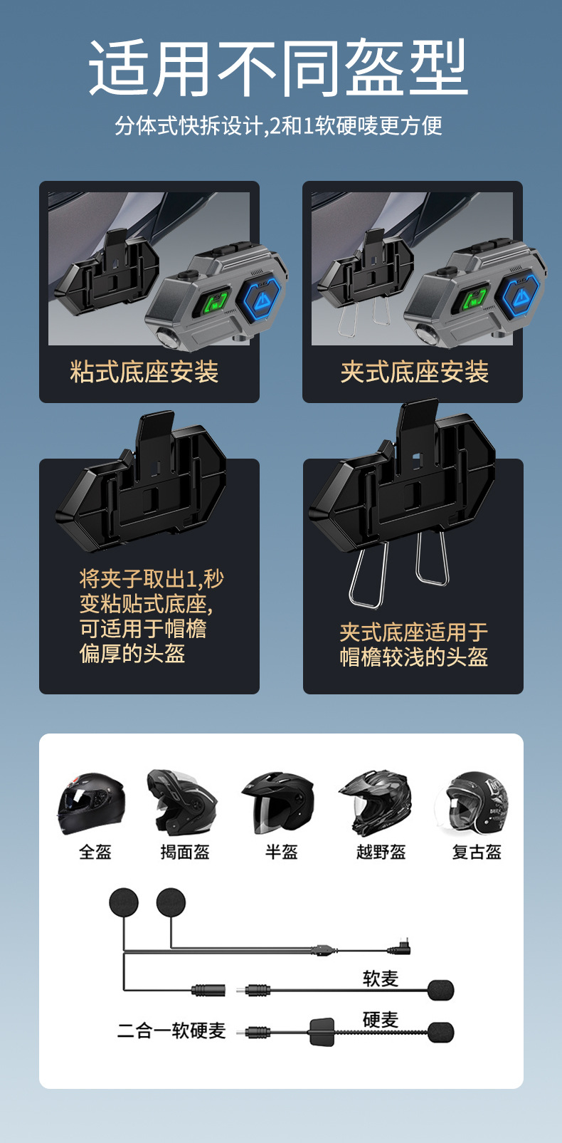 Meikeduo 국경 간 공급 방수 소음 감소 헬멧 블루투스 헤드셋 오토바이 라이딩 더블 인터콤 헬멧 헤드셋